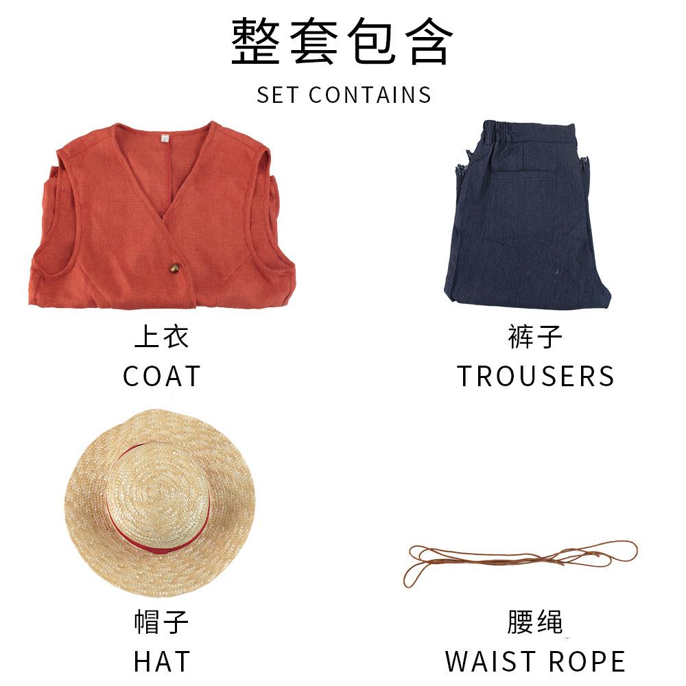 Compra Película 2023 versión de persona real one piece Luffy ropa de cos Luffy mismo chaleco sombrero de paja ropa de cosplay al por mayor en Joom.pro