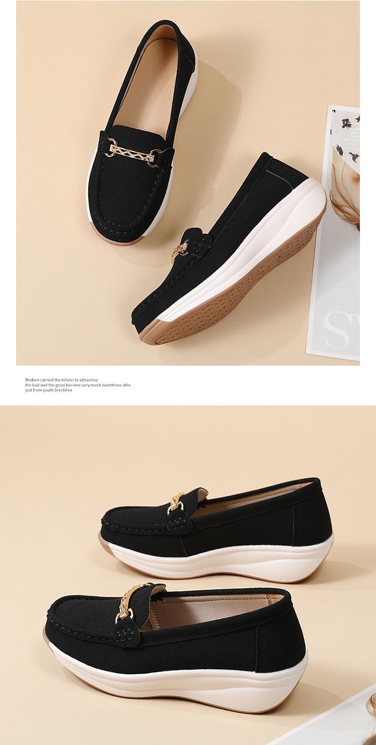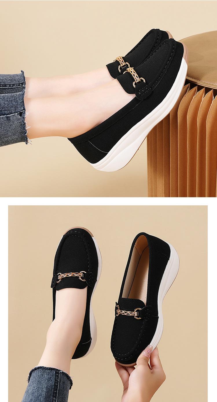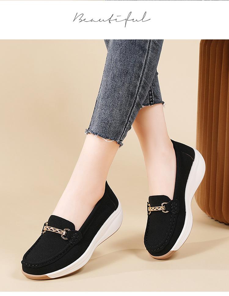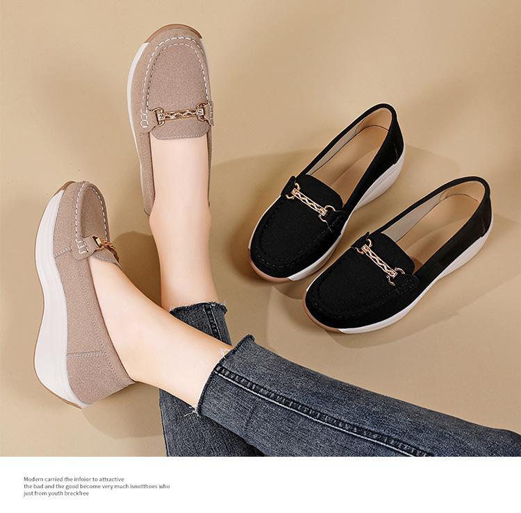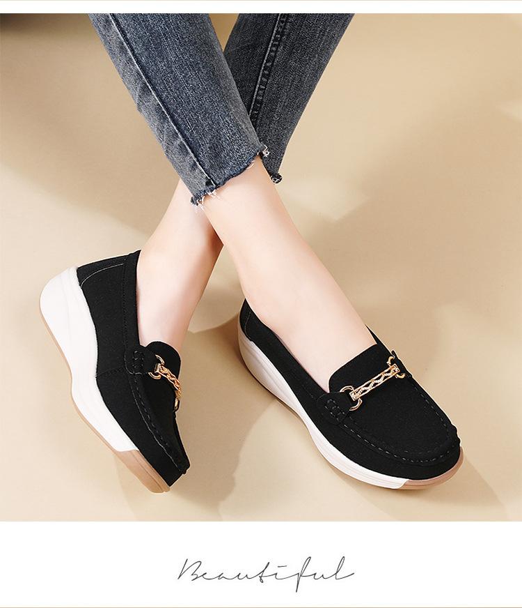 2025 Primavera y Otoño Nueva Moda Hebilla Metálica Zapatos de Mamá Zapatos de Plataforma de Suela Gruesa Zapatos Individuales de Cuña para Mujer Zapatos para Caminar para Personas de Mediana Edad y Ancianos