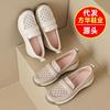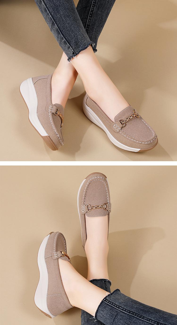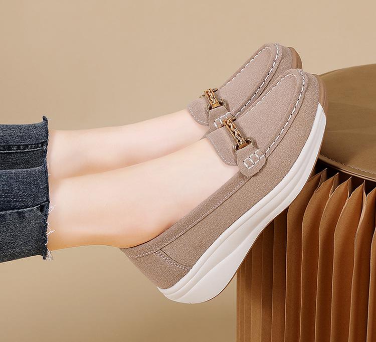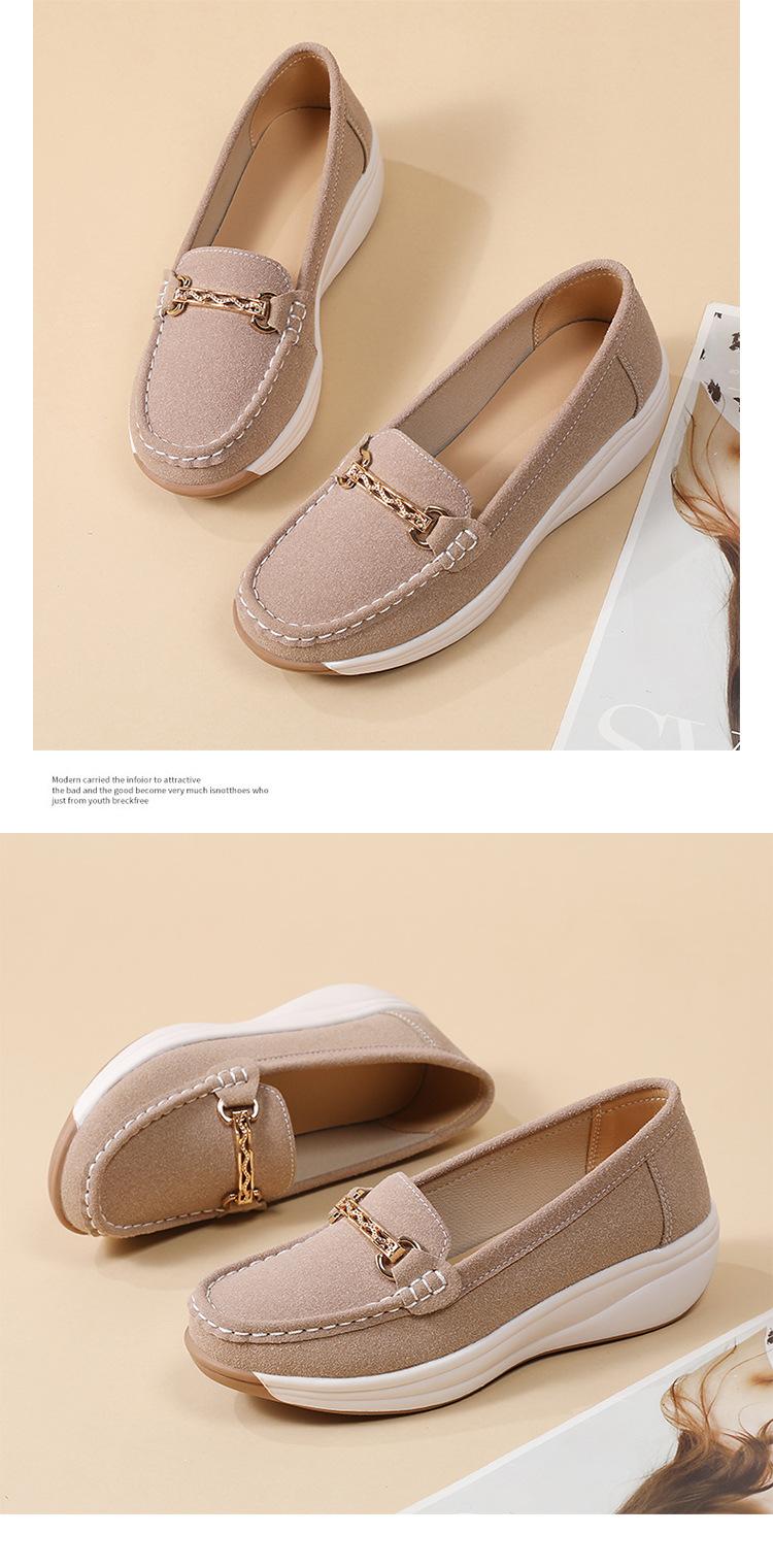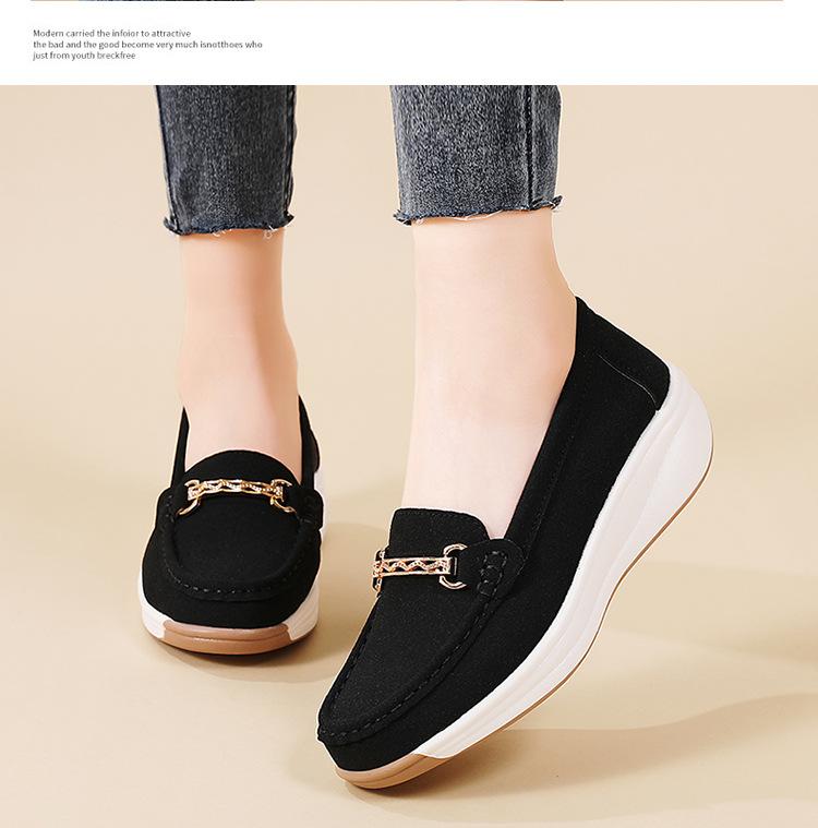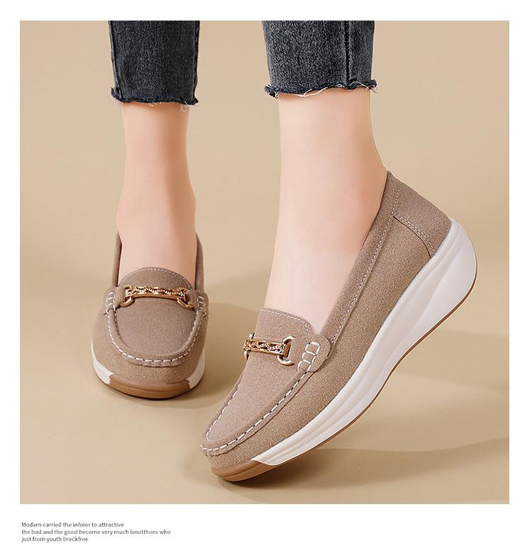 2025 Primavera y Otoño Nueva Moda Hebilla Metálica Zapatos de Mamá Zapatos de Plataforma de Suela Gruesa Zapatos Individuales de Cuña para Mujer Zapatos para Caminar para Personas de Mediana Edad y Ancianos