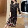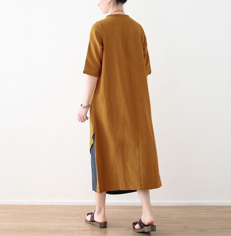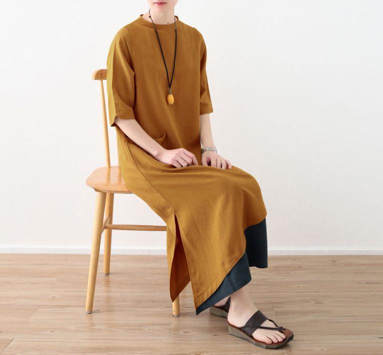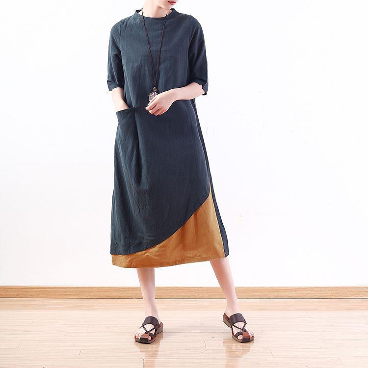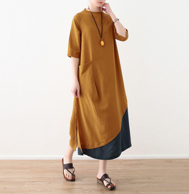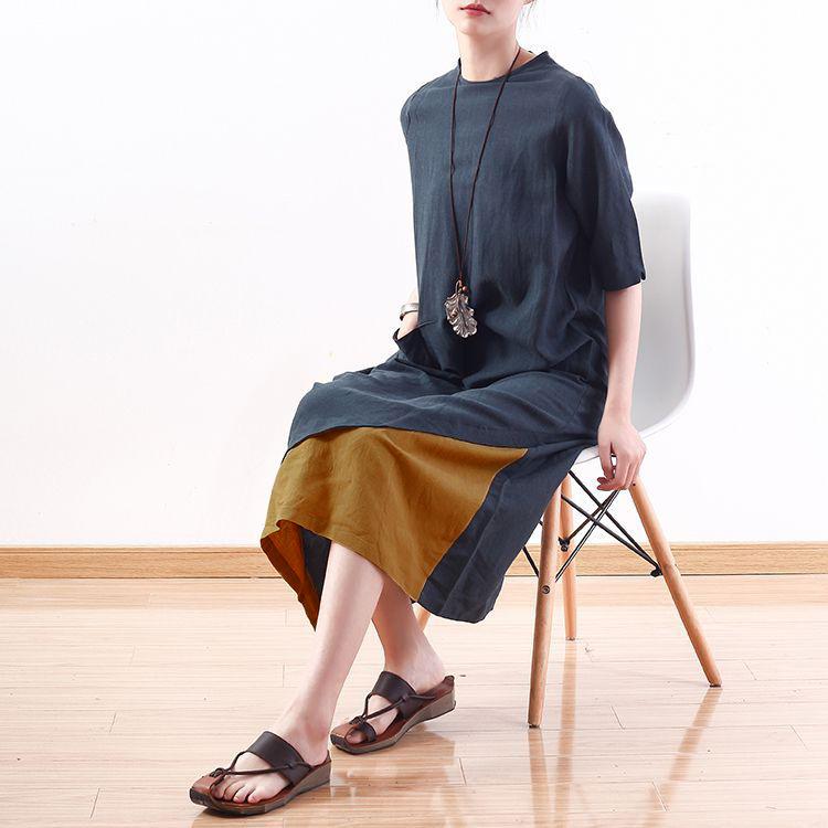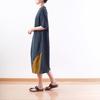 2025 Verano Nuevo Artístico Cuello Redondo Bloque de Color Vintage Manga Media Vestido Línea A