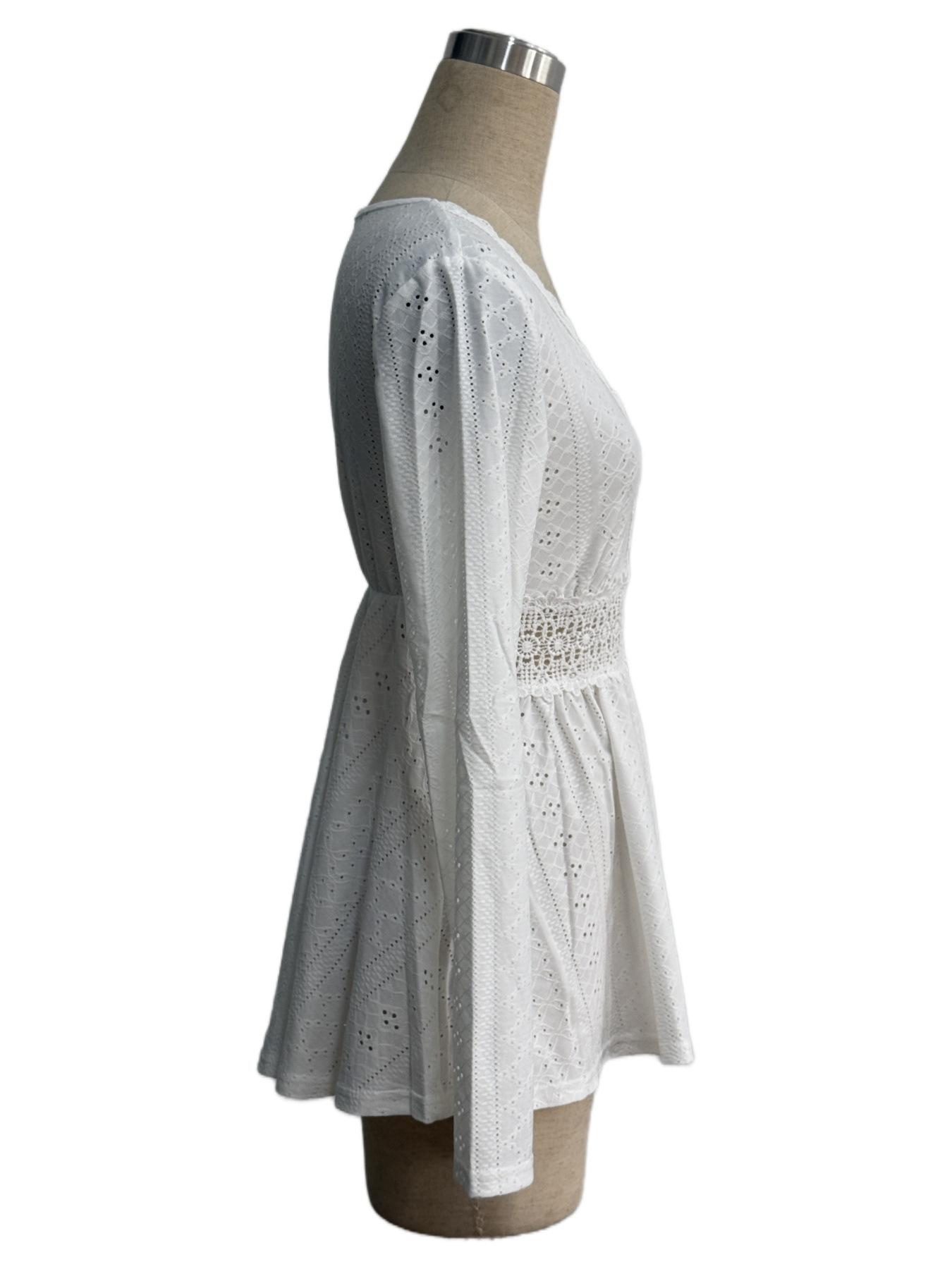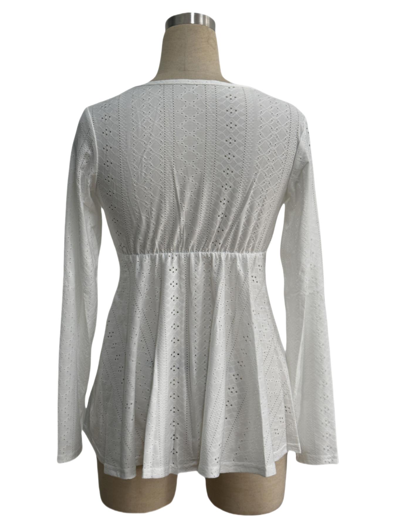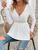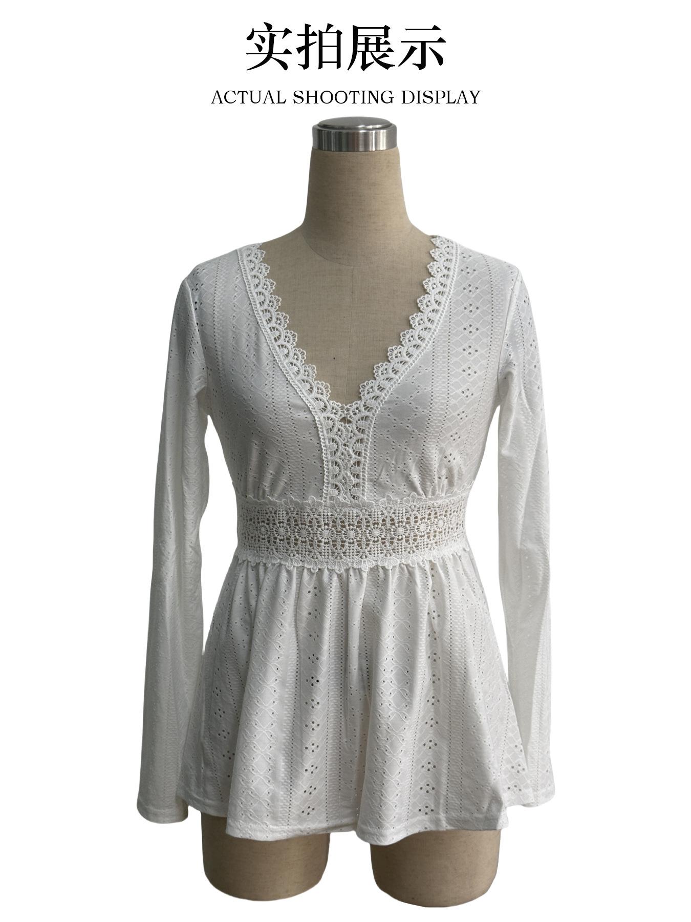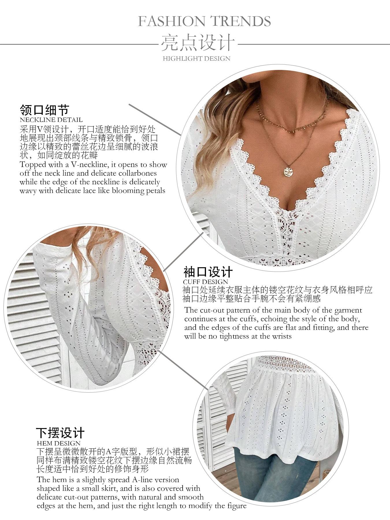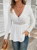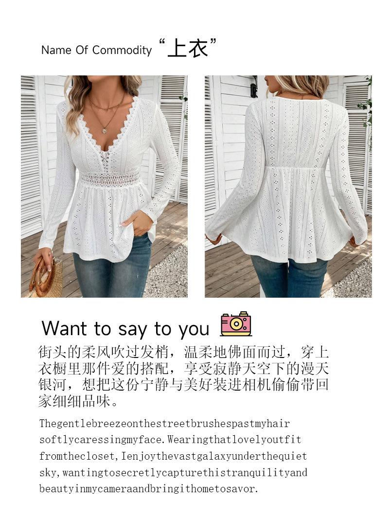 Europeo y Americano Transfronterizo 2025 Nuevo Otoño Elegante para Mujer Color Puro Cuello en V Encaje Empalmado Manga Larga Camiseta Tops para Mujer