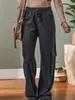 Pantalones de Pierna Ancha con Cordón 2025 Nuevos Pantalones Casuales Holgados de Otoño para Mujer Rectos de Cintura Alta Drapeados Casuales de Pierna Larga