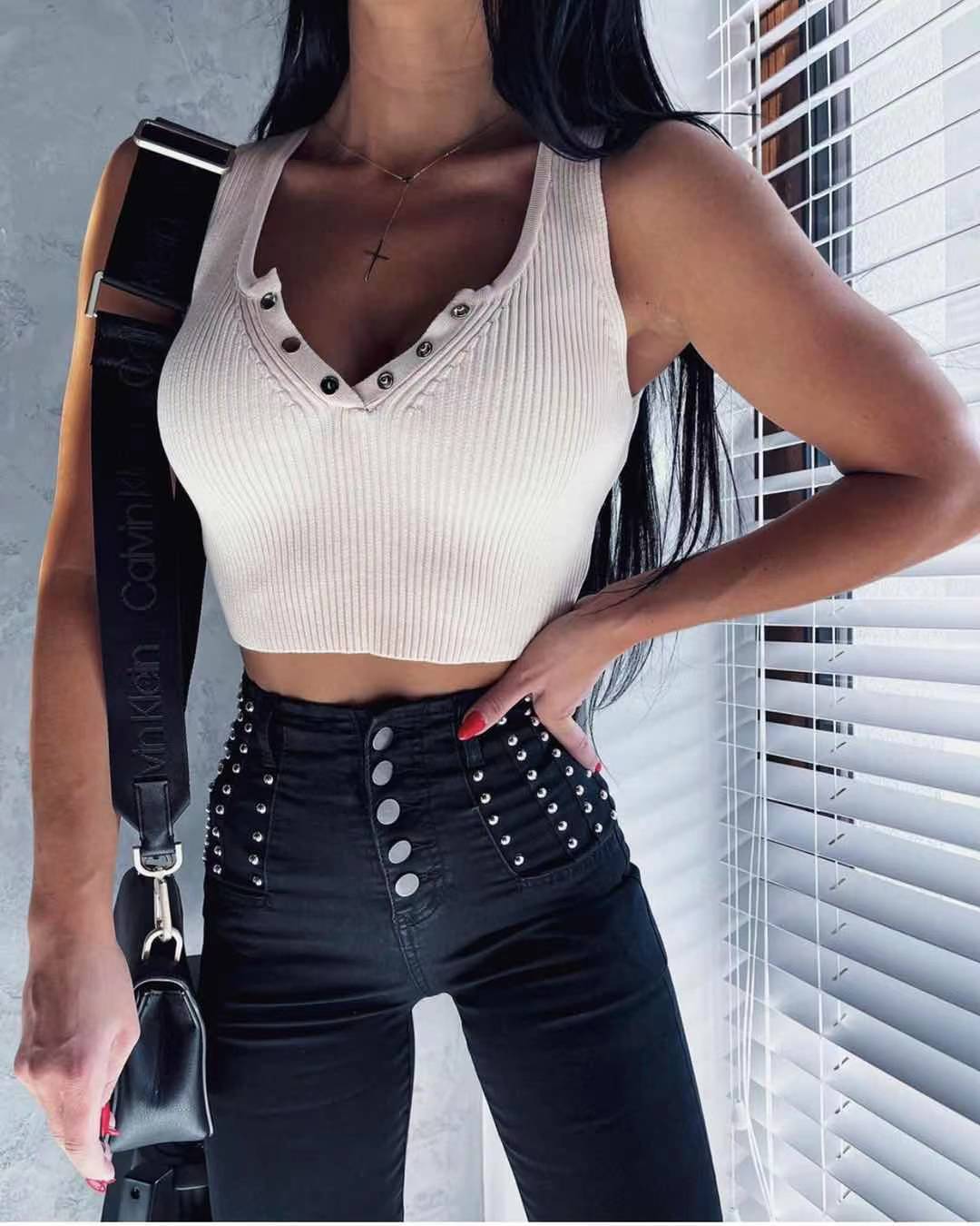 Compra Chaleco Tejido Corto de Pecho con Botones al por mayor en Joom.pro