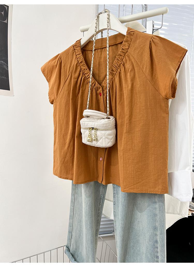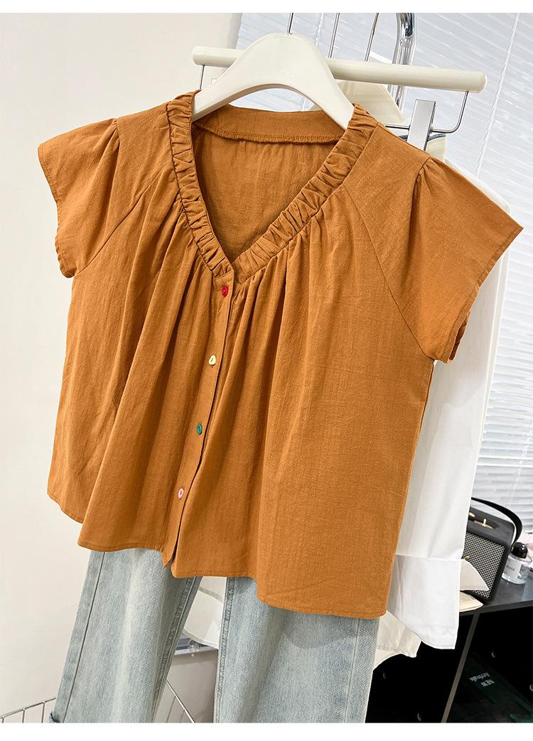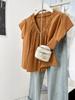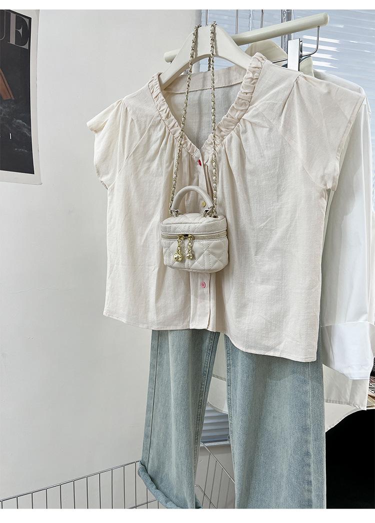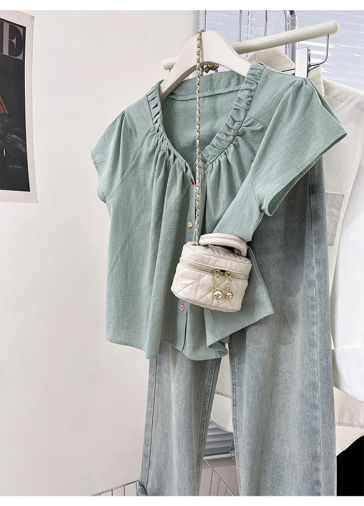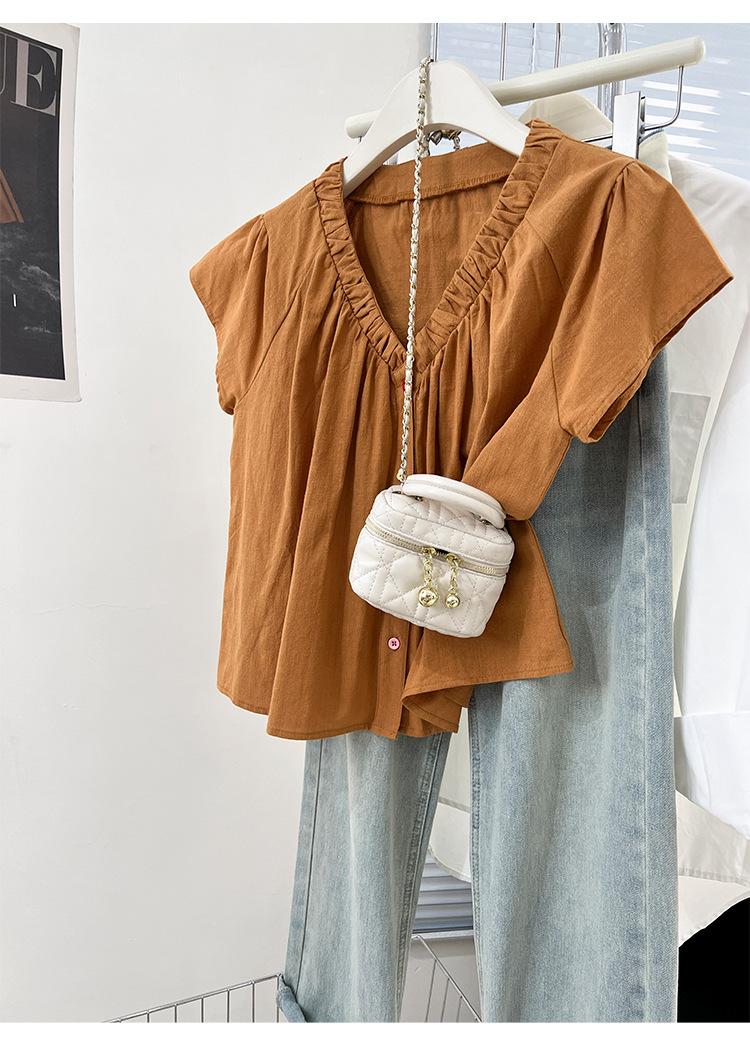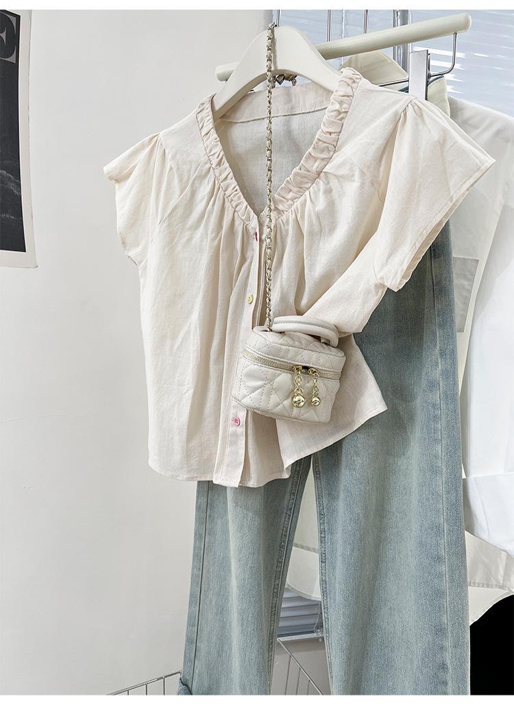 Camisa de manga corta para mujer, verano 2024, nueva ropa de mujer, moda de nicho francesa, elegante, cuello en V, ligera, madura, elegante, top