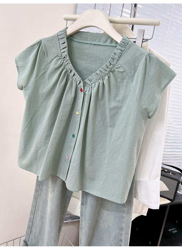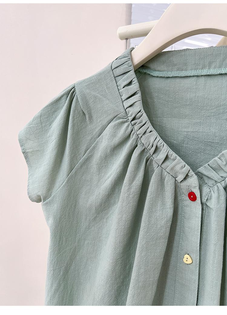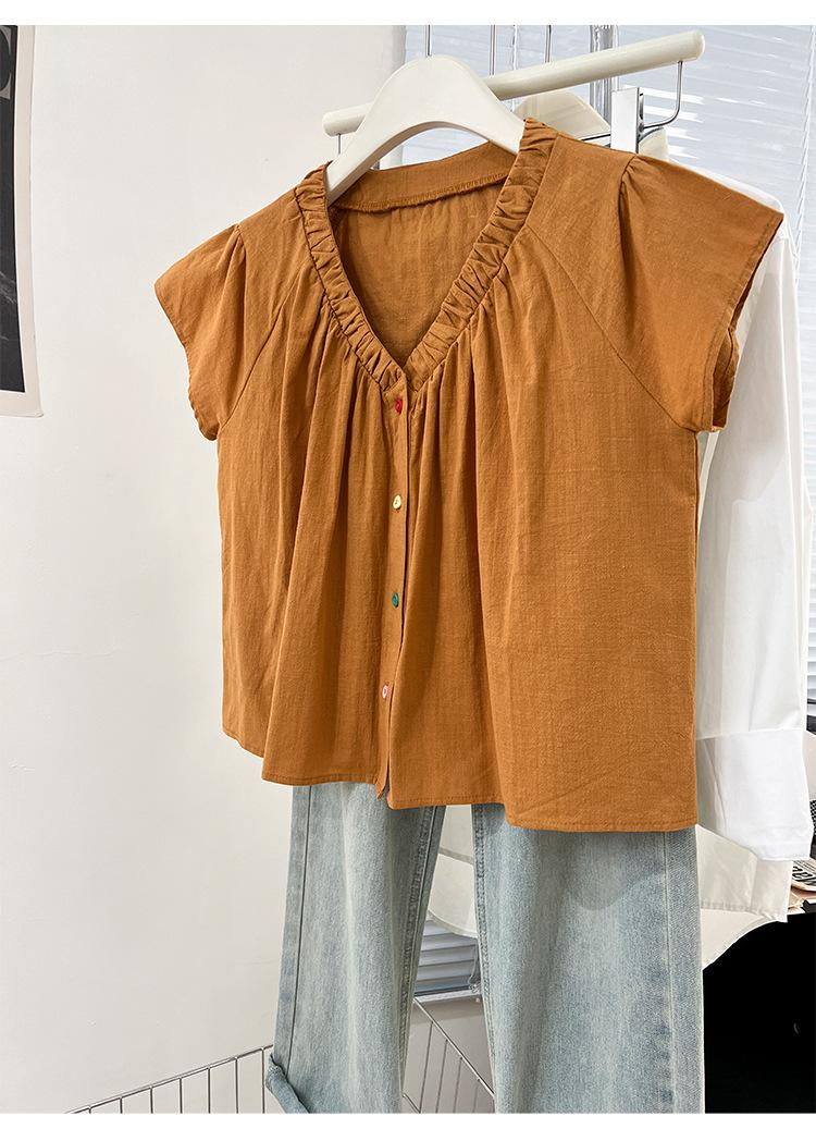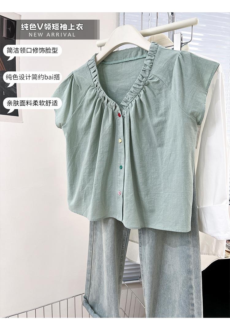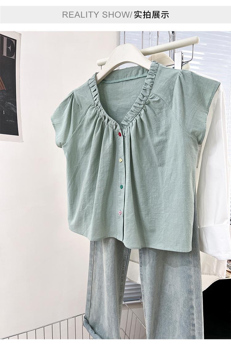 Camisa de manga corta para mujer, verano 2024, nueva ropa de mujer, moda de nicho francesa, elegante, cuello en V, ligera, madura, elegante, top