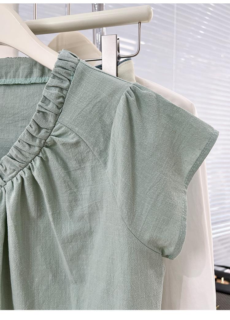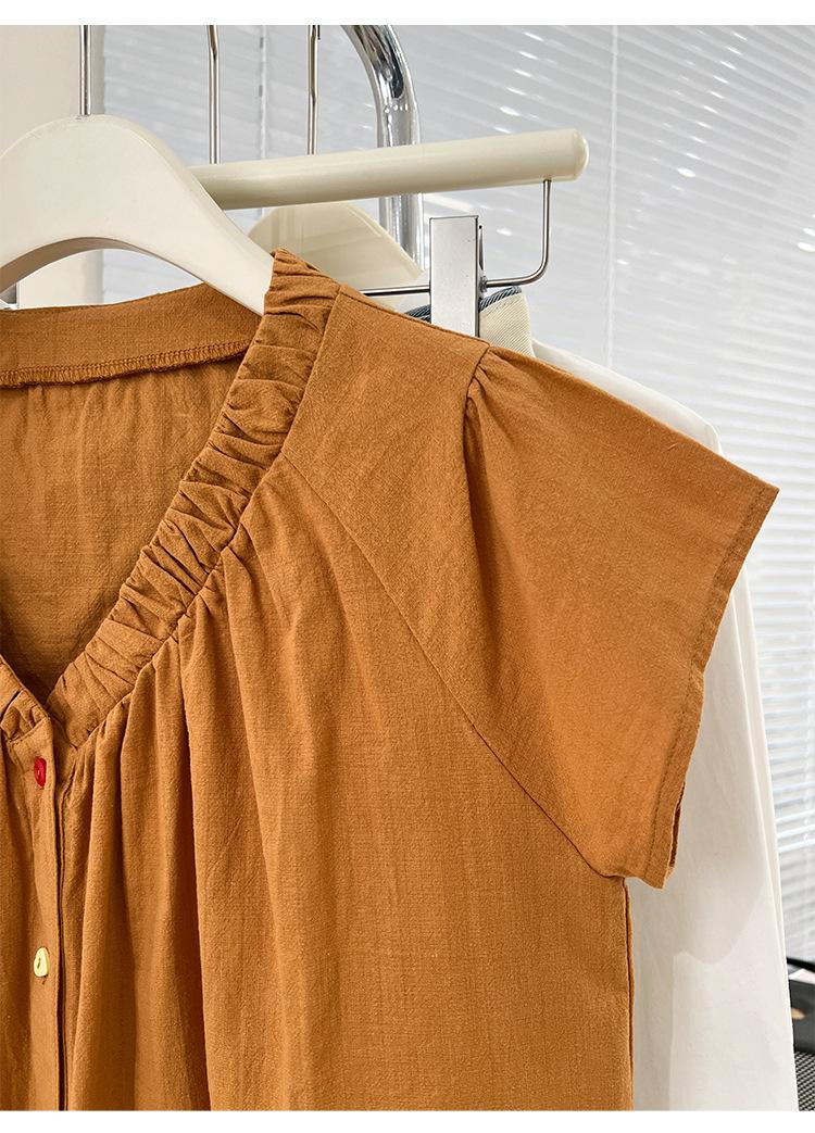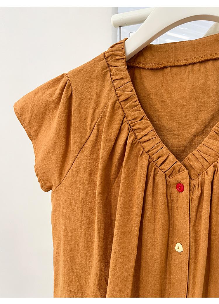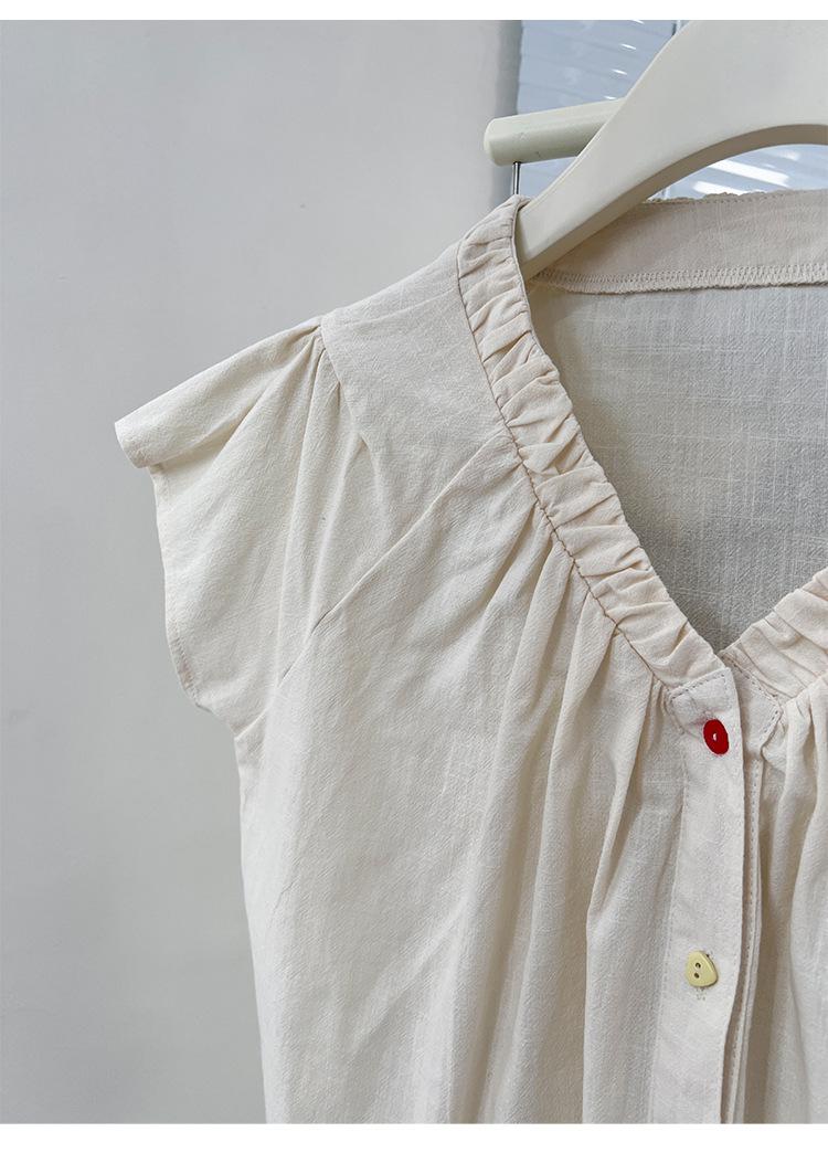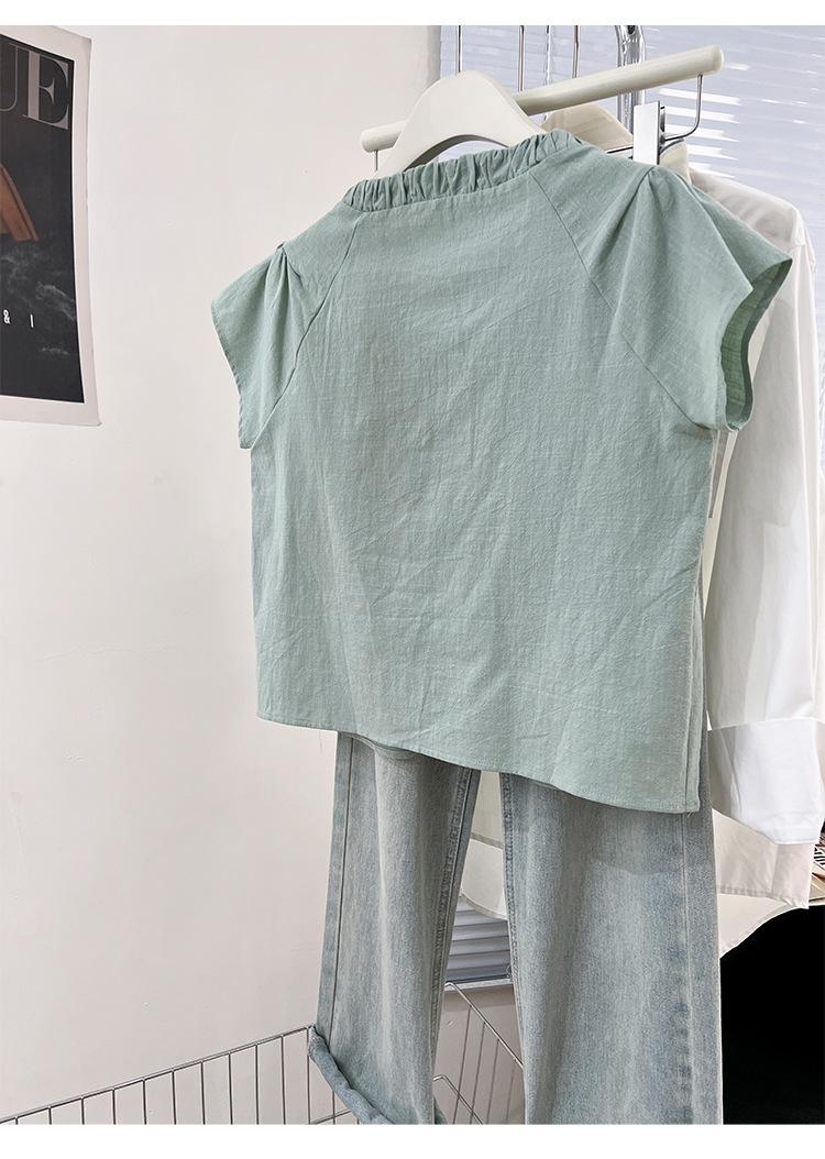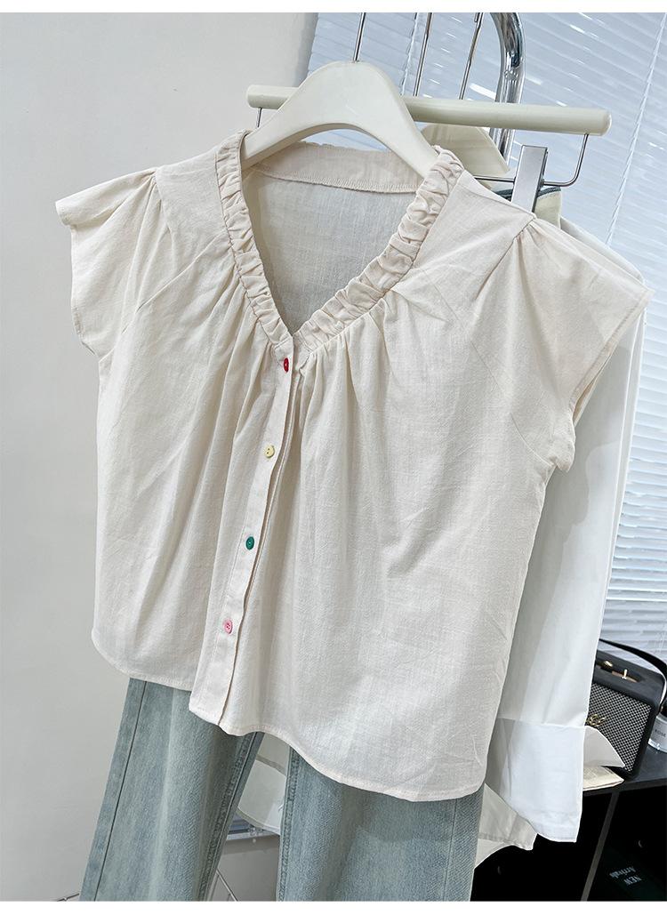 Camisa de manga corta para mujer, verano 2024, nueva ropa de mujer, moda de nicho francesa, elegante, cuello en V, ligera, madura, elegante, top