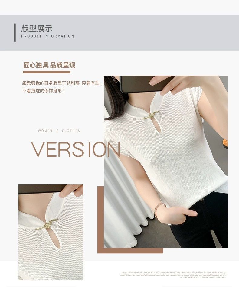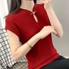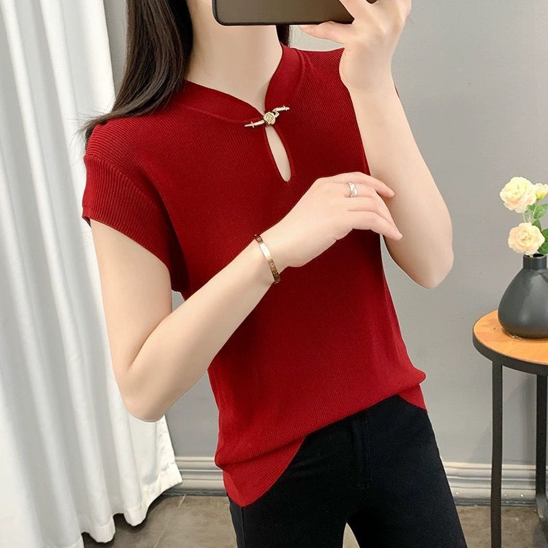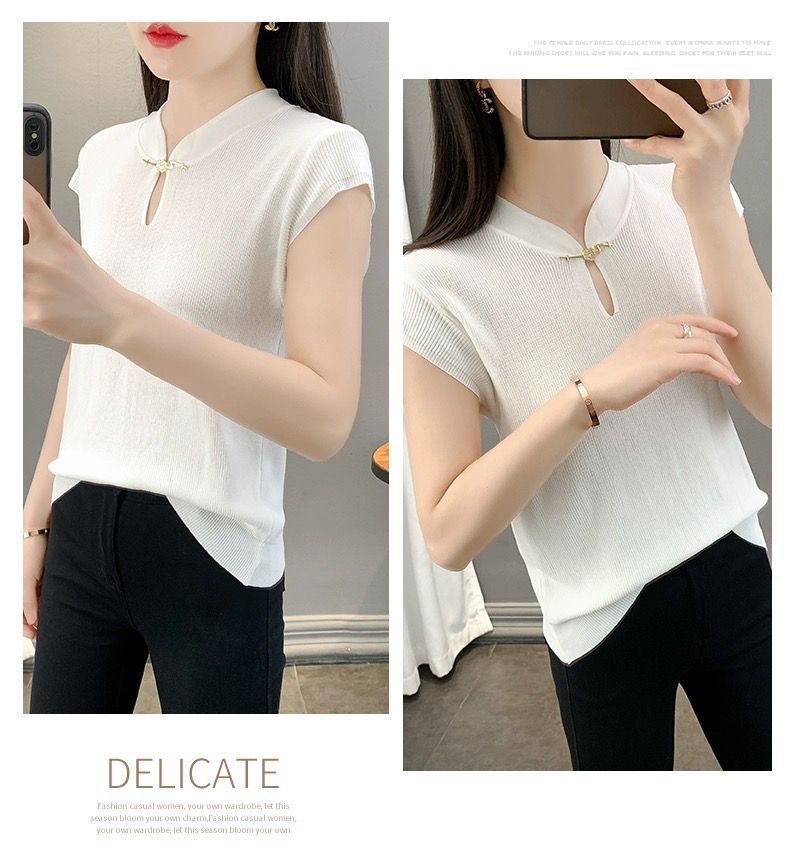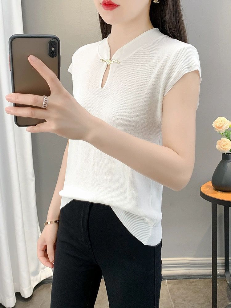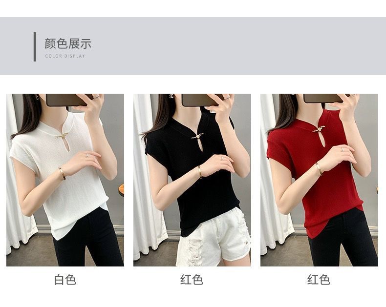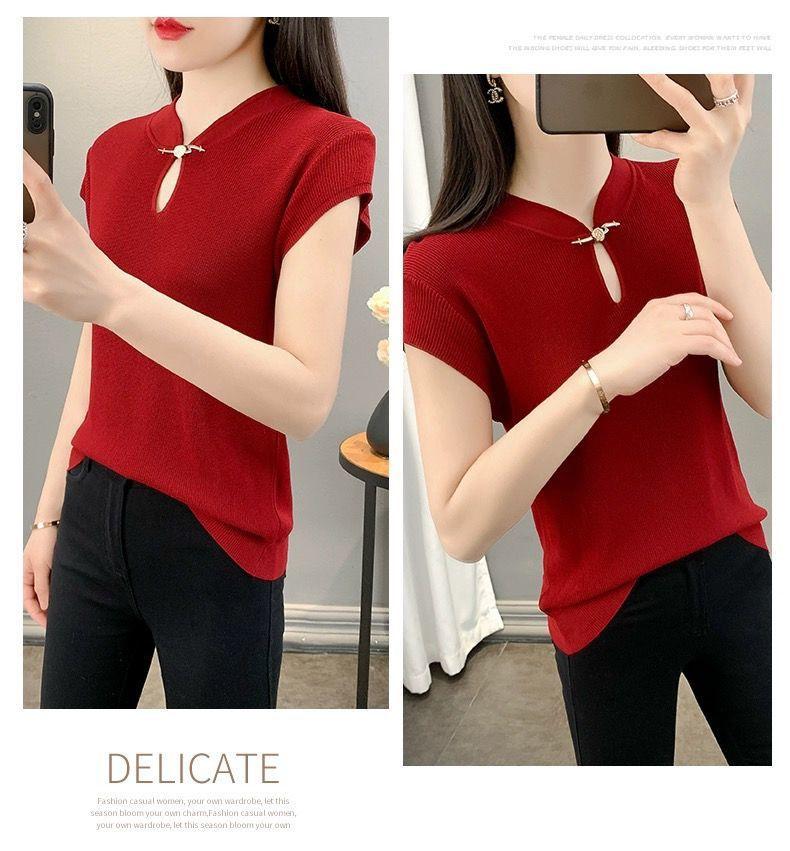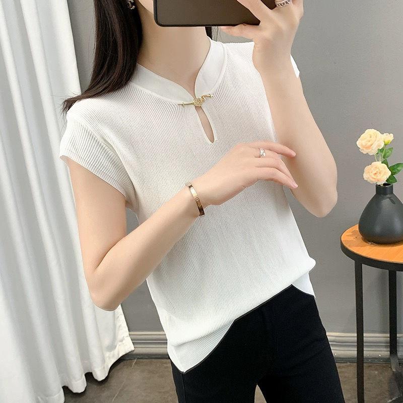 Nueva Blusa de Seda de Hielo Estilo Chino 2024 Verano Nueva Camiseta Versátil Holgada de Manga Corta con Botones Estilo Francés de Talla Grande
