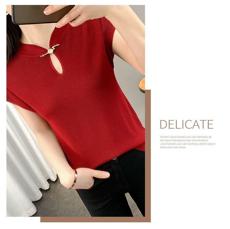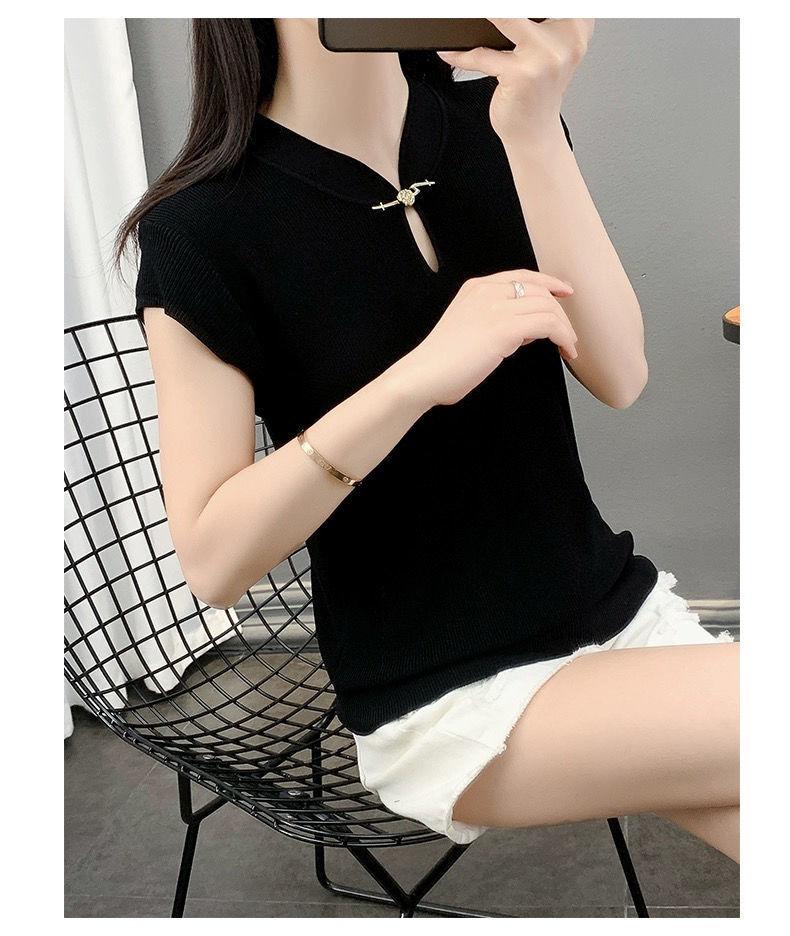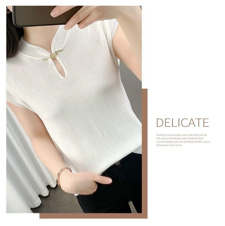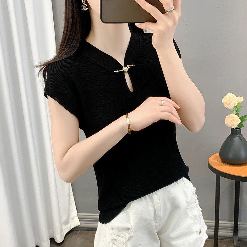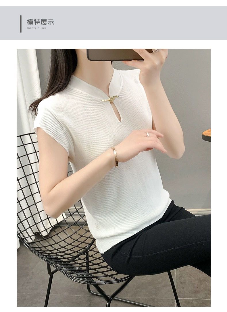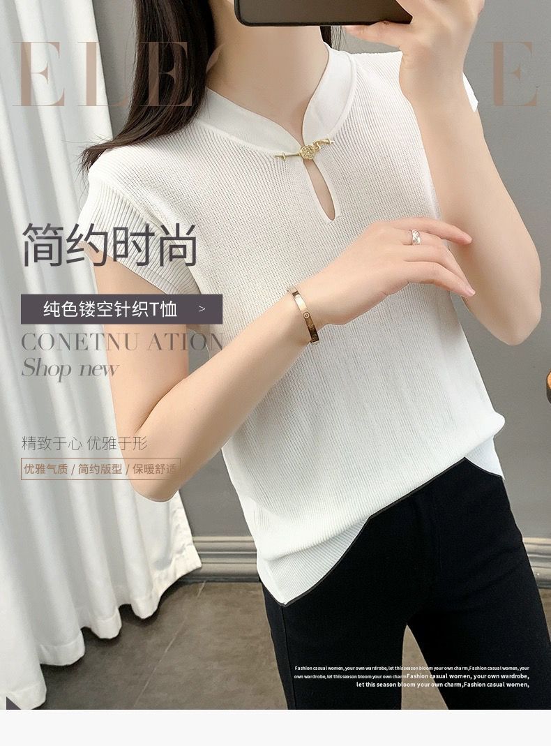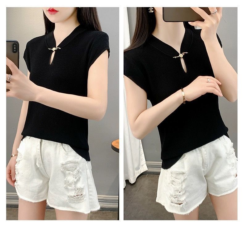 Nueva Blusa de Seda de Hielo Estilo Chino 2024 Verano Nueva Camiseta Versátil Holgada de Manga Corta con Botones Estilo Francés de Talla Grande