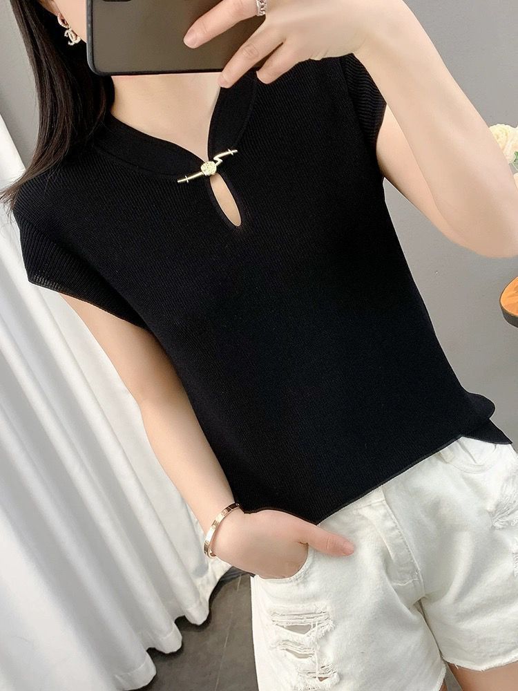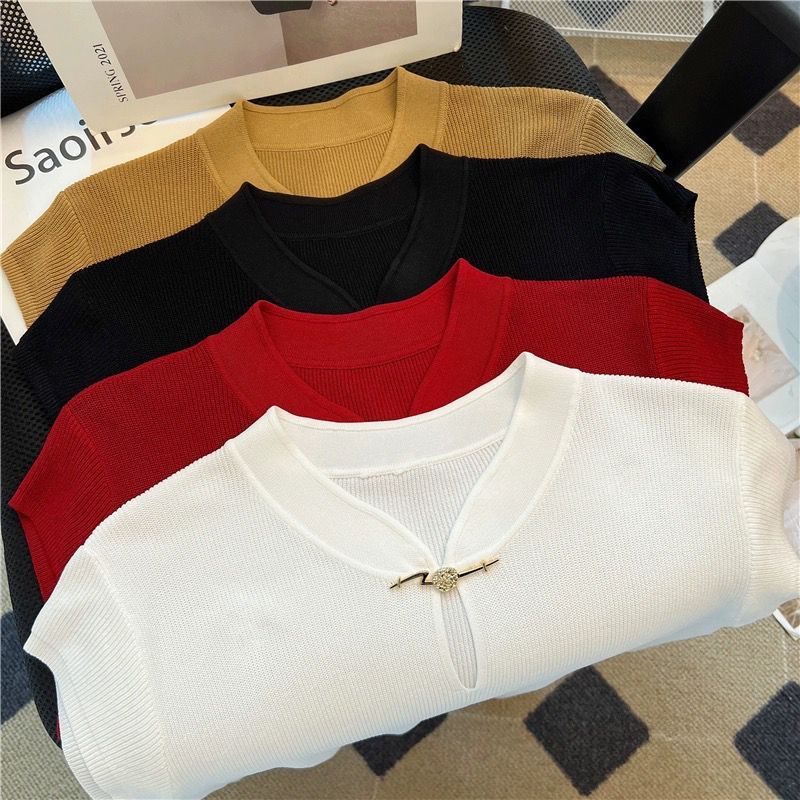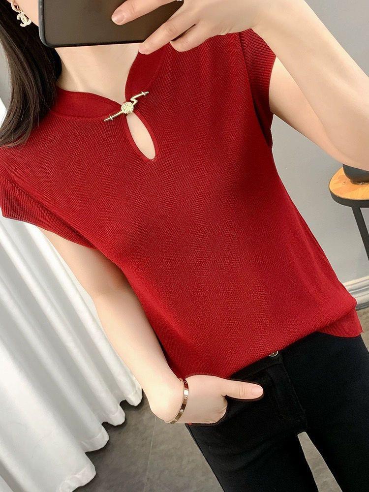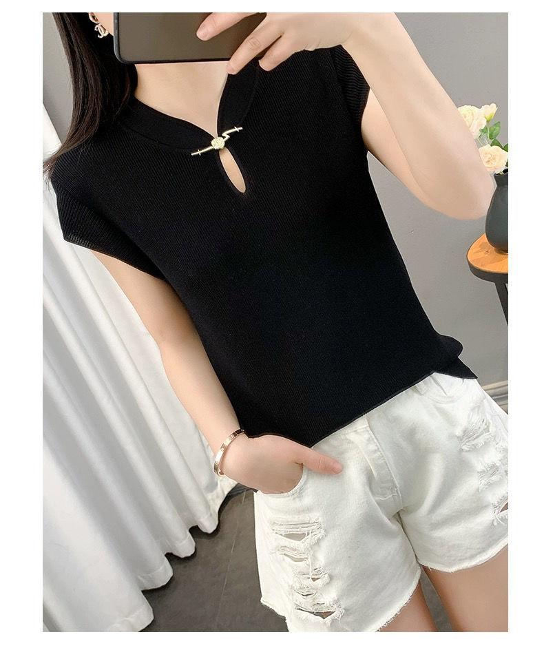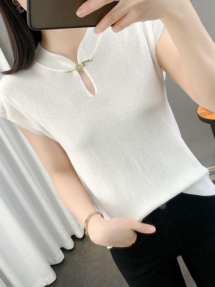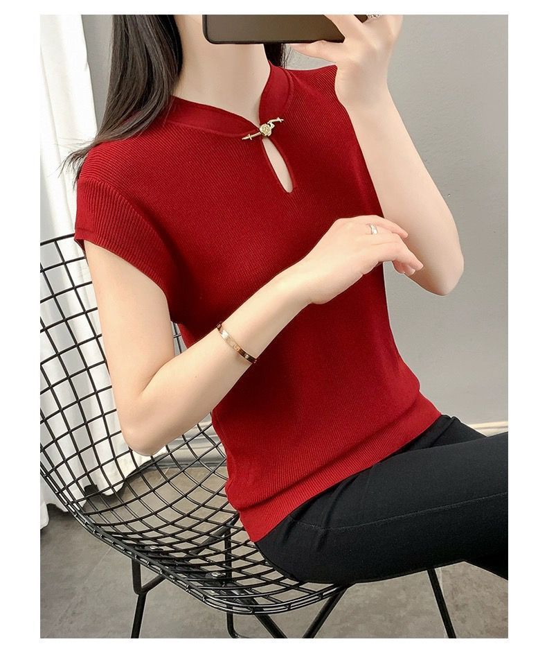 Nueva Blusa de Seda de Hielo Estilo Chino 2024 Verano Nueva Camiseta Versátil Holgada de Manga Corta con Botones Estilo Francés de Talla Grande