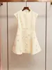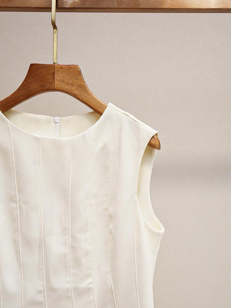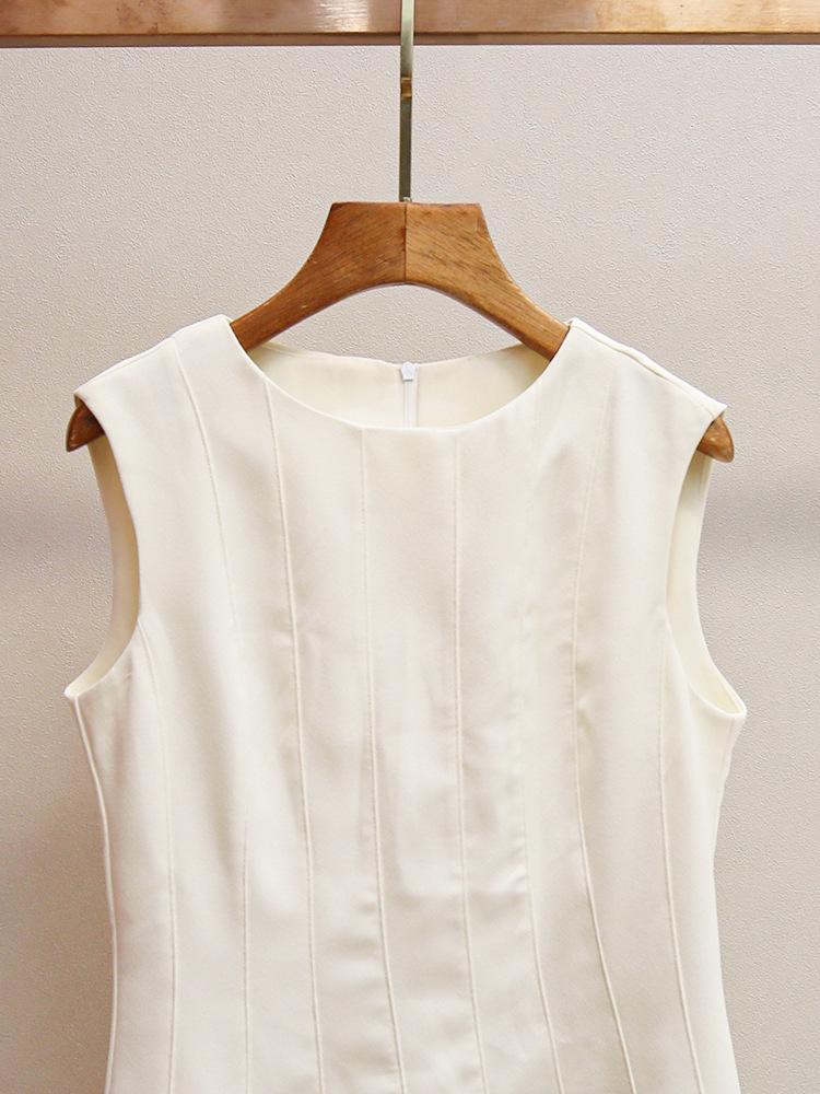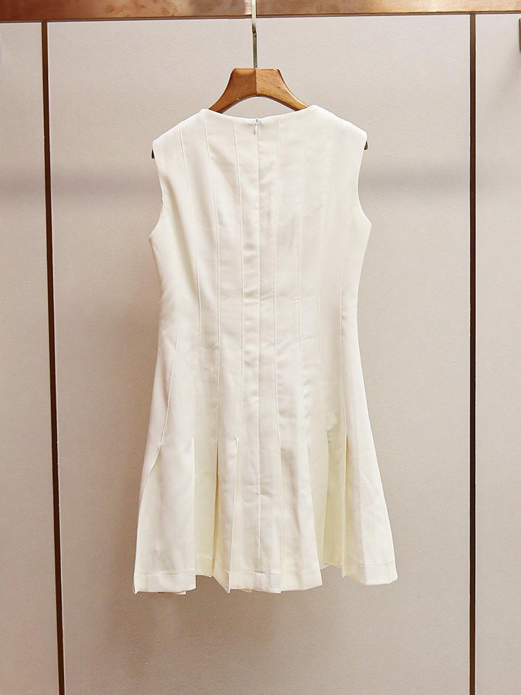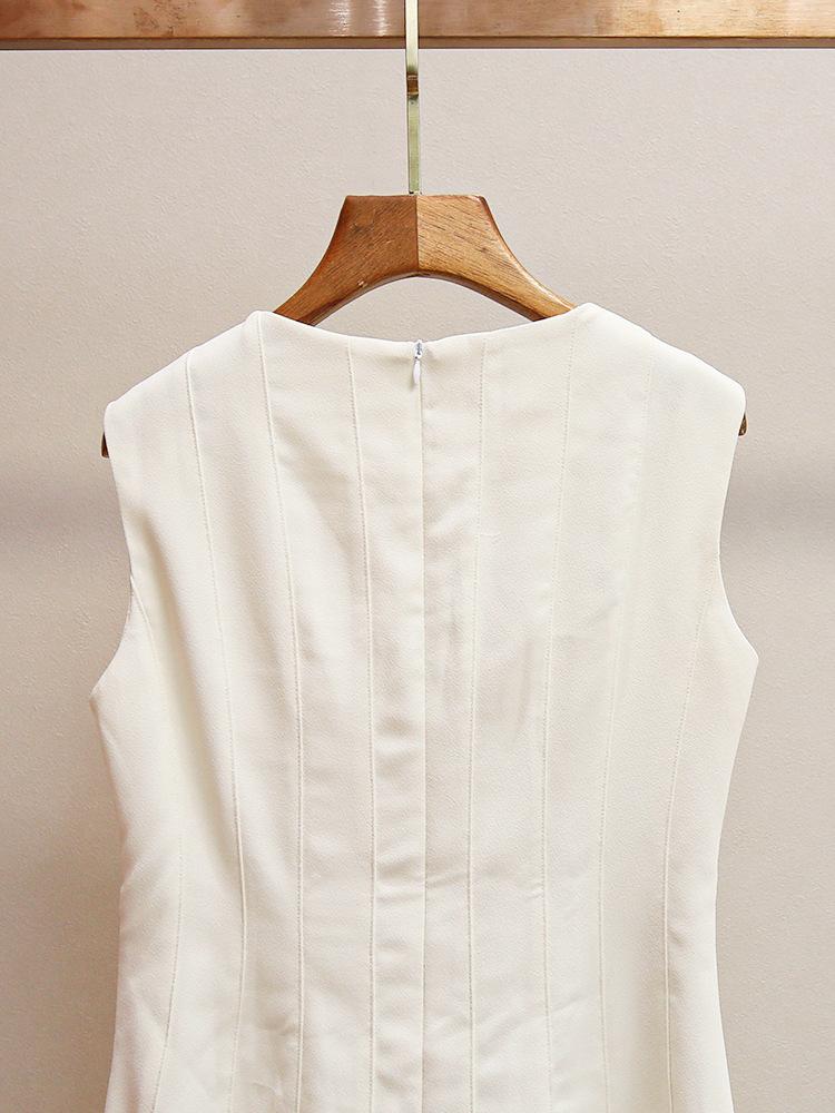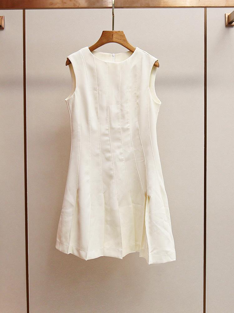 Shenzhen Nanyou Vestido Elegante para Mujer Francés Simple Casual Cintura Blanco Roto Cuello Redondo Elegante Sin Mangas