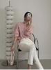 Camisa rosa de manga larga para mujer, abrigo superior, primavera y otoño 2024, nuevo diseño, estilo informal, holgado, con un toque de estilo.