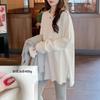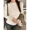Camiseta Derong con Abertura para Mujer Terciopelo Otoño e Invierno Ropa Interior Estilo Coreano Suelta Ropa Exterior Camiseta Básica Color Puro Manga Larga Top Grueso