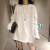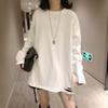 White (german velvet] slit at the hem, White (german velvet] solid color, White (german velvet] letters, White...