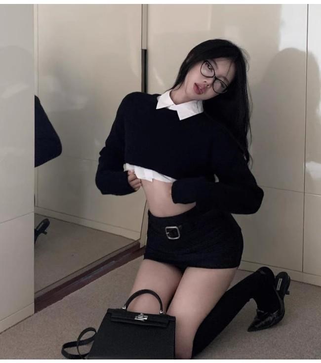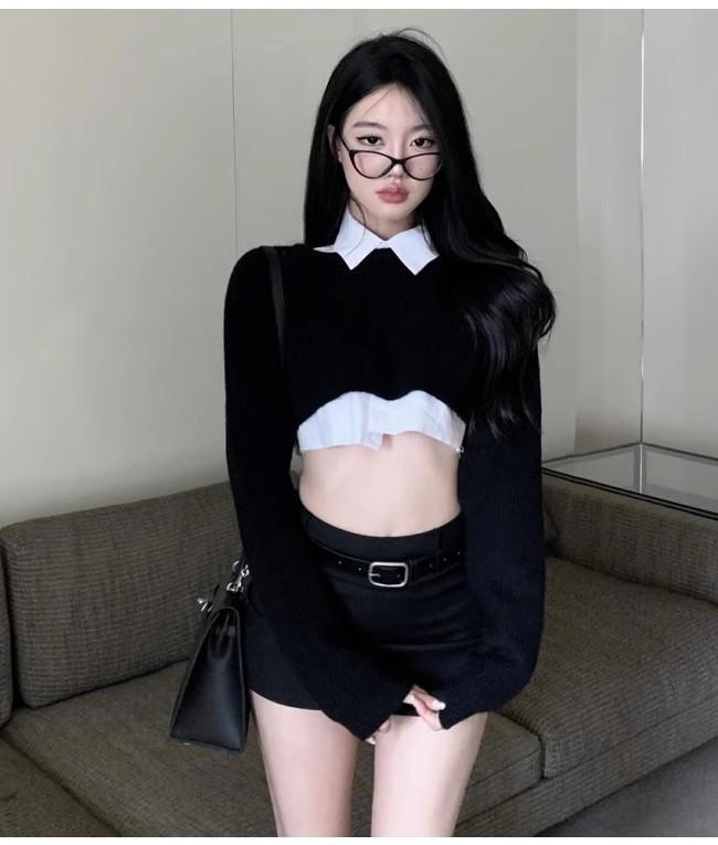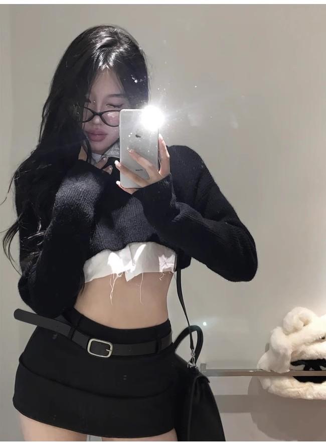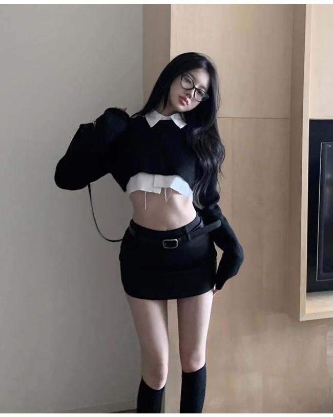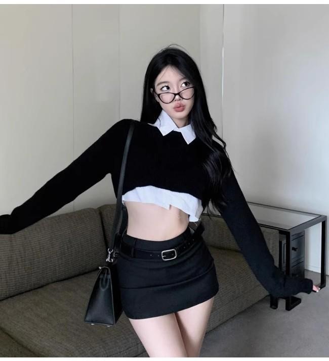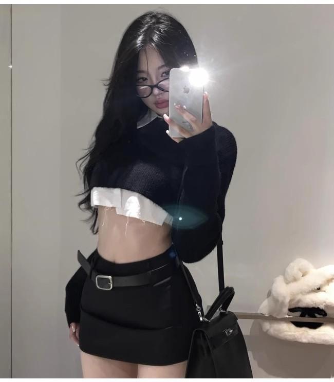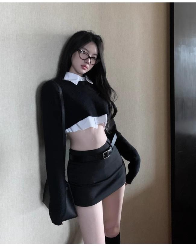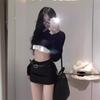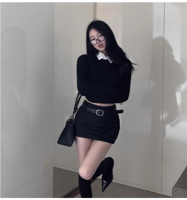 Falda negra para chicas sexys, primavera y verano 2024, falda corta de un solo paso, cintura alta, ajustada, sexy, a la cadera.
