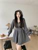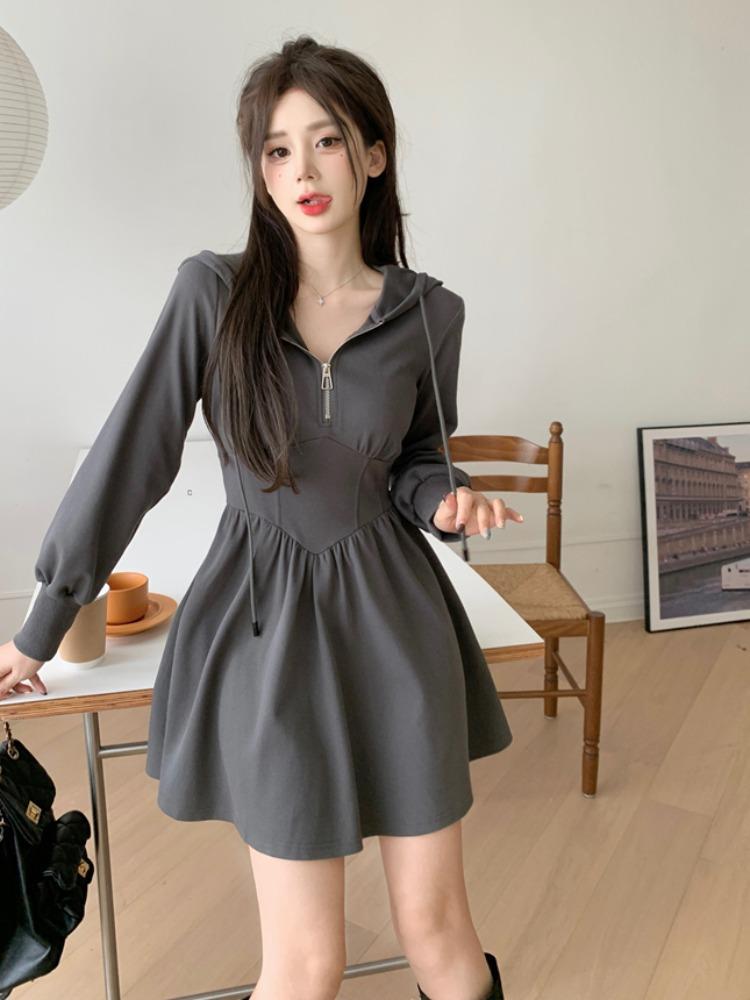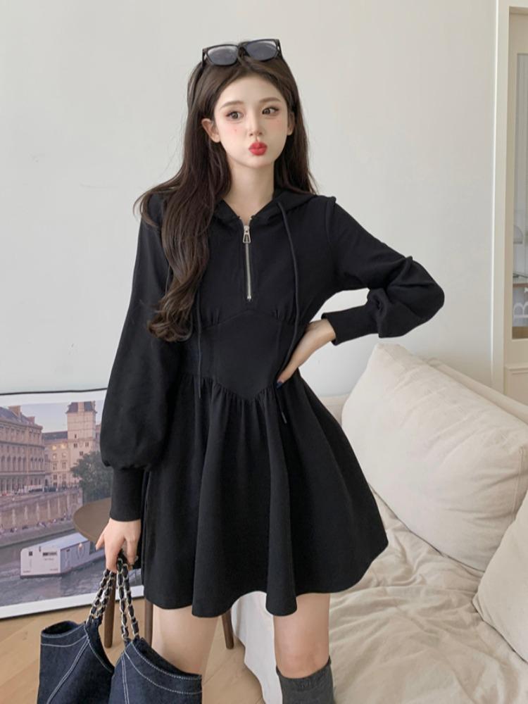 Vestido de camiseta con capucha de manga larga para mujer, de talla grande, para principios de otoño, estilo coreano, a la moda, pequeño y fresco, con forma de A, falda corta