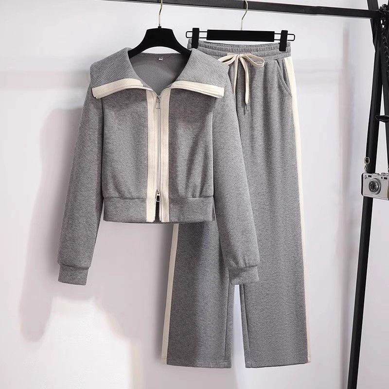 Traje deportivo informal para mujer, primavera y otoño 2024, nueva chaqueta de primavera, pantalones anchos, moda de estilo occidental, conjunto de dos piezas