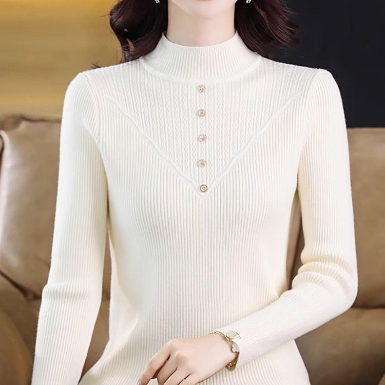 Suéter de Cuello Medio Tortuga Tejido Camiseta Base de Manga Larga Otoño e Invierno Nueva Moda Look Adelgazante Interior Suelto Color Puro Jersey Top