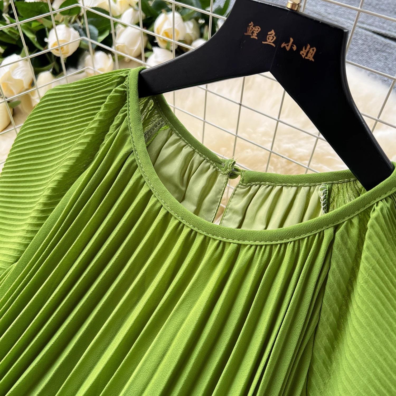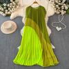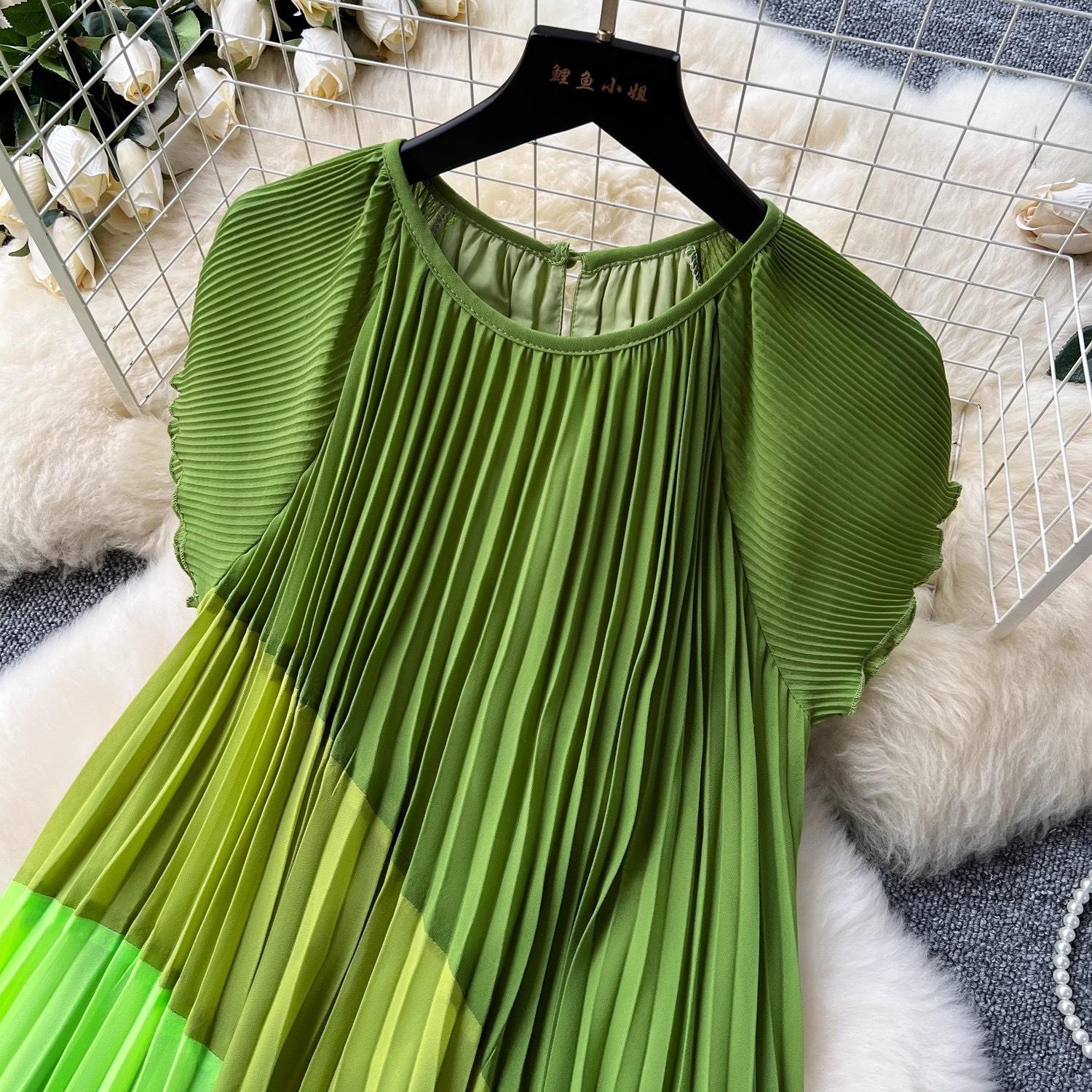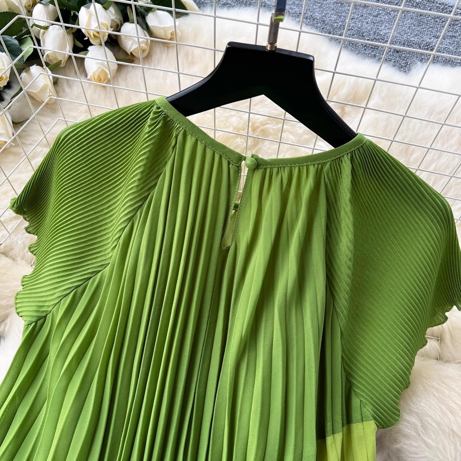 Vestido de verano 2024 nuevo de talla grande, manga corta, largo medio, suelto, costuras finas, color de contraste, temperamento fresco