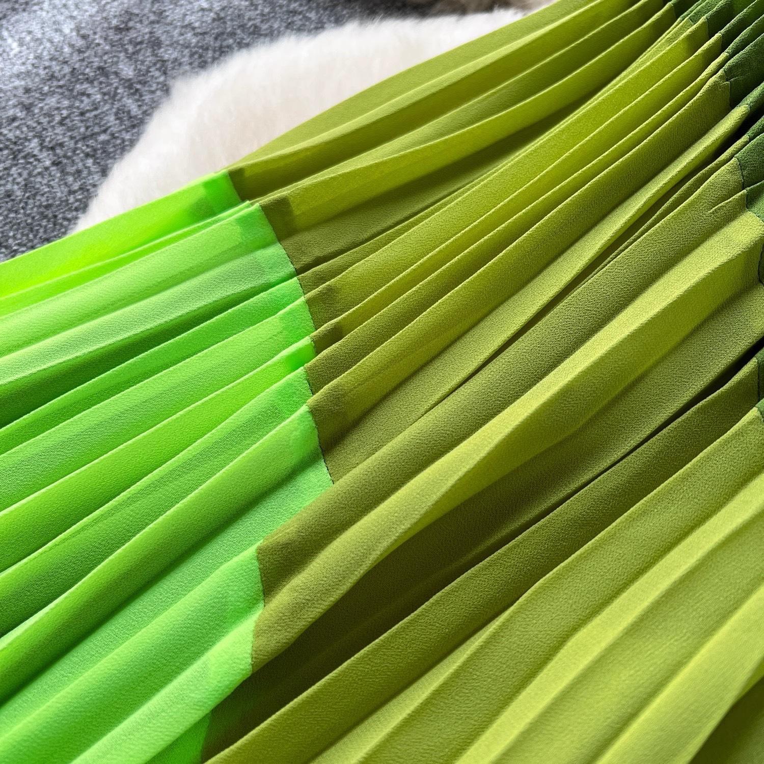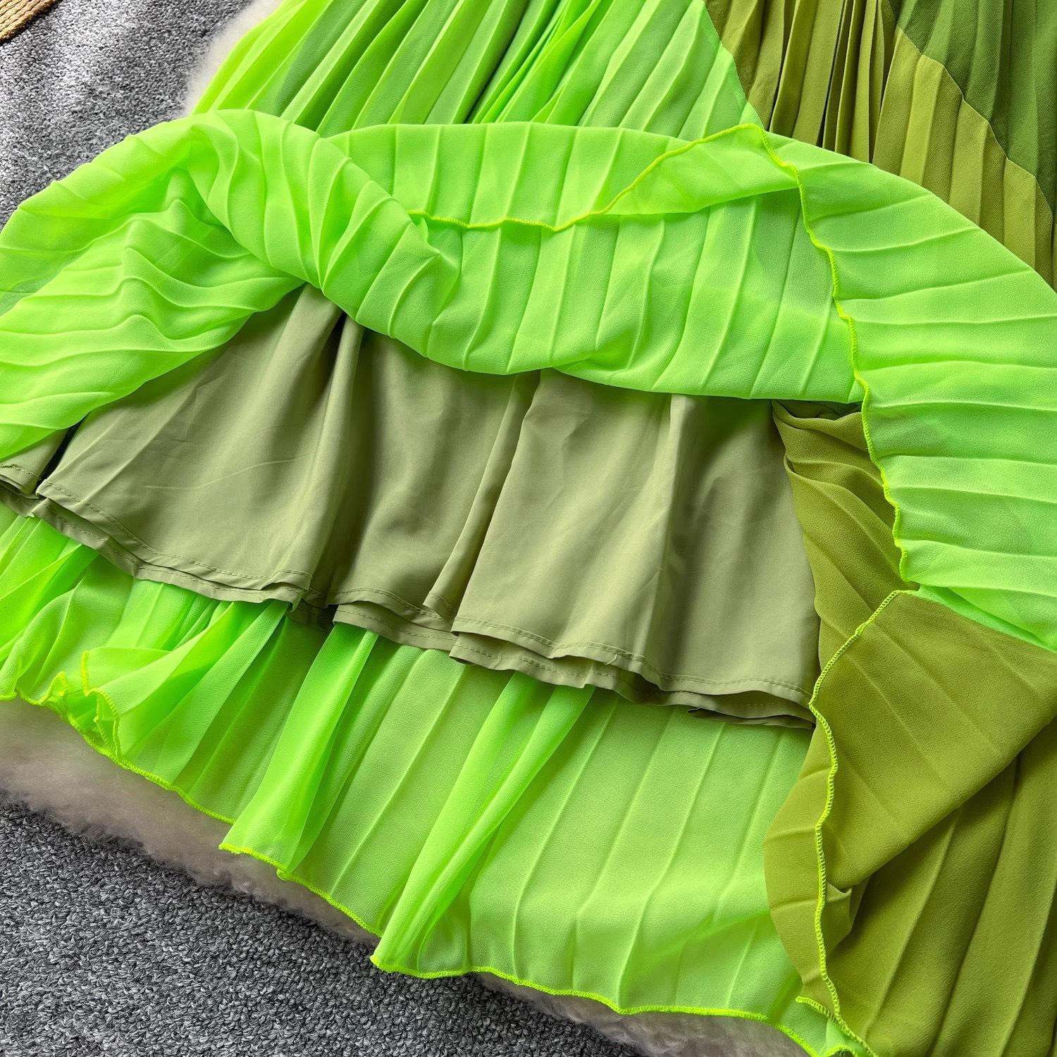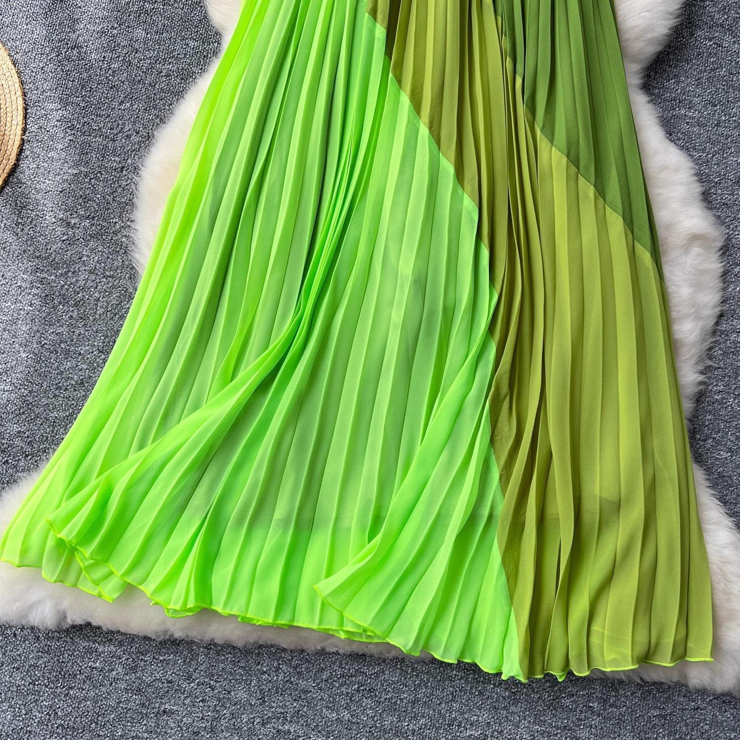 Vestido de verano 2024 nuevo de talla grande, manga corta, largo medio, suelto, costuras finas, color de contraste, temperamento fresco