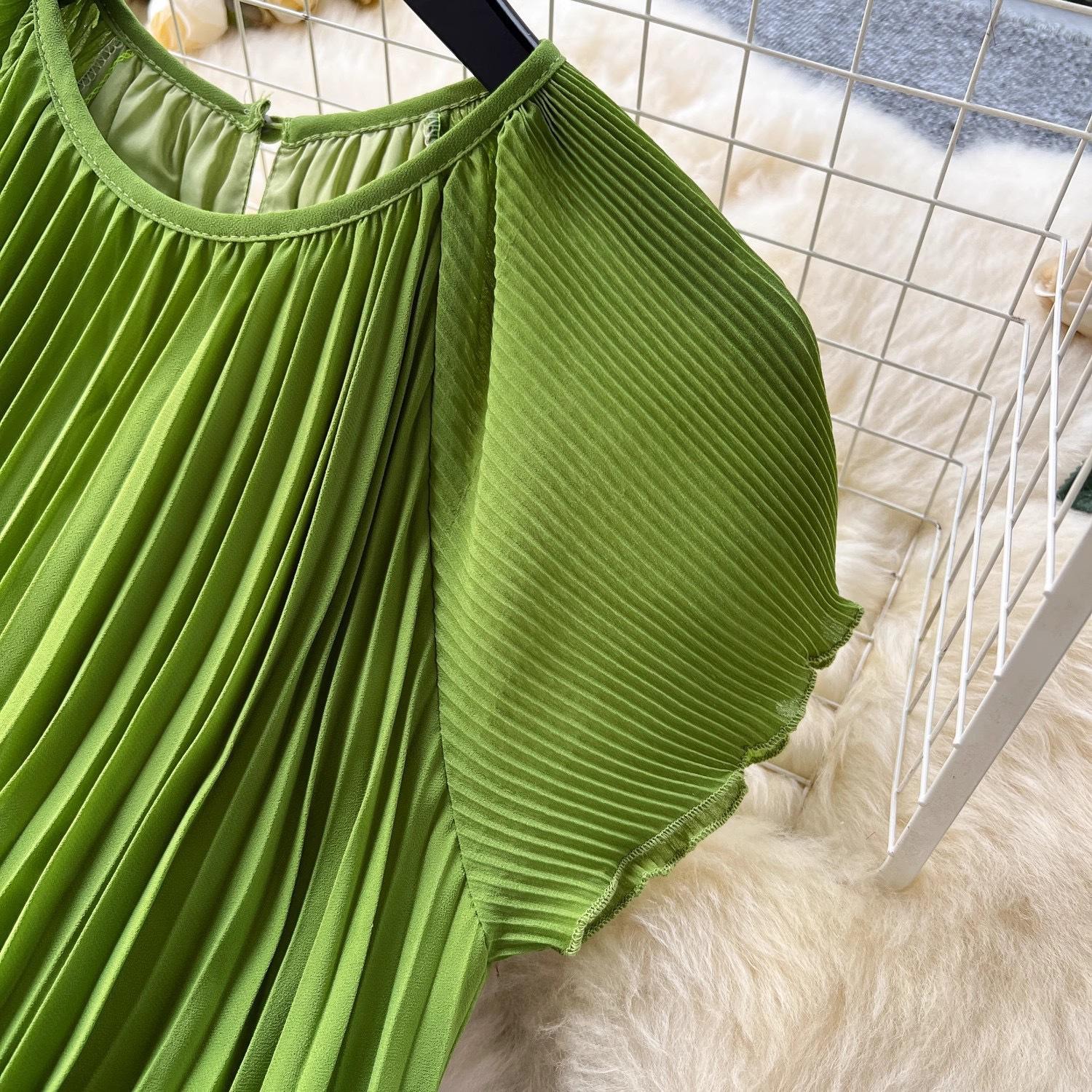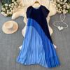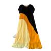 Compra Vestido de verano 2024 nuevo de talla grande, manga corta, largo medio, suelto, costuras finas, color de contraste, temperamento fresco al por mayor en Joom.pro