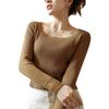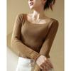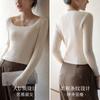Camiseta Top de Punto de Capa Base Elegante para Primavera y Otoño para Mujer con Cuello Cuadrado, Ajuste Slim y Manga Larga para Principios de Otoño Nuevas Llegadas