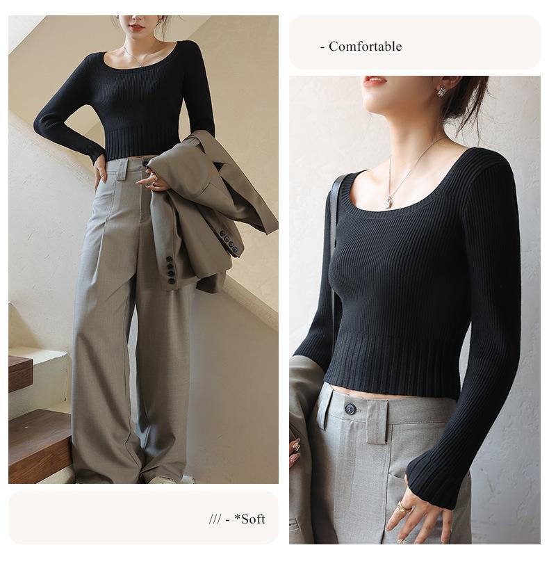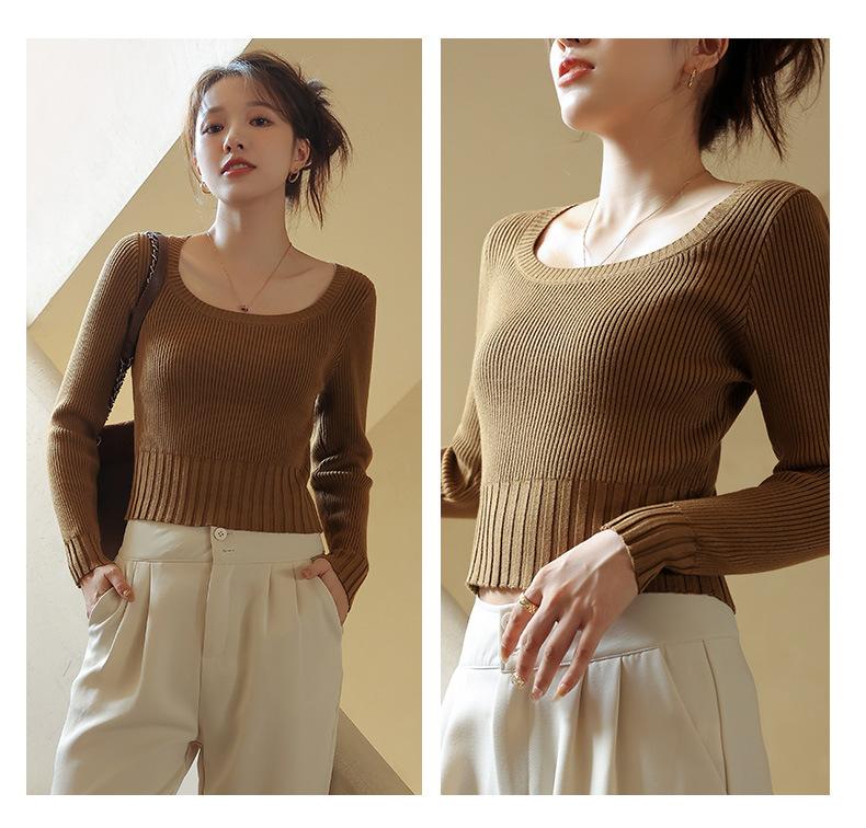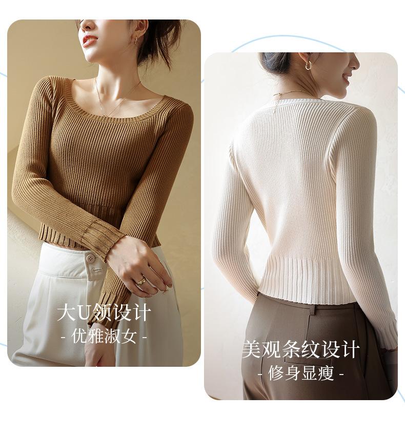 Compra Camiseta Top de Punto de Capa Base Elegante para Primavera y Otoño para Mujer con Cuello Cuadrado, Ajuste Slim y Manga Larga para Principios de Otoño Nuevas Llegadas al por mayor en Joom.pro