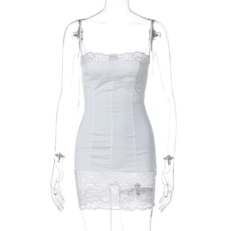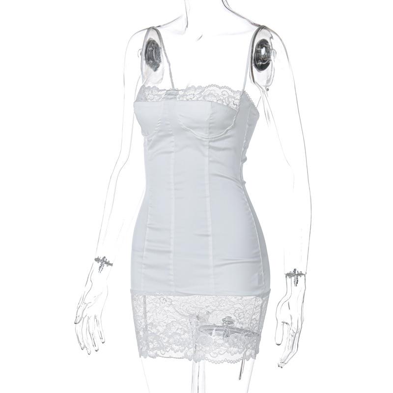 Compra Vestido de primavera nuevo con encaje y costuras para mujer europea y americana, sexy, ajustado a la cintura y con tirantes. al por mayor en Joom.pro