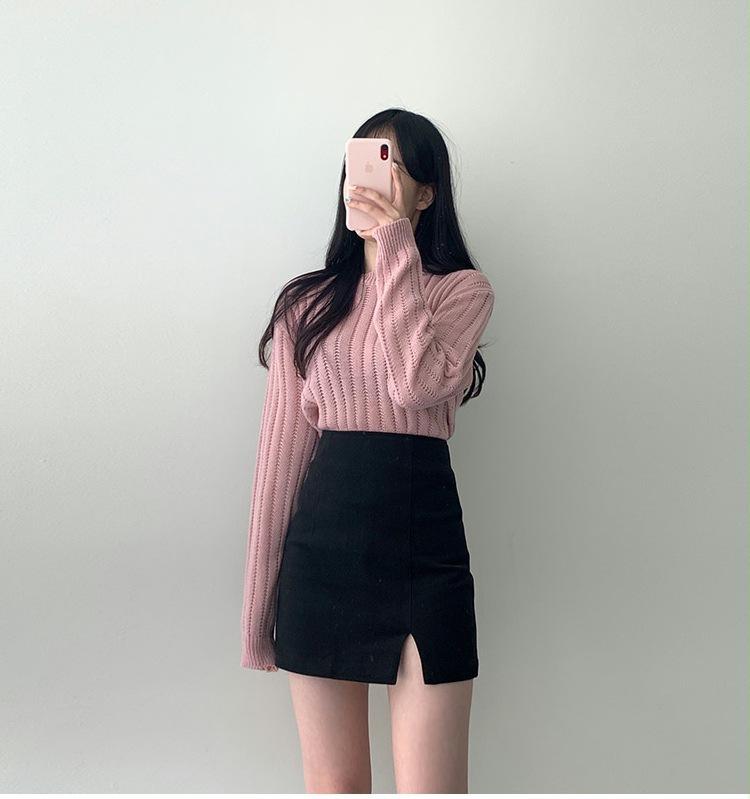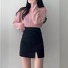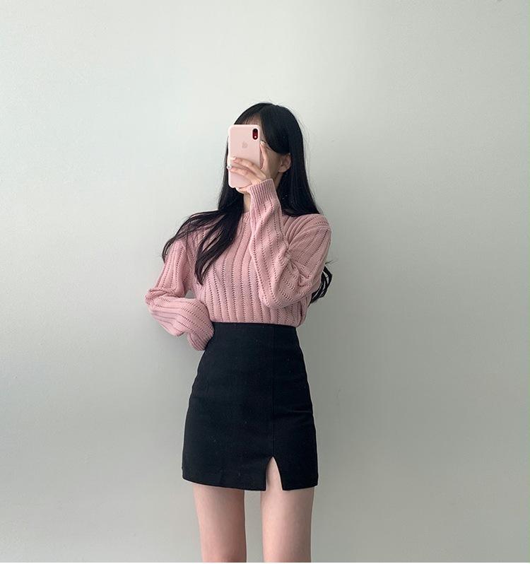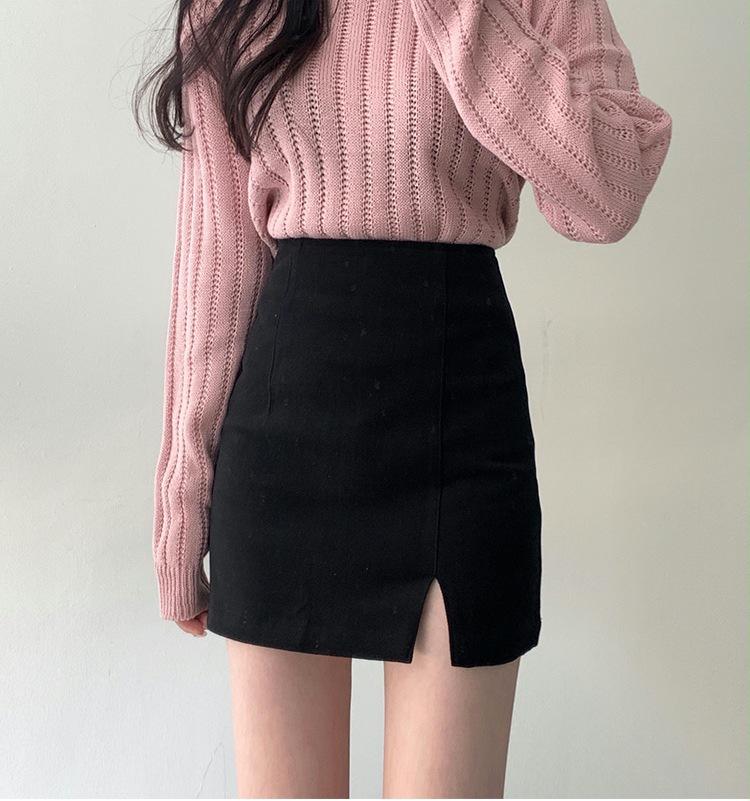 Falda negra de verano 2024 para mujer, falda a la cadera, falda adelgazante de cintura alta, falda dividida de un solo paso, estilo A- Word, nuevo estilo