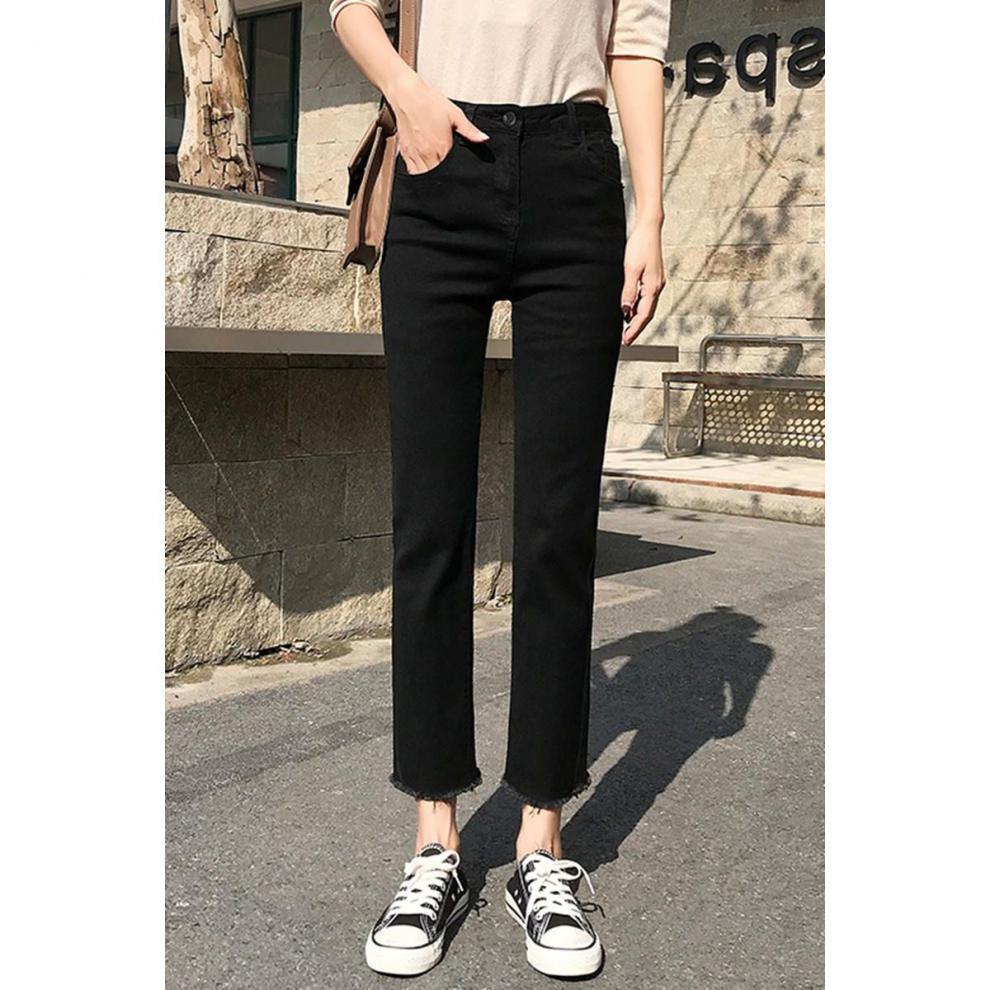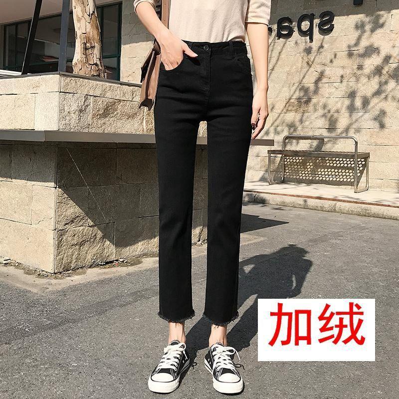 Compra Pantalones rectos de tubo para mujer, invierno 2024, cintura alta, adelgazantes, combinables, elásticos, negros, con forro polar, gruesos. al por mayor en Joom.pro