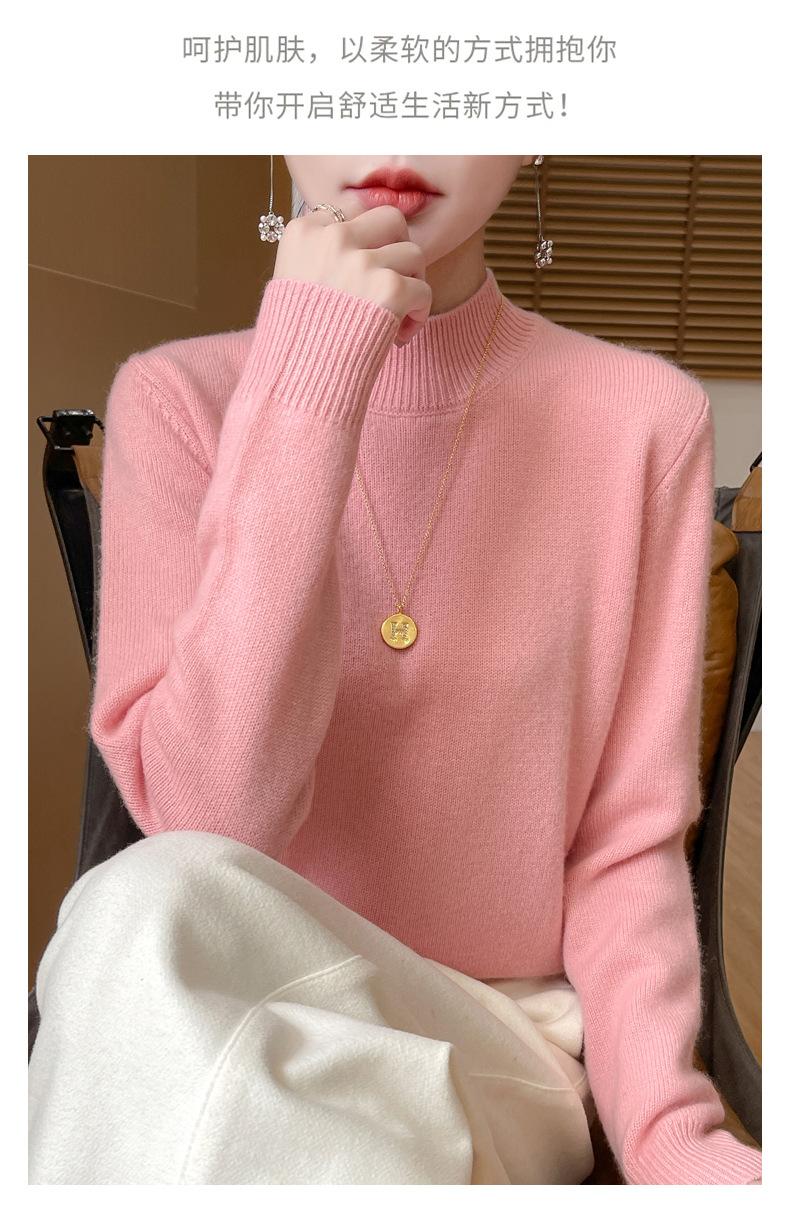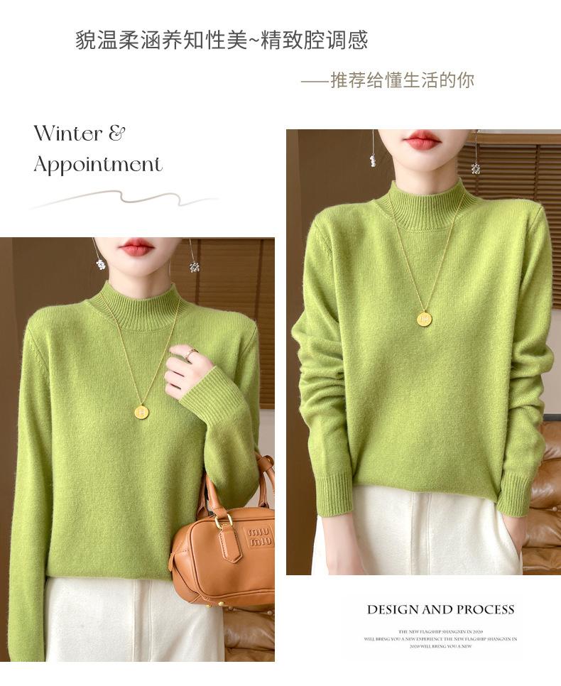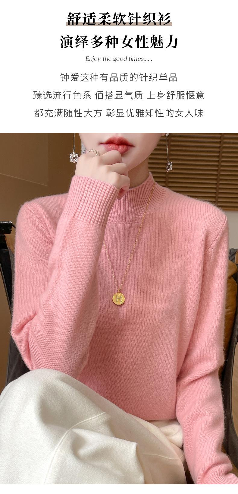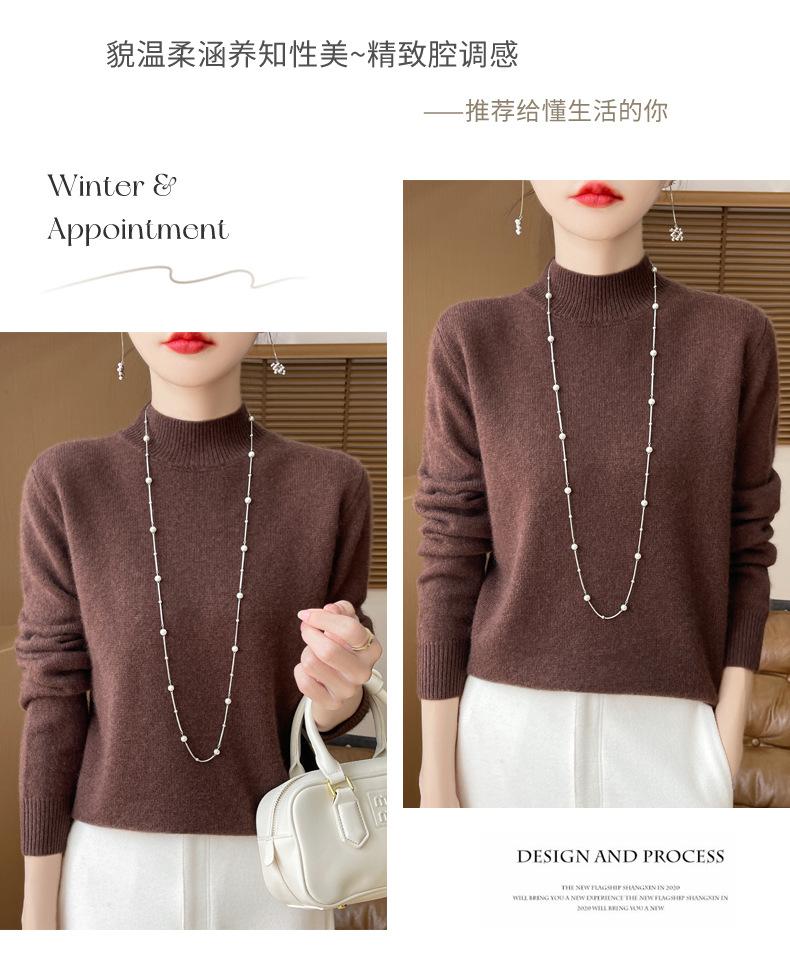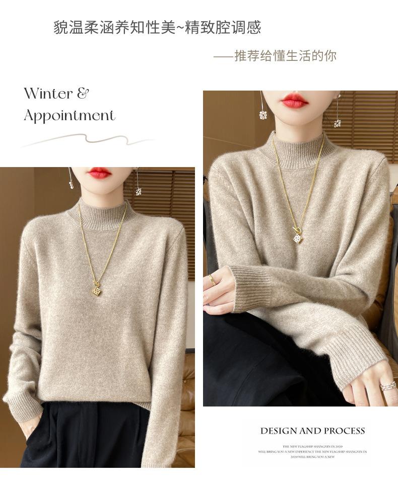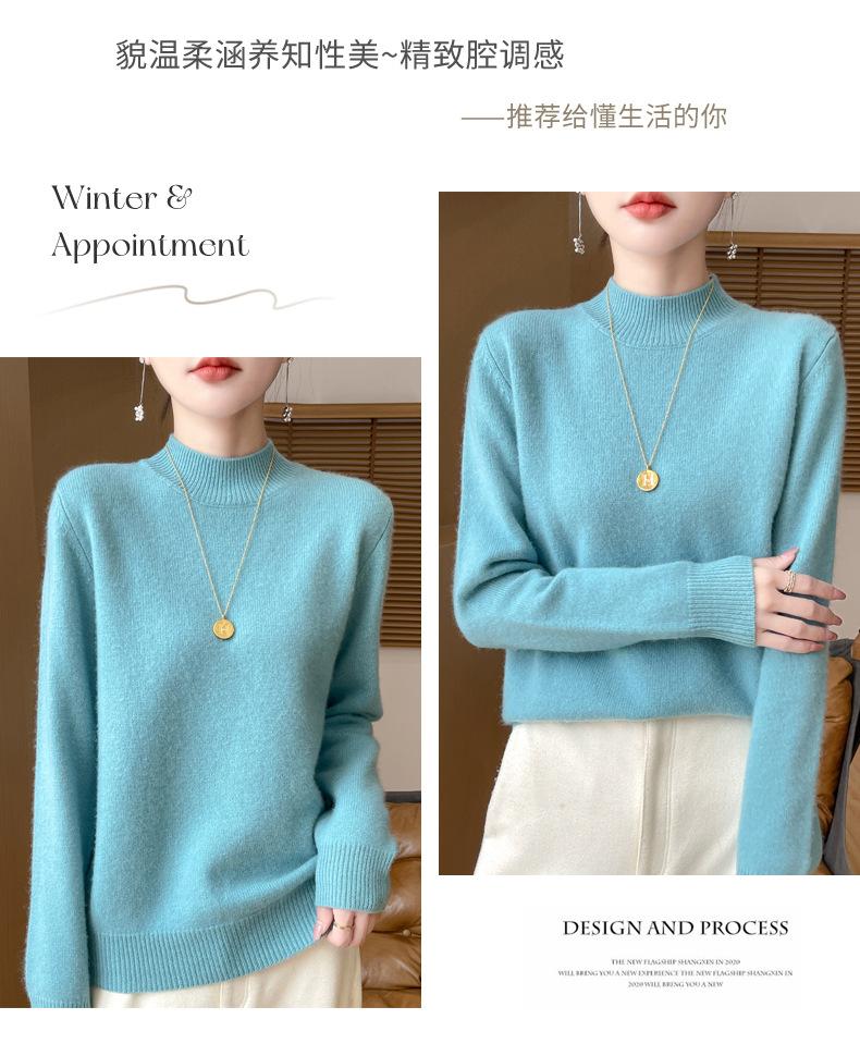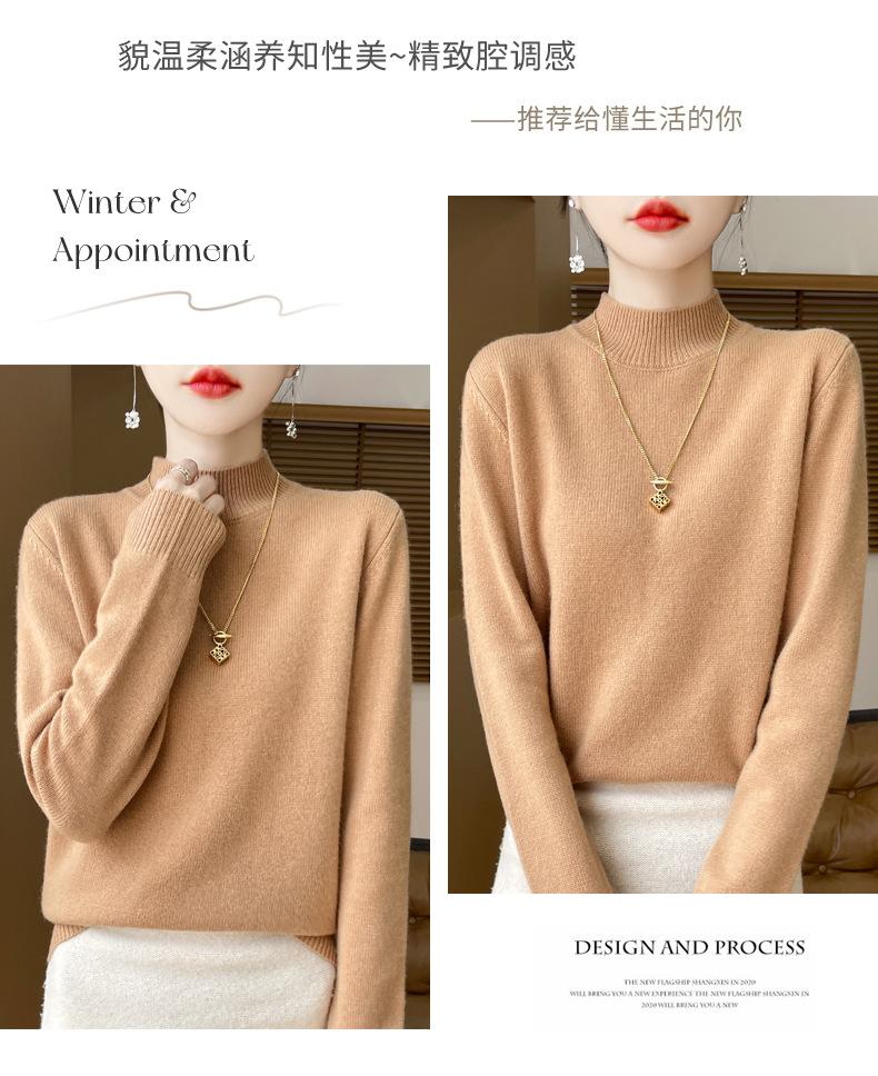 Otoño e invierno nuevo Andy terciopelo tejido plano medio cuello alto mujeres suéter color sólido casual simple moda manga larga interior