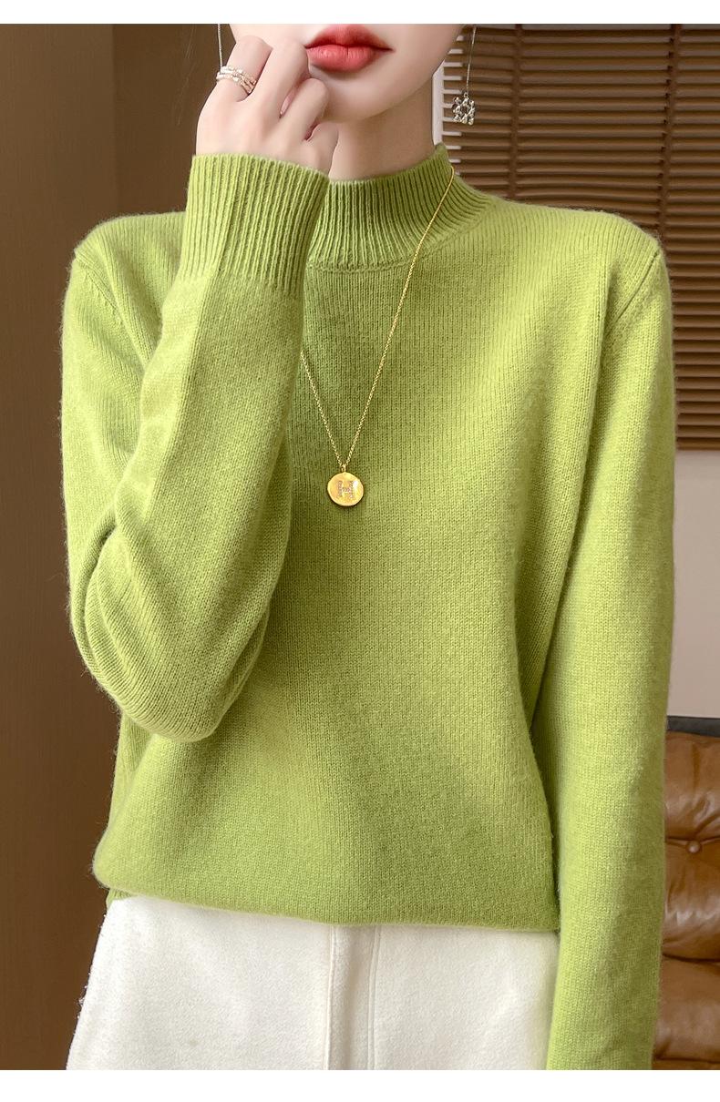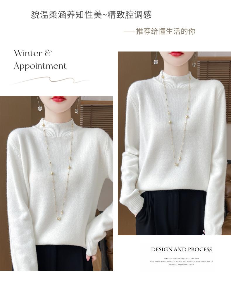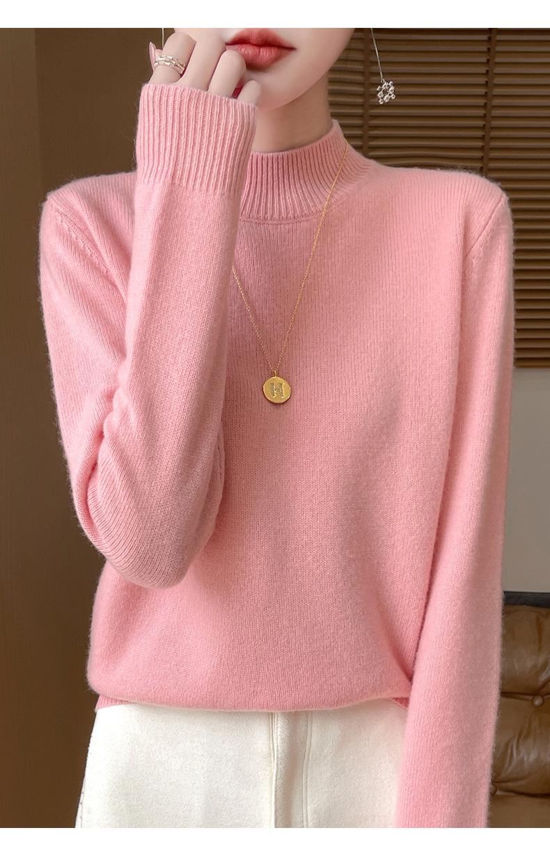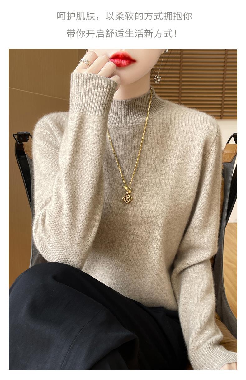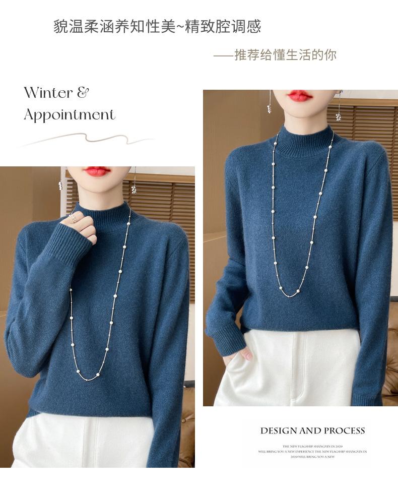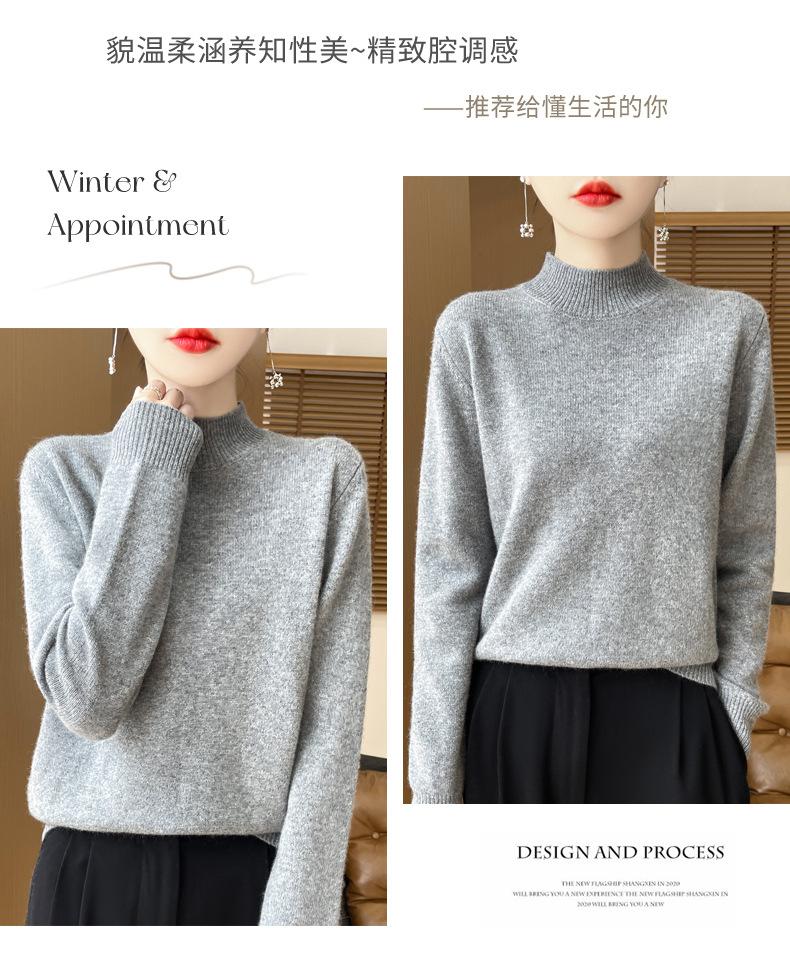 Otoño e invierno nuevo Andy terciopelo tejido plano medio cuello alto mujeres suéter color sólido casual simple moda manga larga interior
