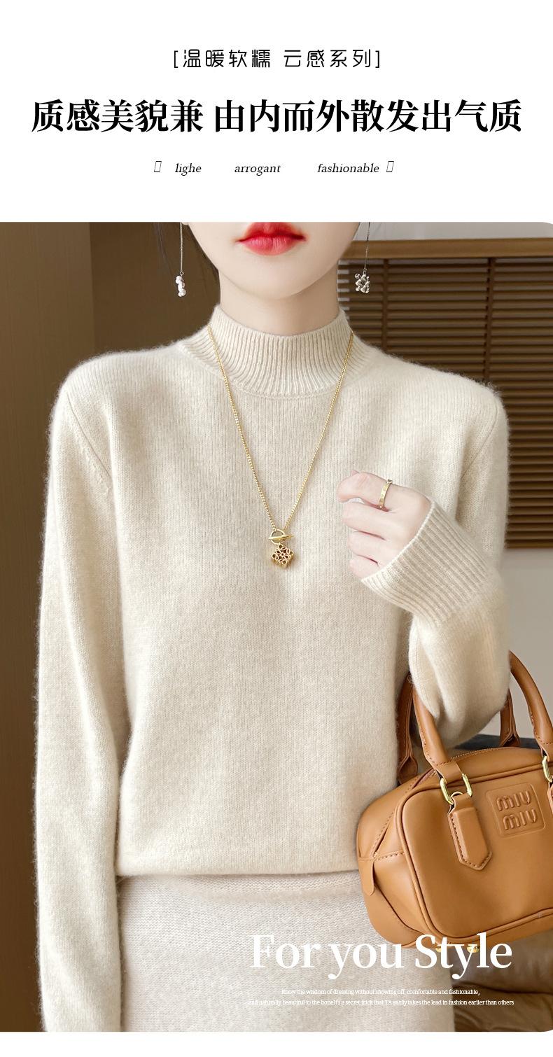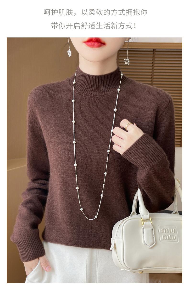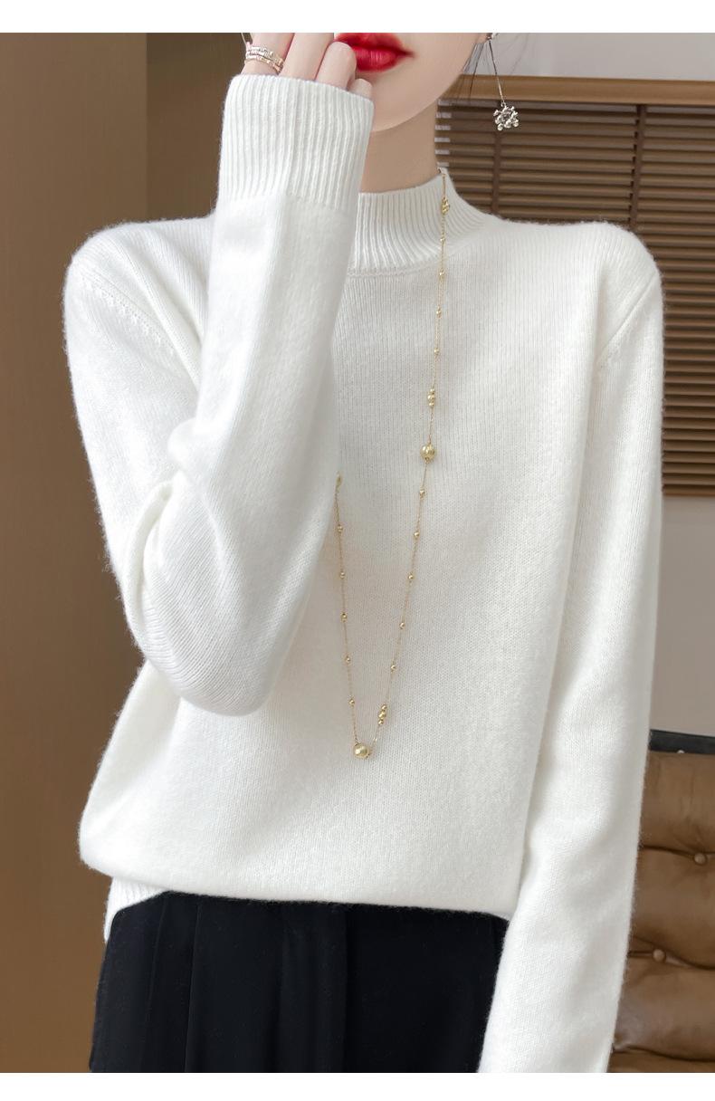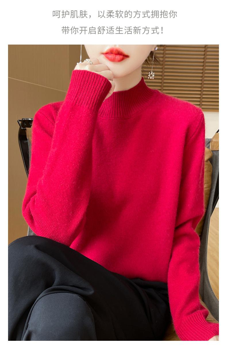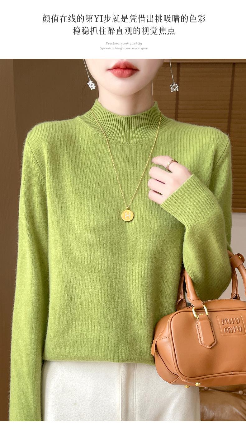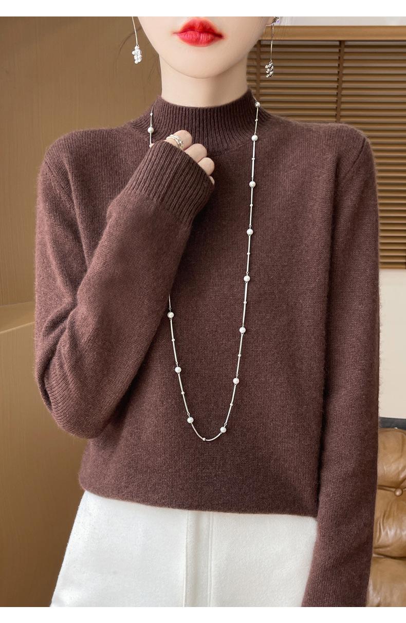 Otoño e invierno nuevo Andy terciopelo tejido plano medio cuello alto mujeres suéter color sólido casual simple moda manga larga interior