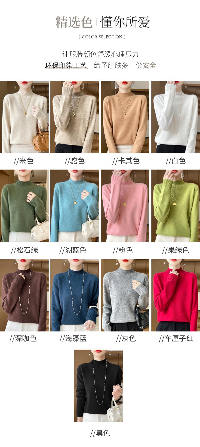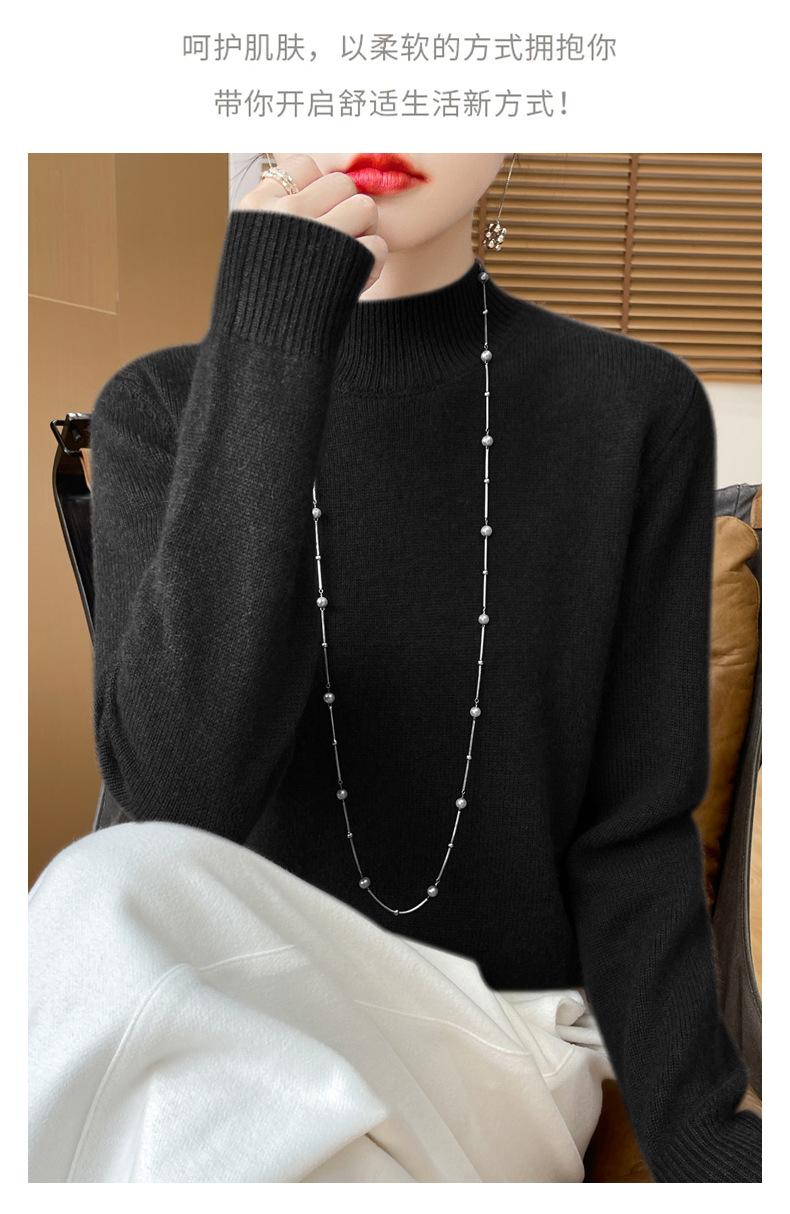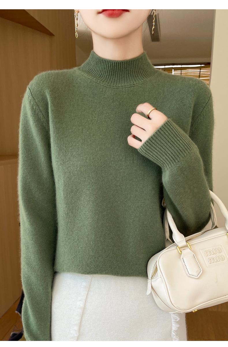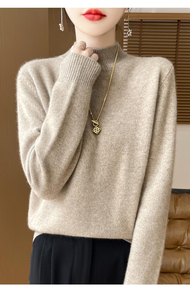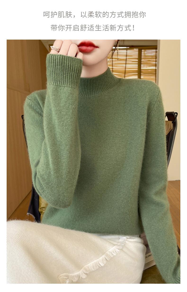 Otoño e invierno nuevo Andy terciopelo tejido plano medio cuello alto mujeres suéter color sólido casual simple moda manga larga interior