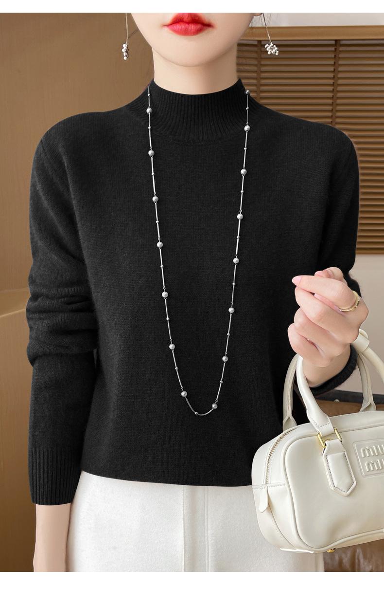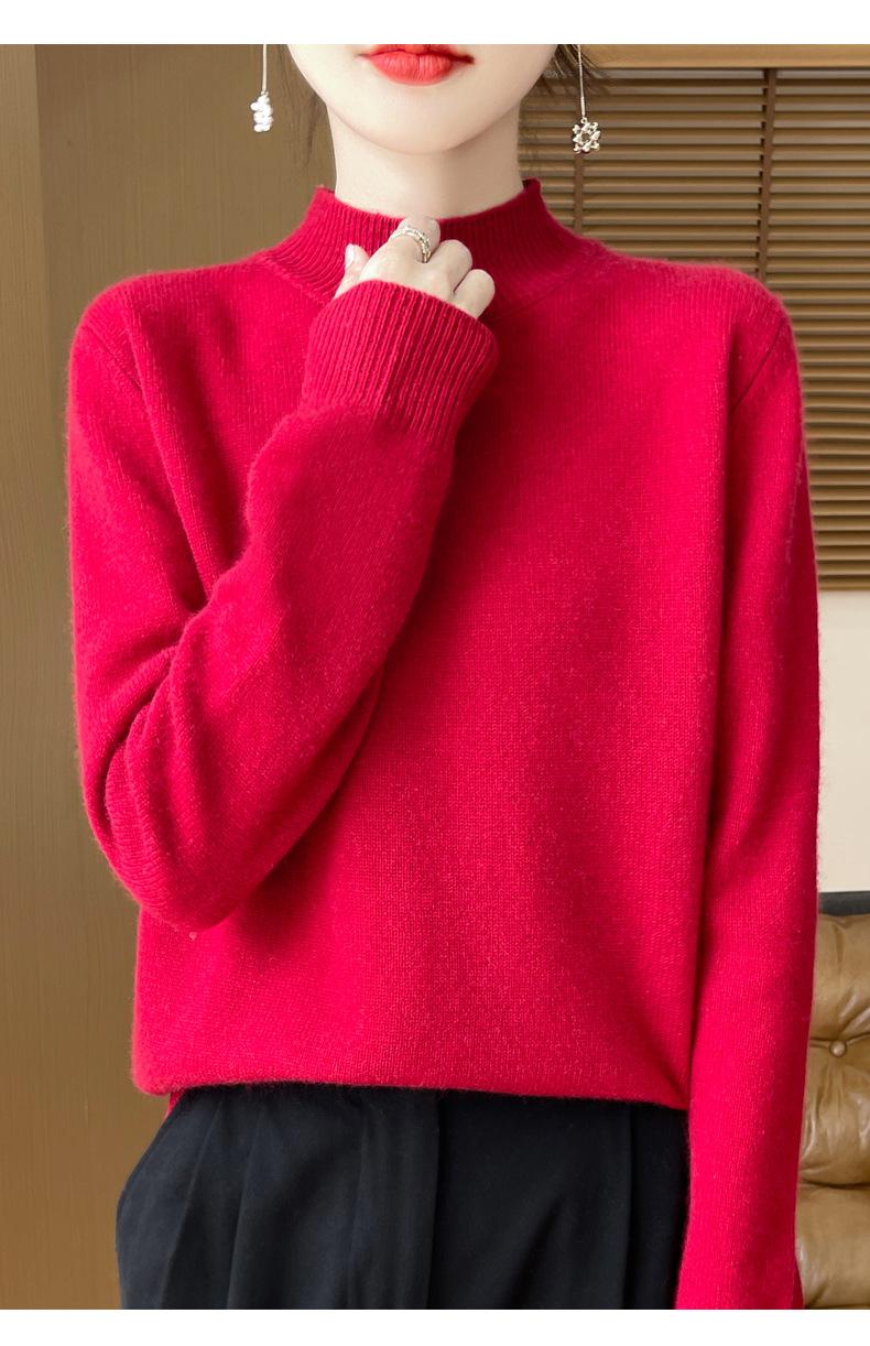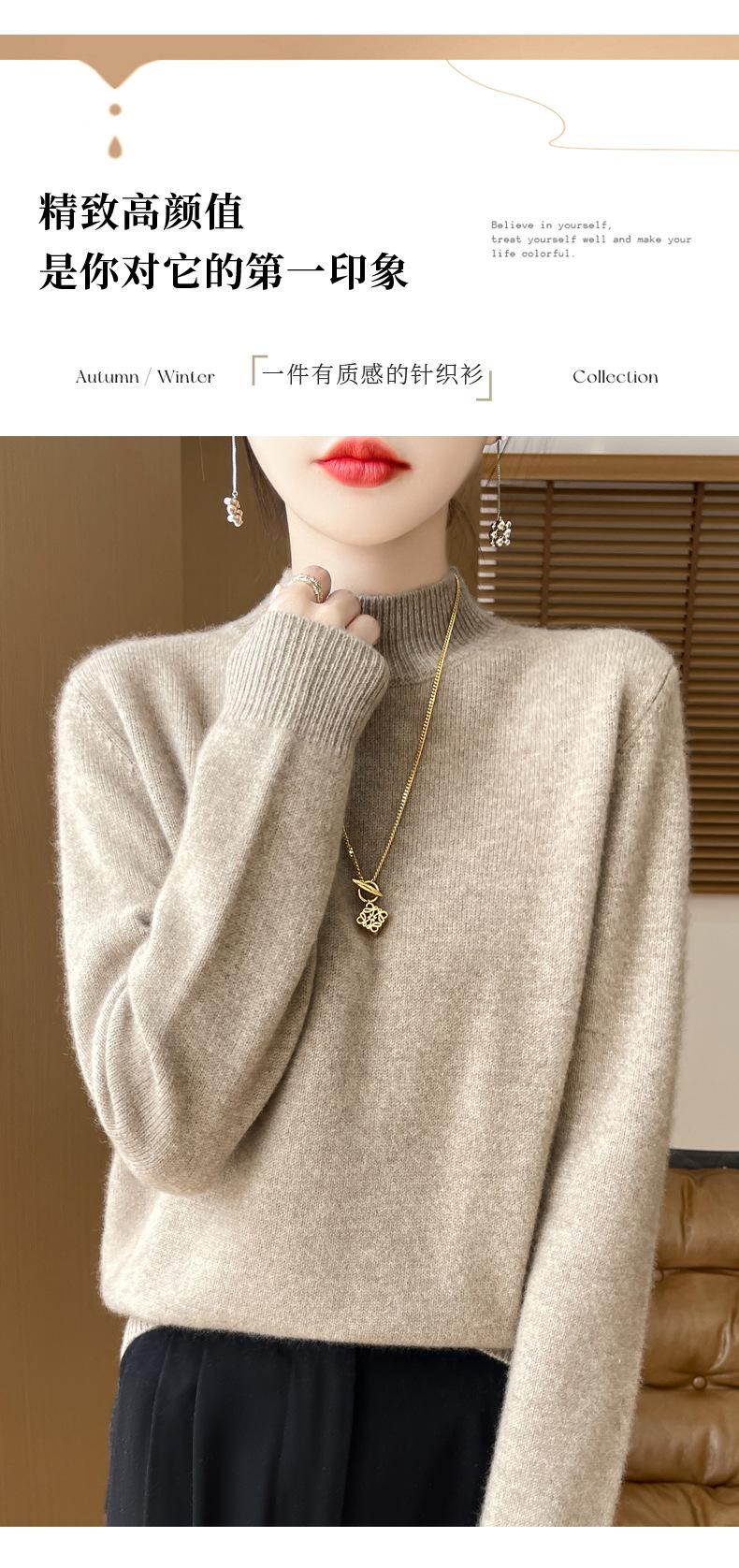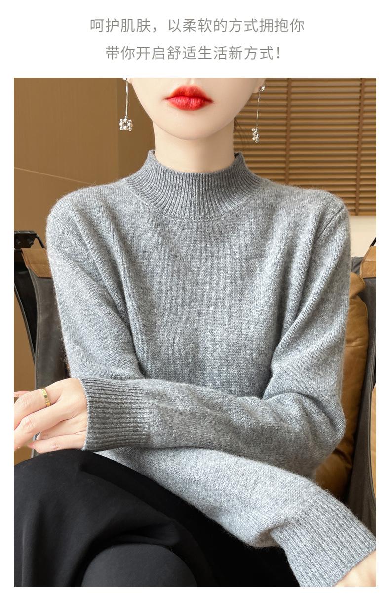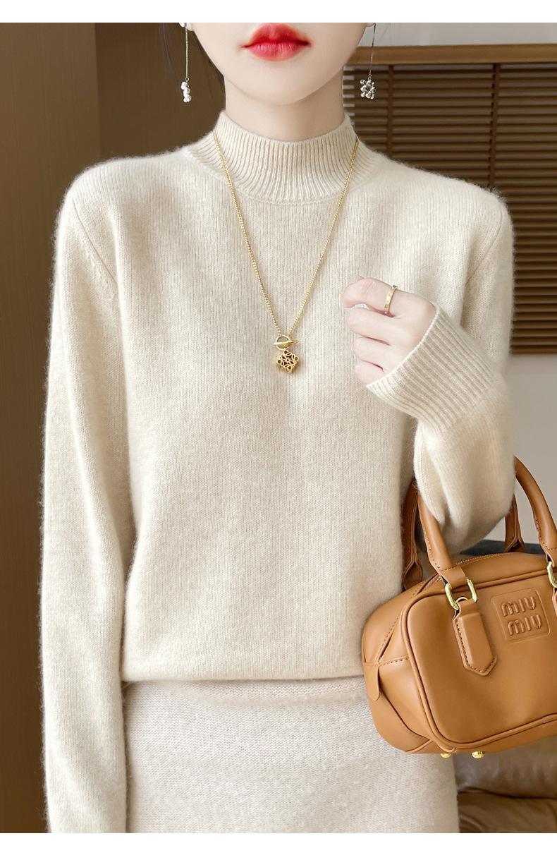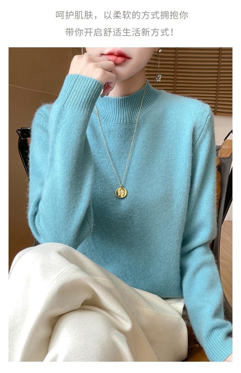 Otoño e invierno nuevo Andy terciopelo tejido plano medio cuello alto mujeres suéter color sólido casual simple moda manga larga interior