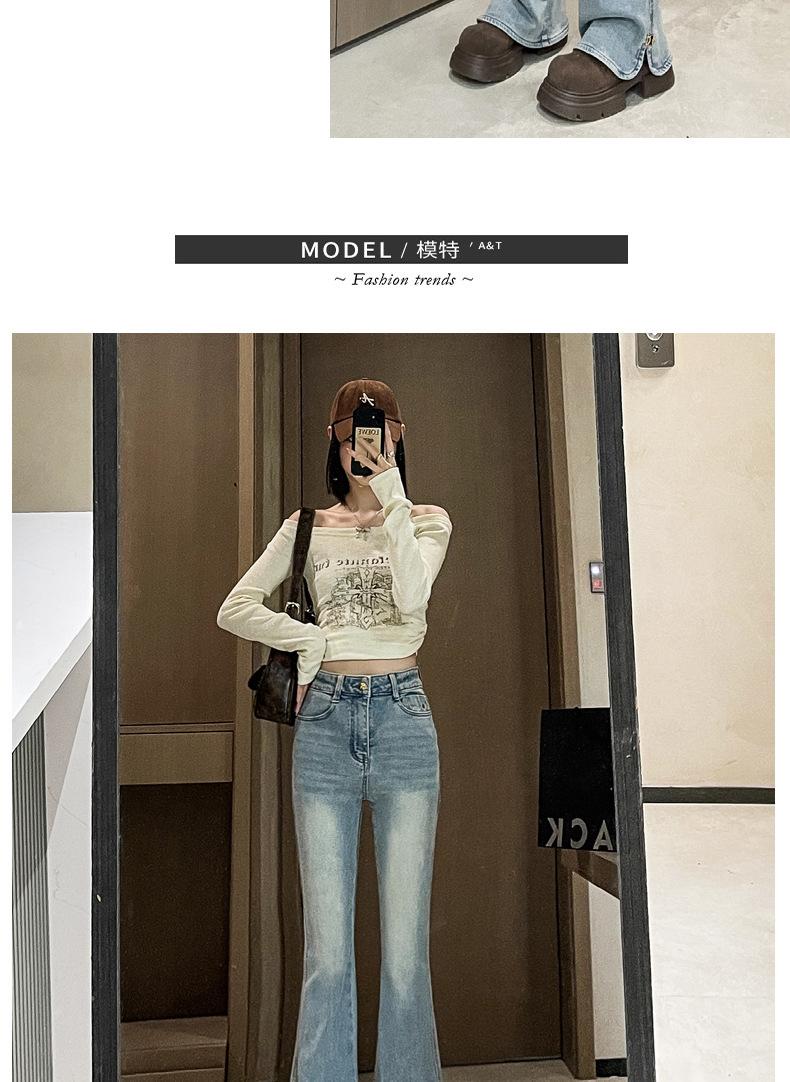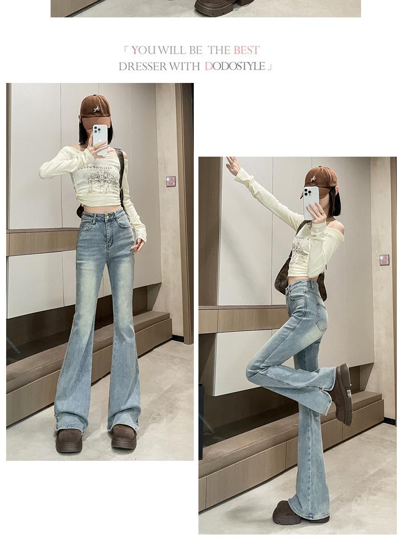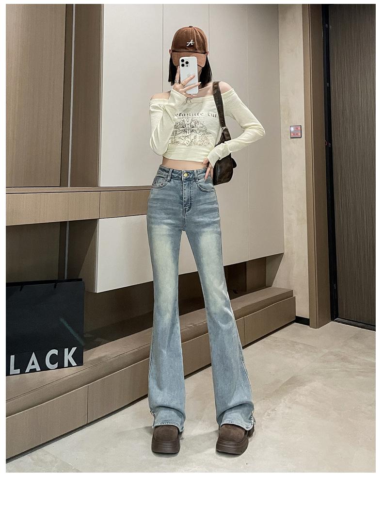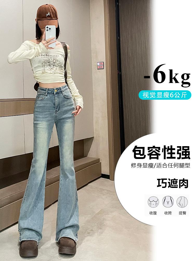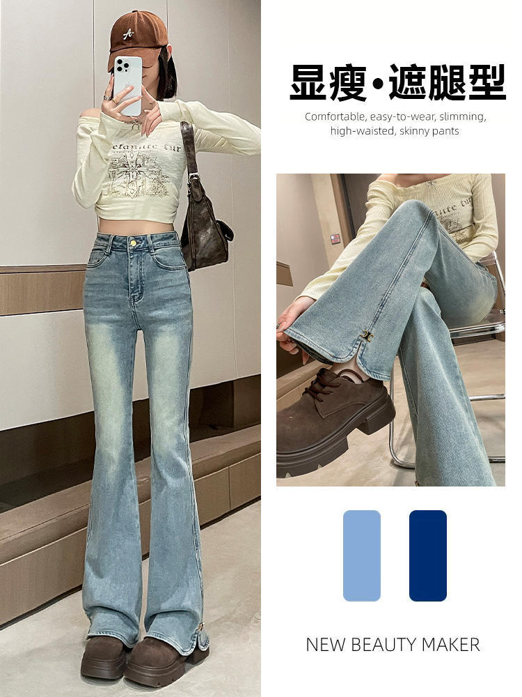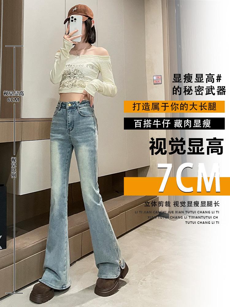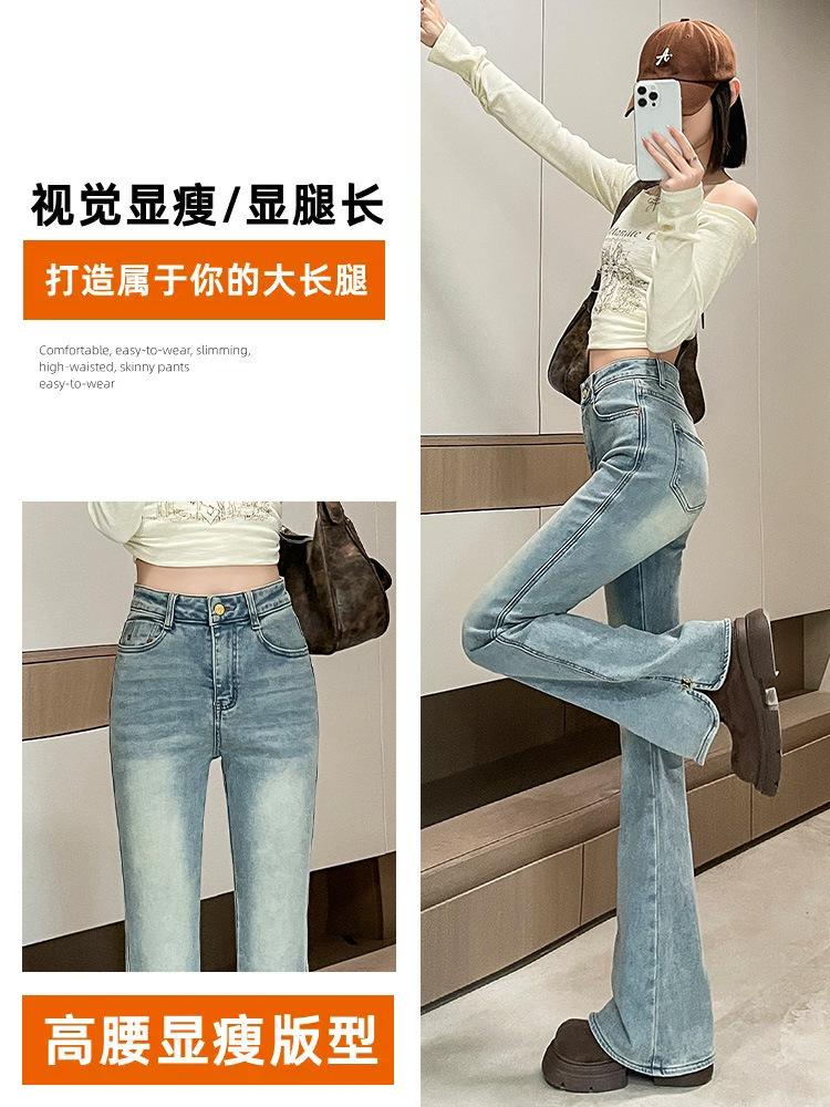 Pantalones vaqueros Micro-La para mujer, primavera y otoño 2024, nuevos, de cintura alta, adelgazantes, vintage, acampanados, para niños.