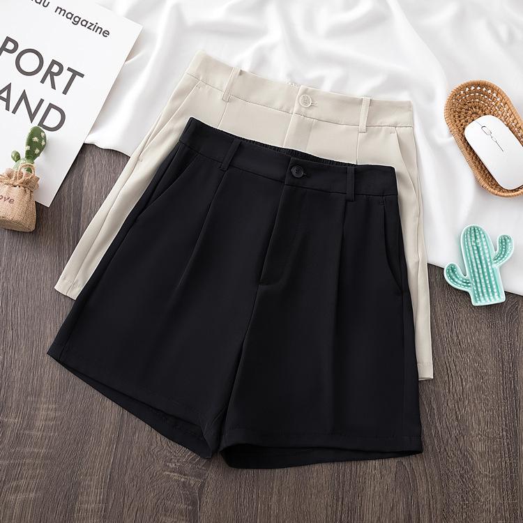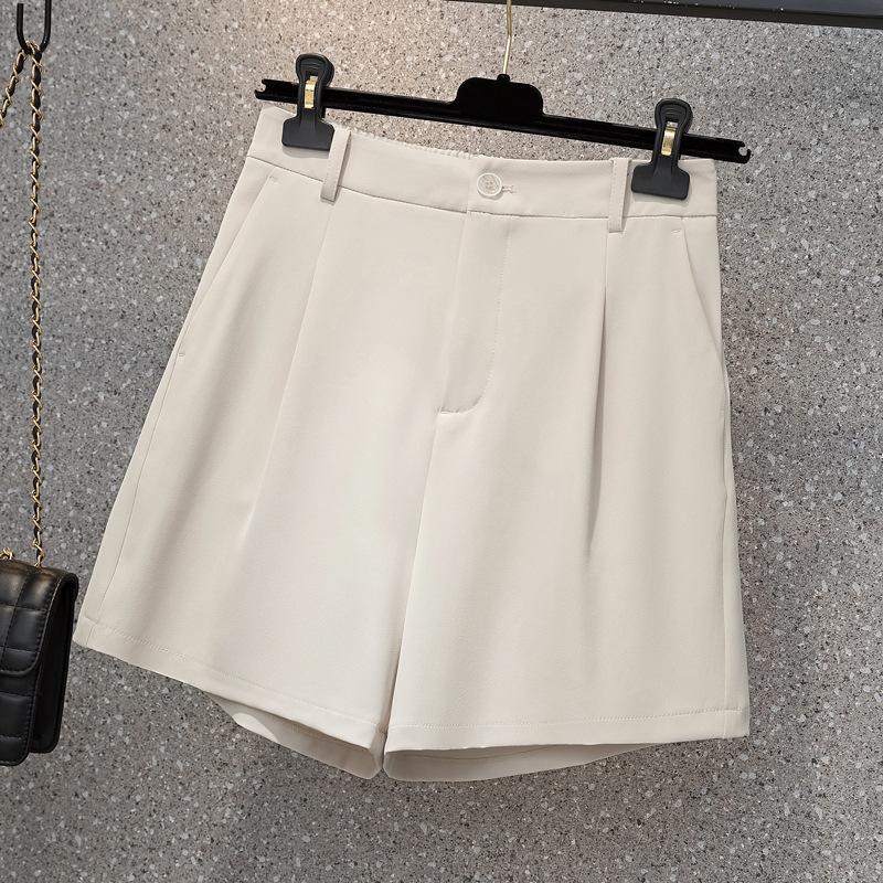 Traje de Chifón Negro de Verano 2024 para Mujer de Talla Grande, Shorts de Cintura Elástica Delgados, Pantalones Anchos de Pierna A-Line Pequeños para Uso Exterior