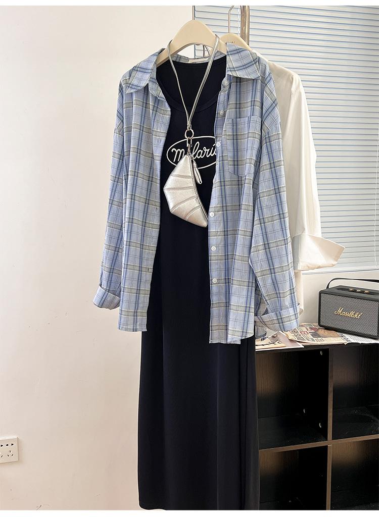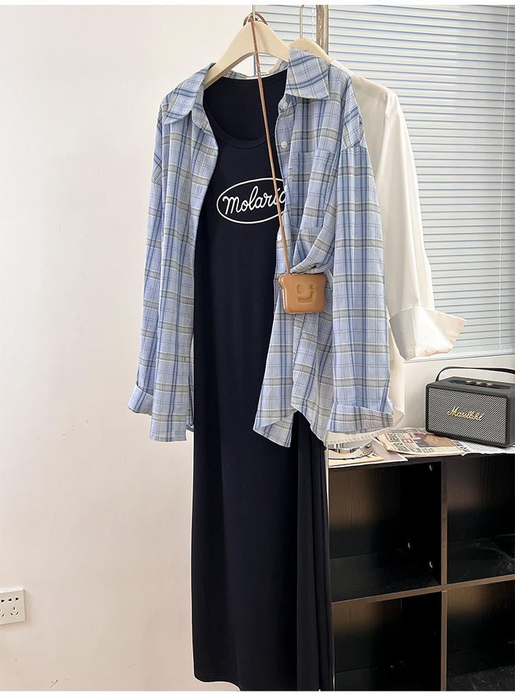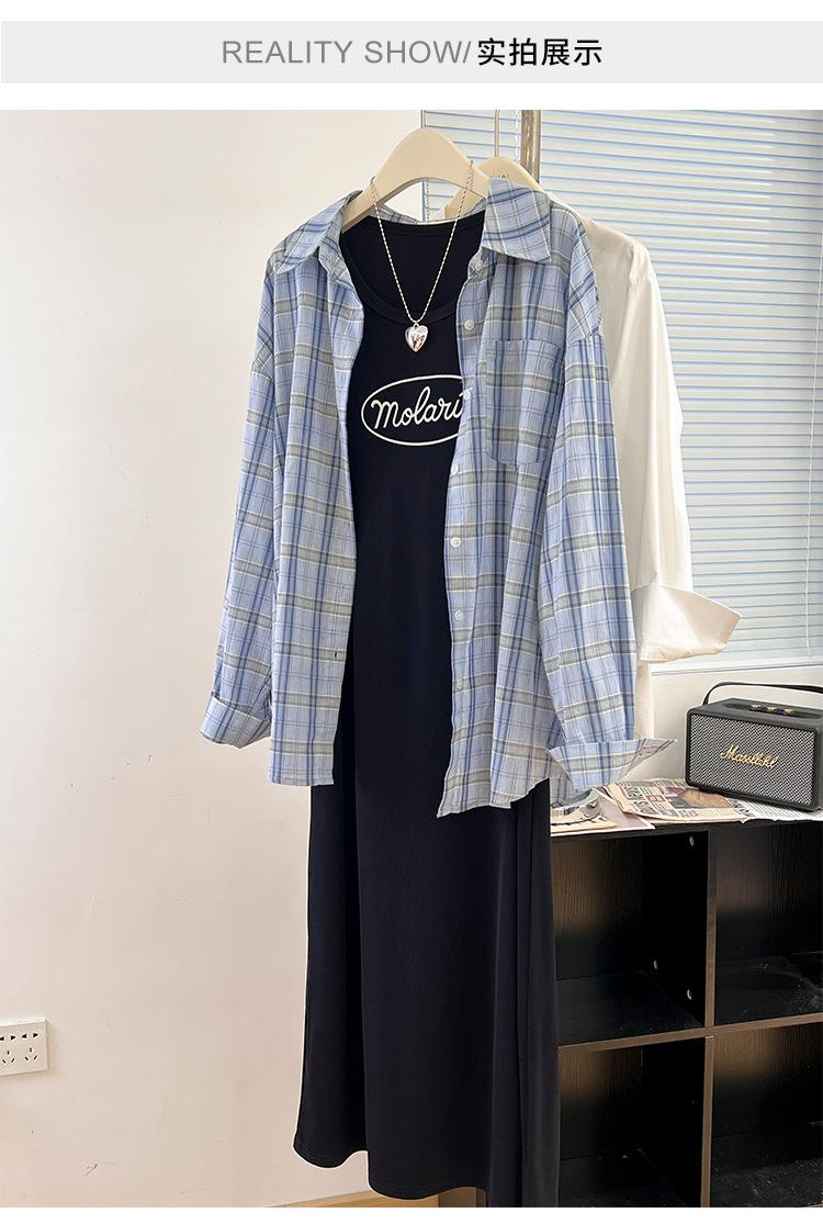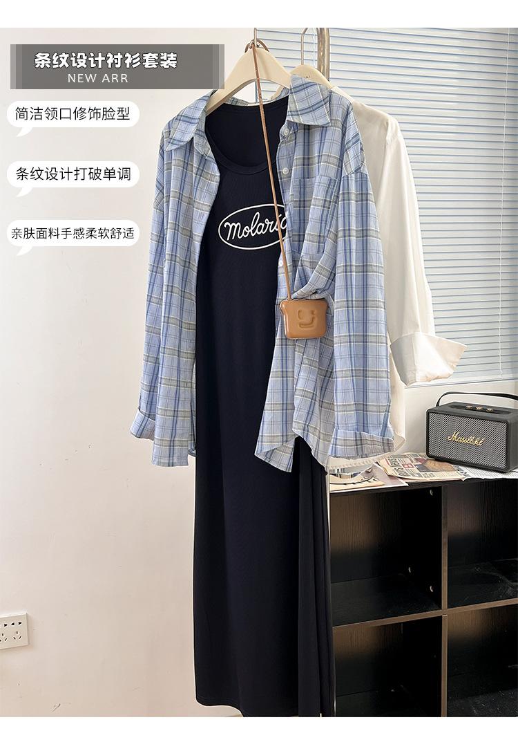 Vestido camisola para mujer, novedad de otoño 2024, falda adelgazante para chica gordita, falda larga de dos piezas