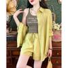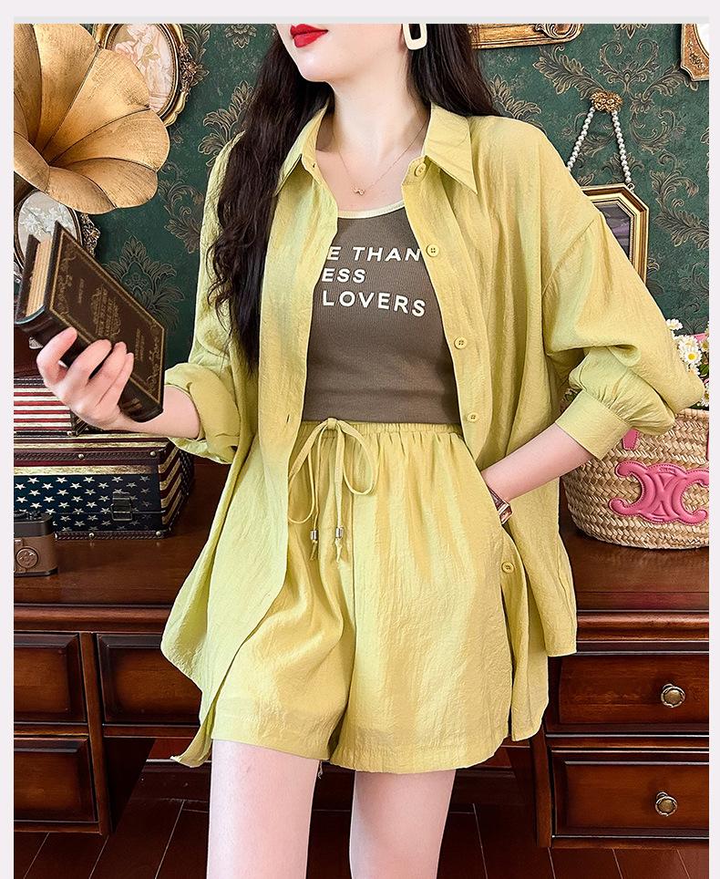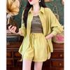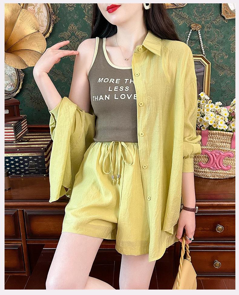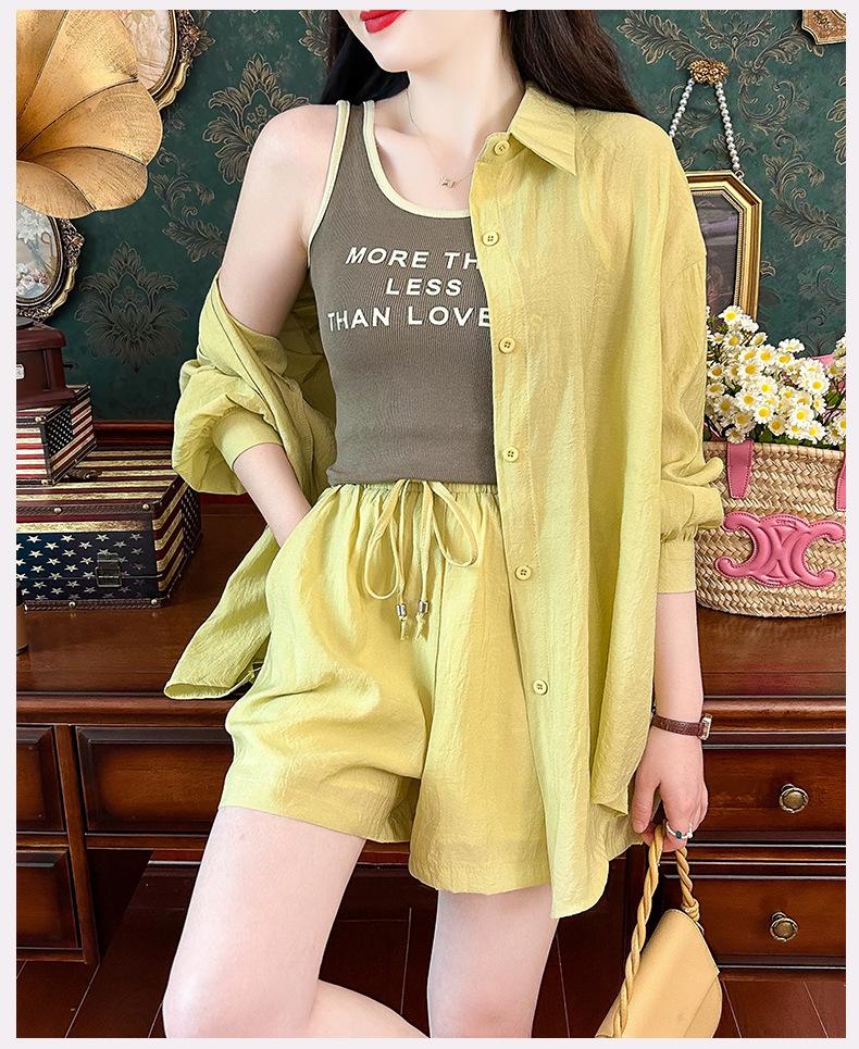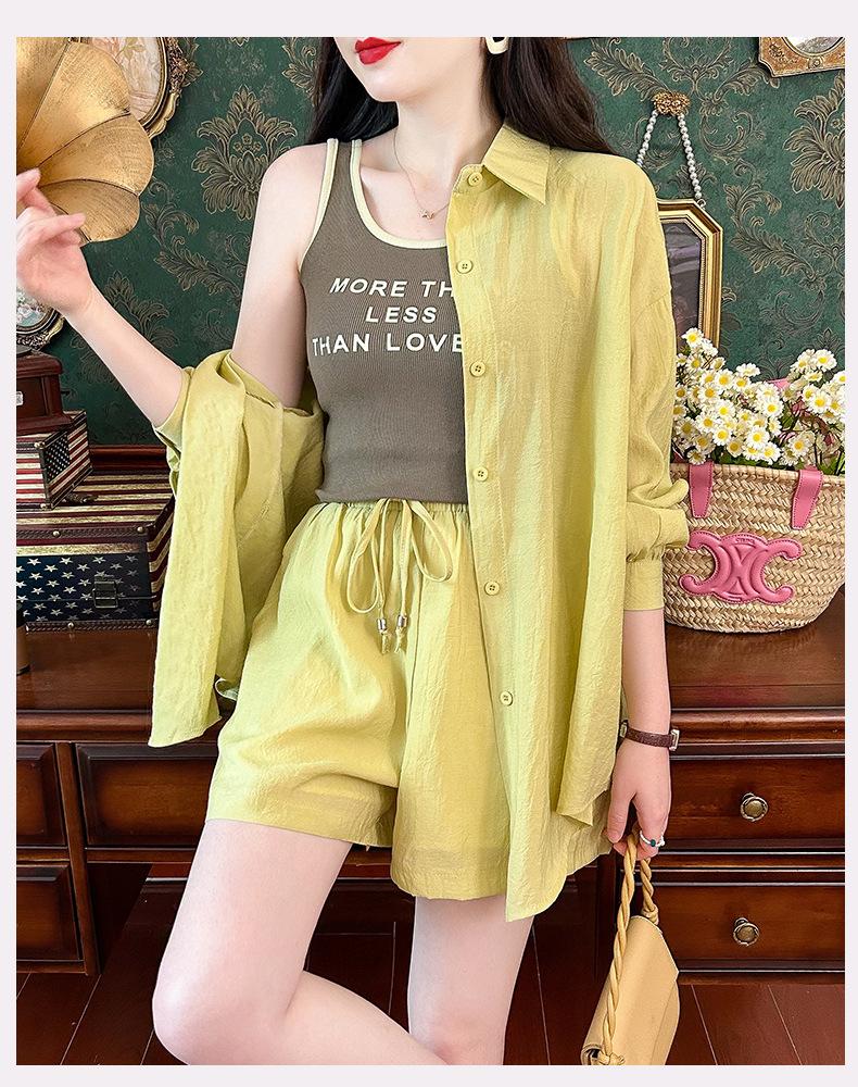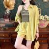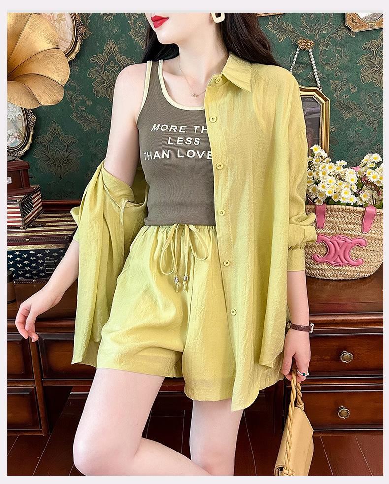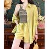 Traje informal de verano para mujer, nueva moda 2024, camiseta de estilo americano, conjunto deportivo corto de tres piezas con tirantes finos