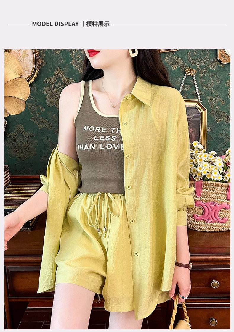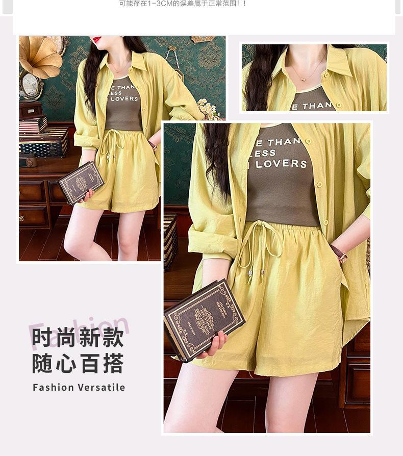 Compra Traje informal de verano para mujer, nueva moda 2024, camiseta de estilo americano, conjunto deportivo corto de tres piezas con tirantes finos al por mayor en Joom.pro