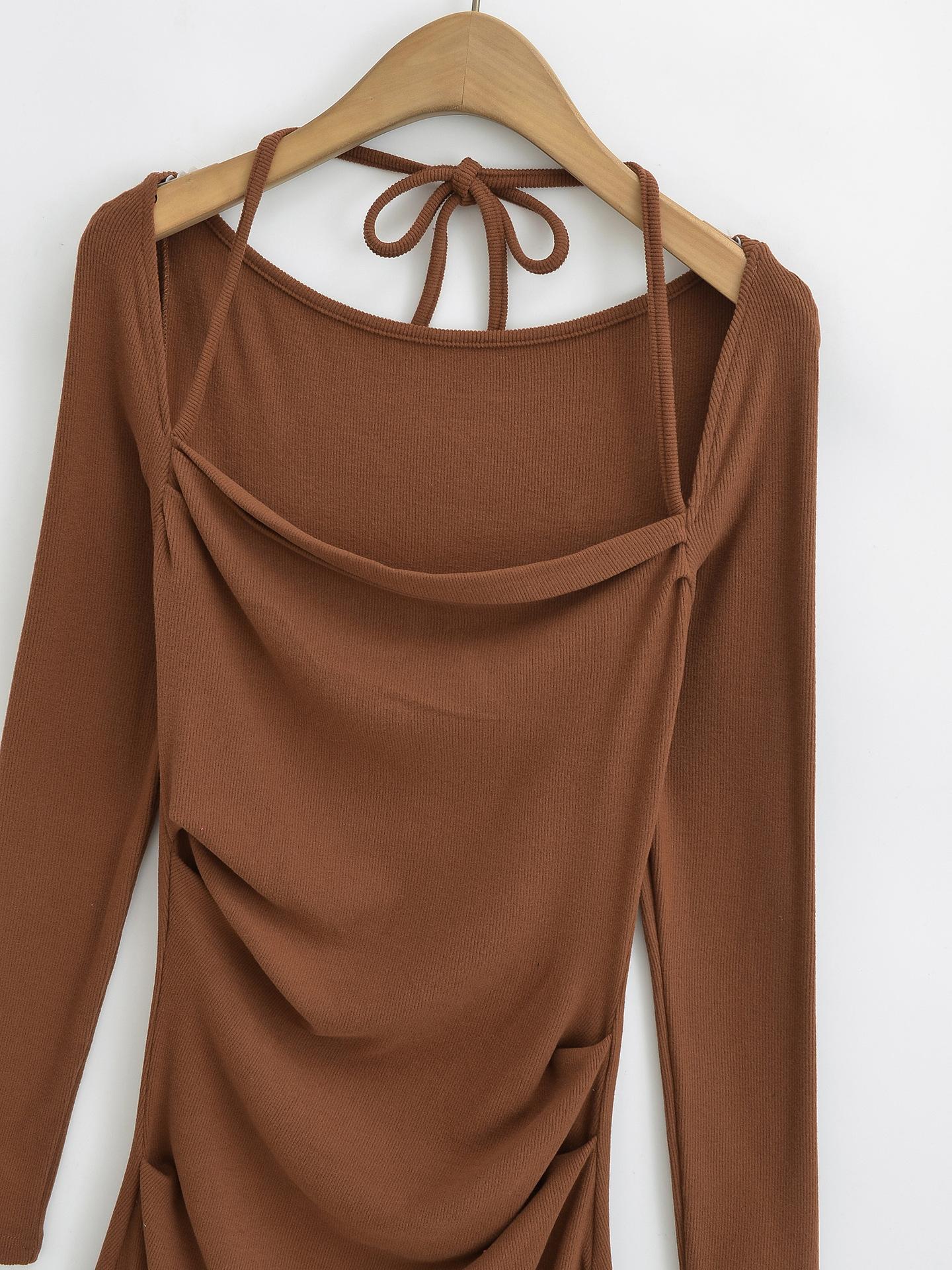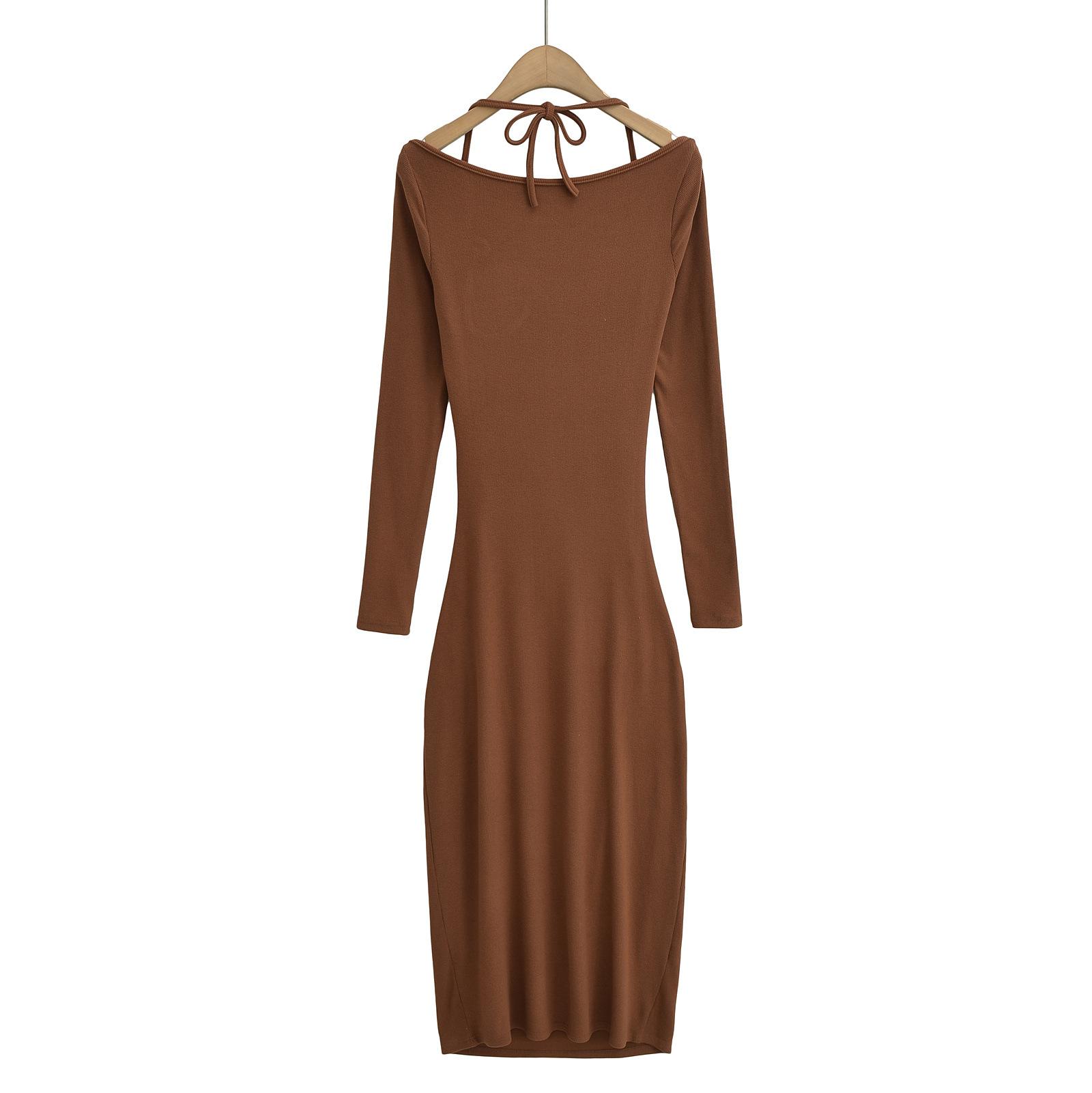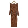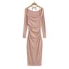 AY627-24 Vestido largo elegante de verano con cintura plisada, ajustado y estilo europeo y americano, con cuello de mujer