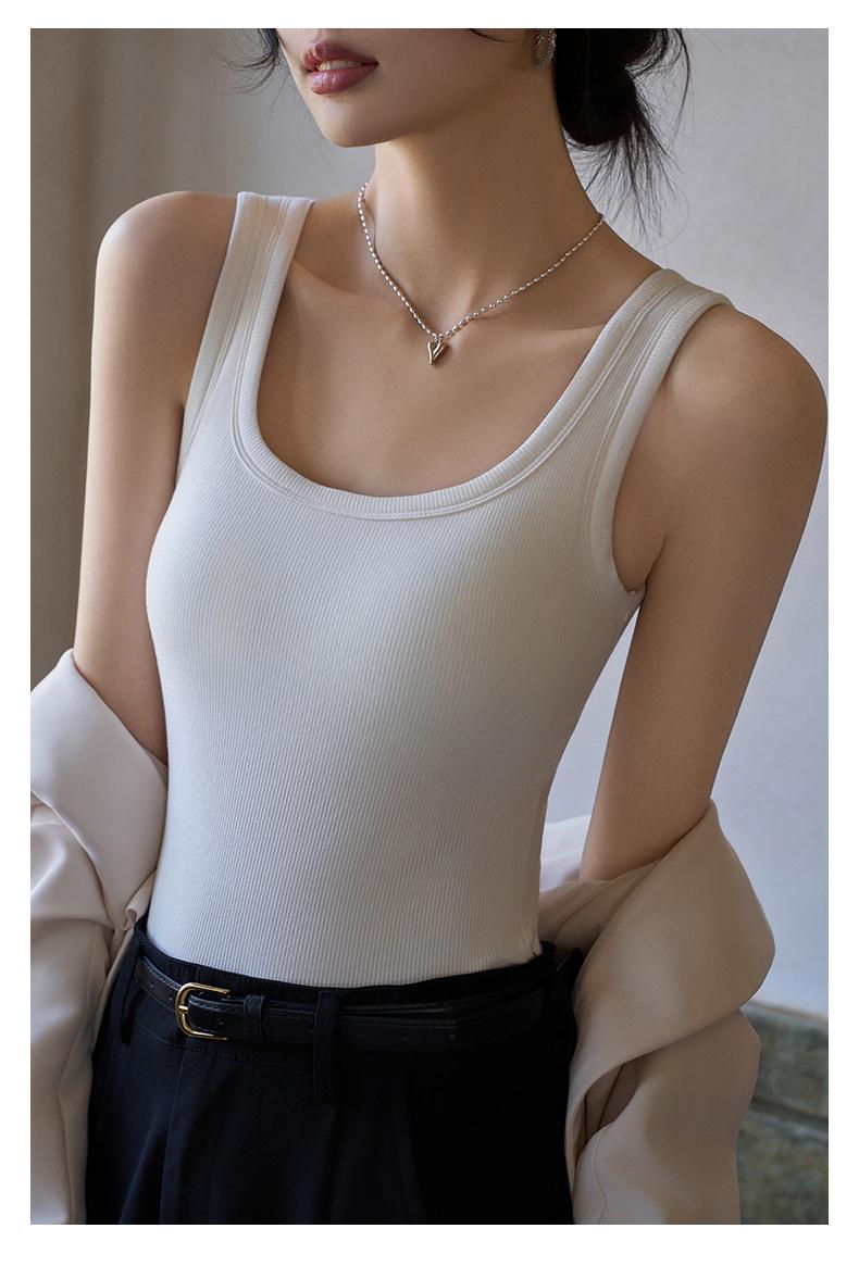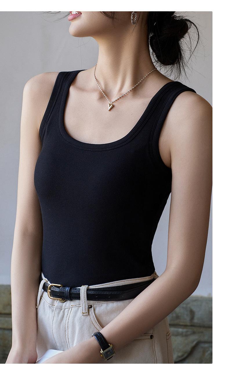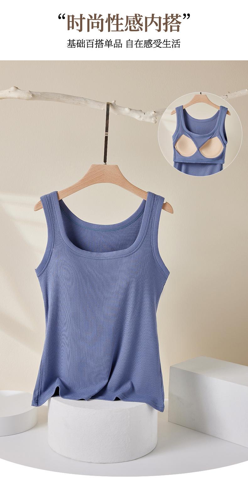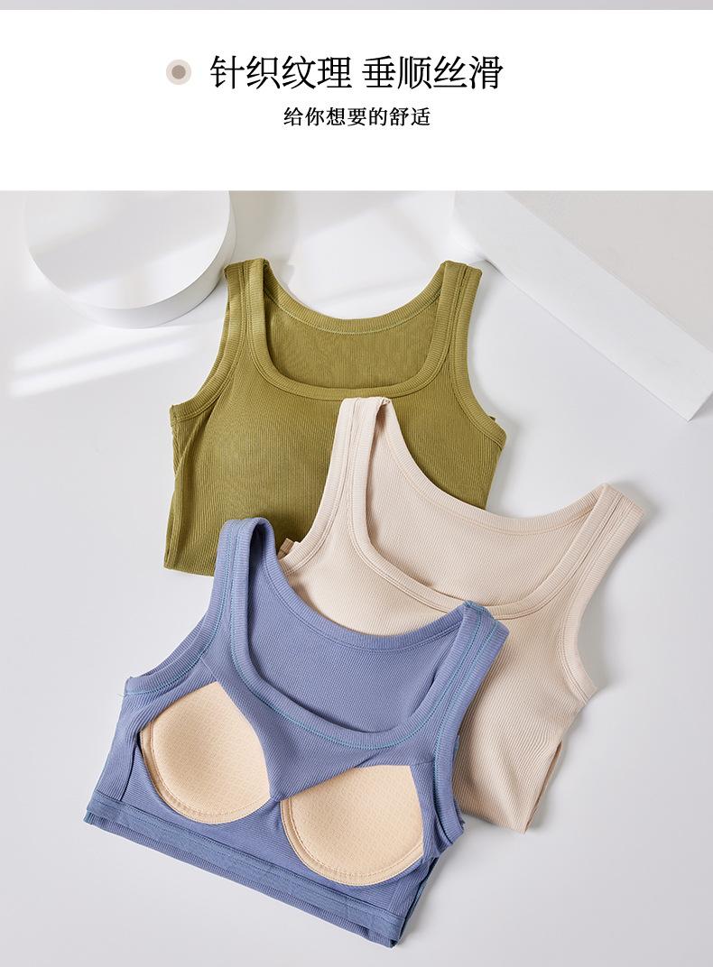 Compra Chaleco sin mangas para mujer con sujetador acolchado todo en uno, verano, cuello cuadrado, blanco exterior, punto, bajo, tirantes al por mayor en Joom.pro