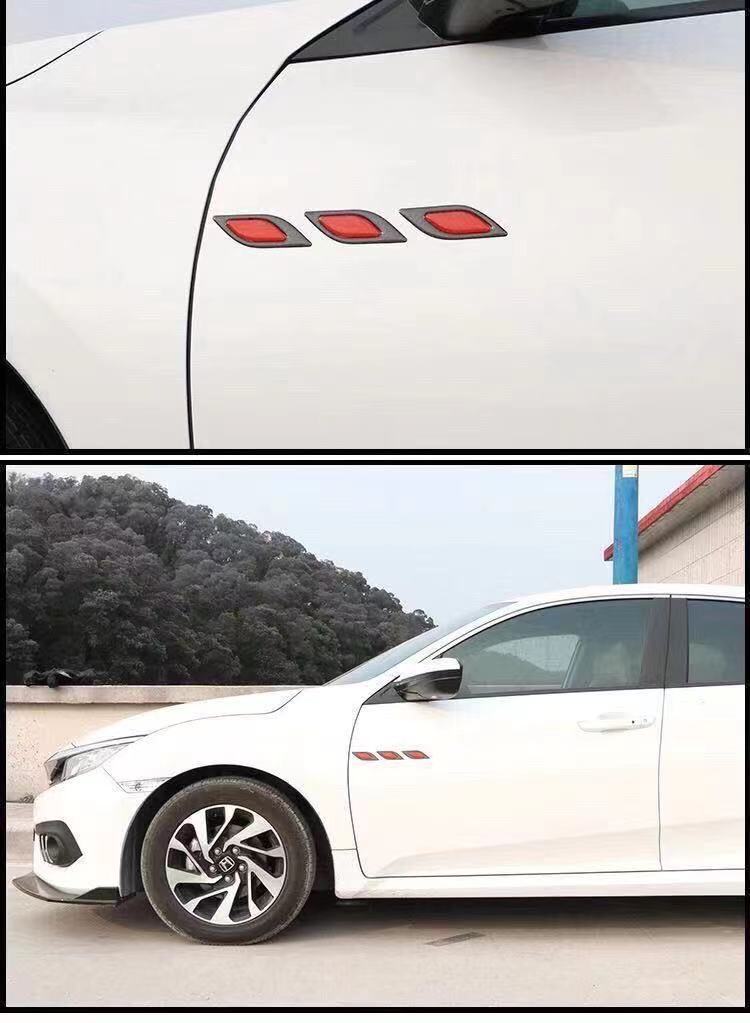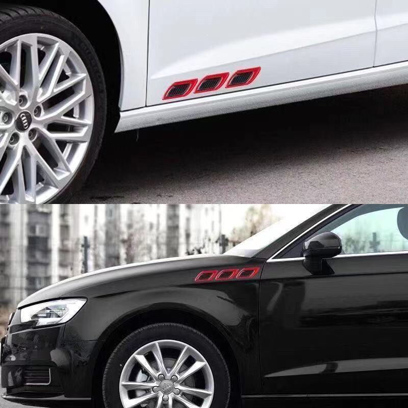 Pegatinas para carrocería de coche con patrón de fibra de carbono, pegatinas decorativas para guardabarros, salida de aire lateral, pegatinas reflectantes antiarañazos de advertencia