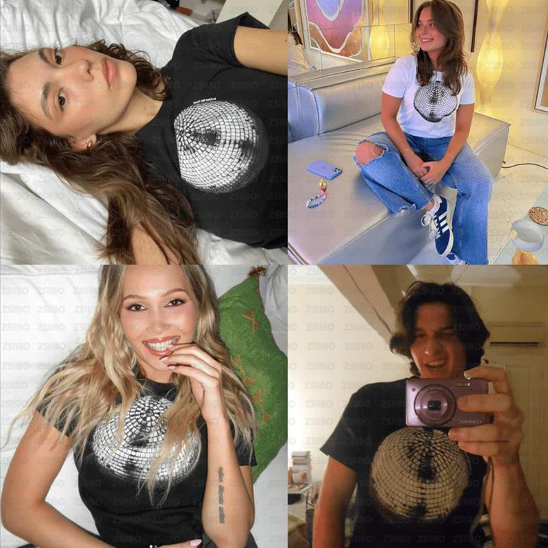Camiseta con cuello redondo y manga corta para mujer, estilo europeo y americano, informal, estampada, de marca, para verano, 2023