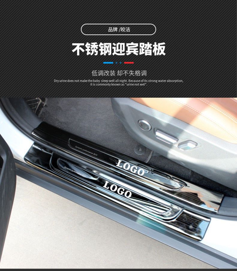 Threshold bar rear guard plate five doors complete set of 12 pieces, Built-in external sill bar 8 pieces, Buil...