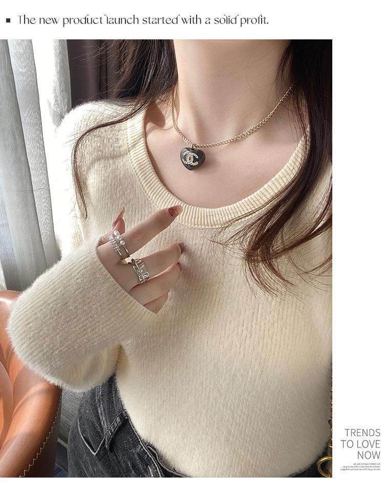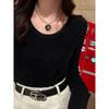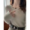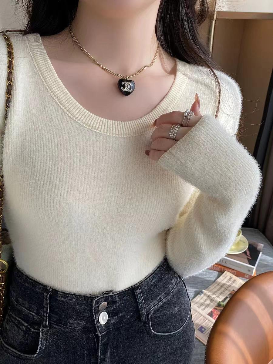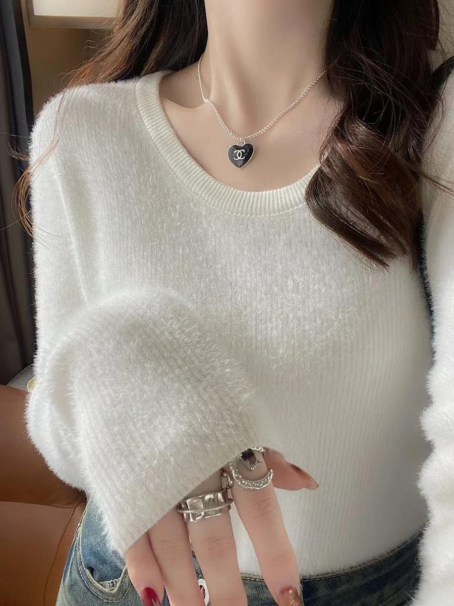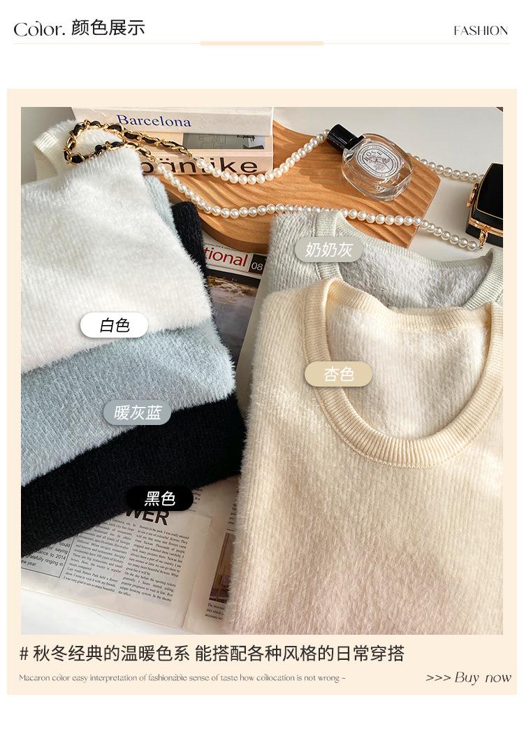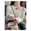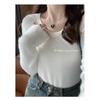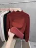 Nuevo Suéter de Mujer Espesado con Terciopelo Interior Camiseta Básica Otoño e Invierno 2024 Top de Punto Blanco Afelpado de Fondo Alto