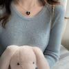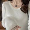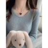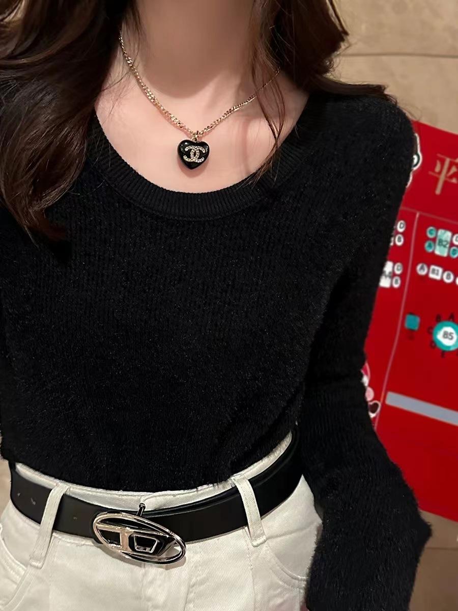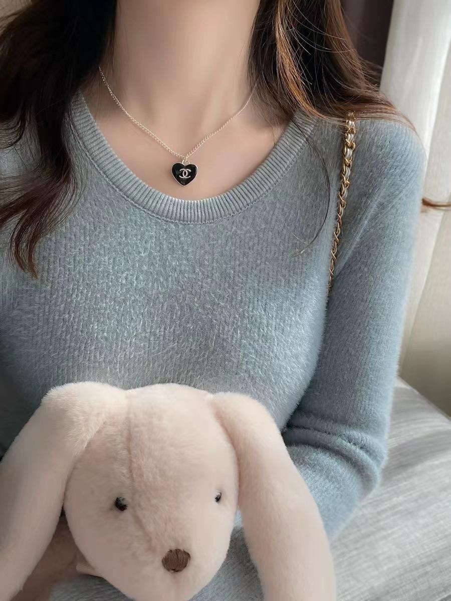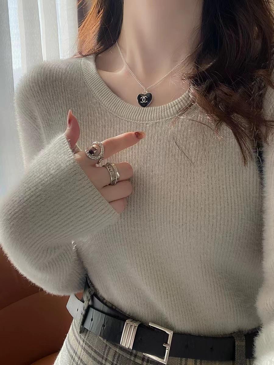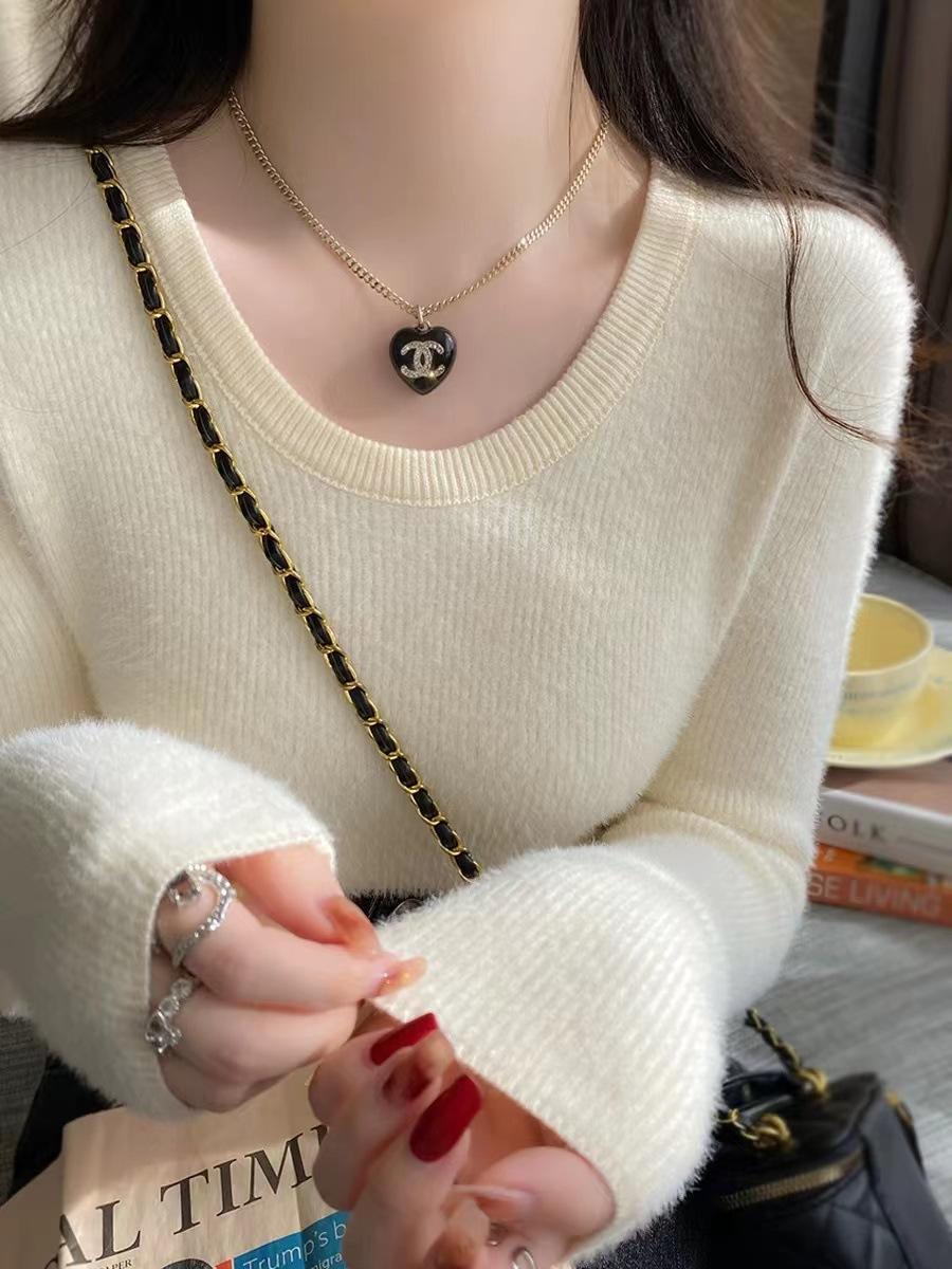 Nuevo Suéter de Mujer Espesado con Terciopelo Interior Camiseta Básica Otoño e Invierno 2024 Top de Punto Blanco Afelpado de Fondo Alto