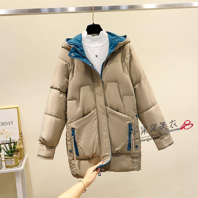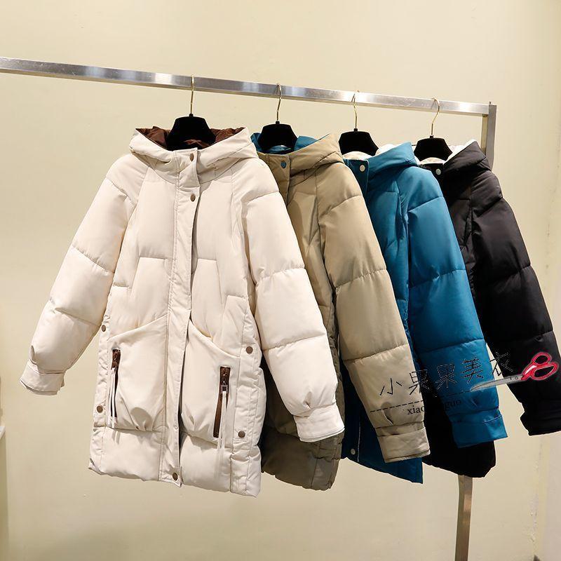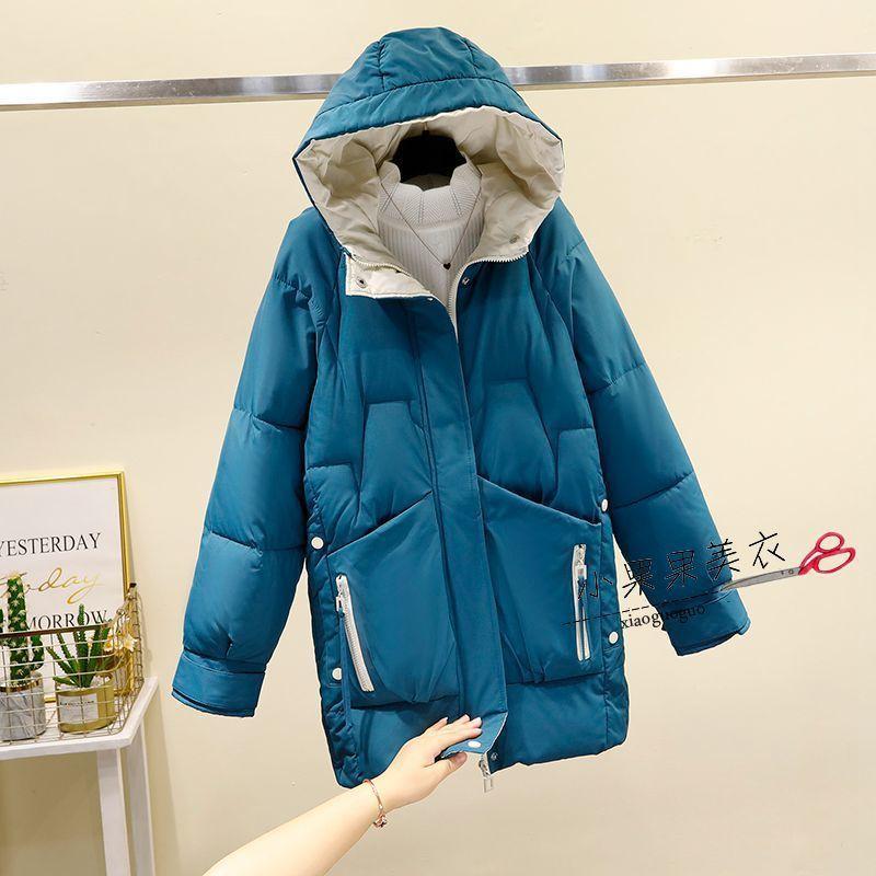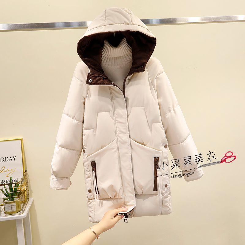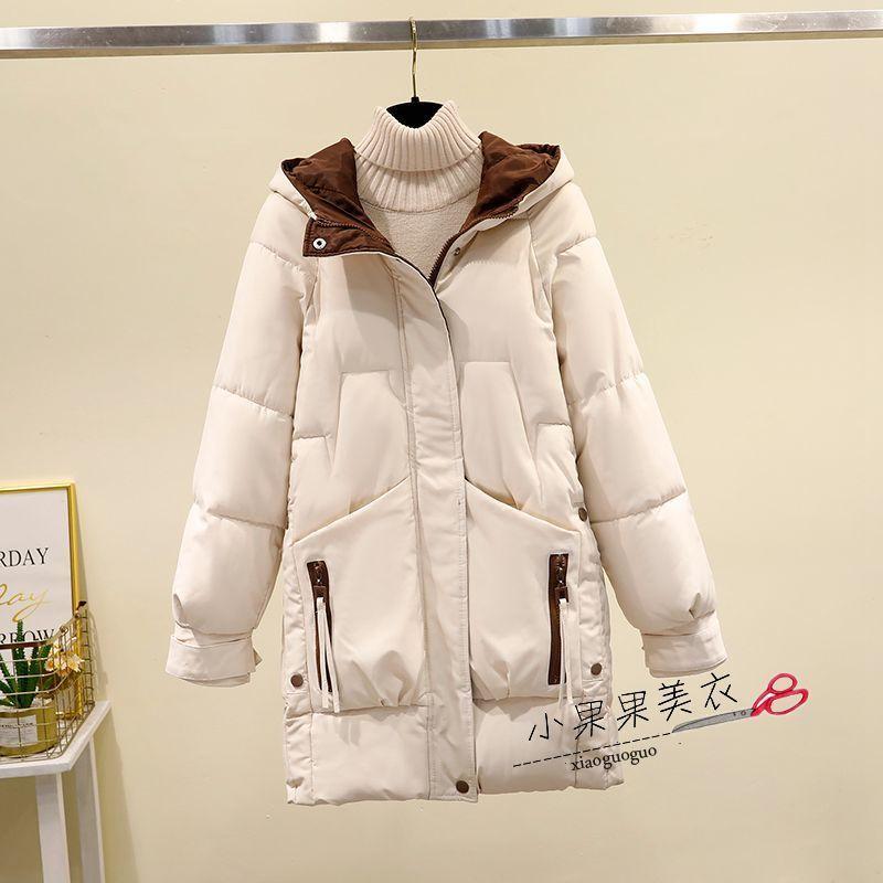 Abrigo de invierno acolchado de algodón y plumón para mujer, largo medio, grueso, 2023, estilo coreano, holgado, informal, cálido.