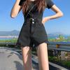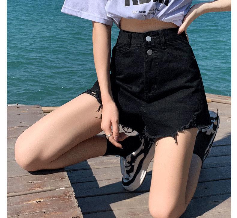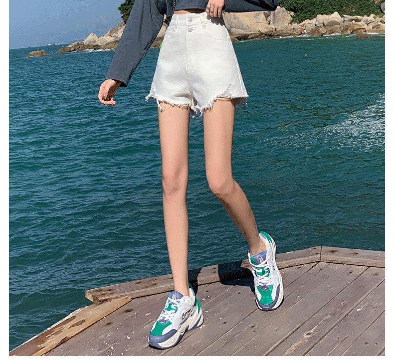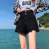 Pantalones cortos vaqueros blancos de verano para mujer, cintura alta, holgados, estilo coreano, ajustados, con pierna ancha, en forma de A, 2022