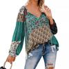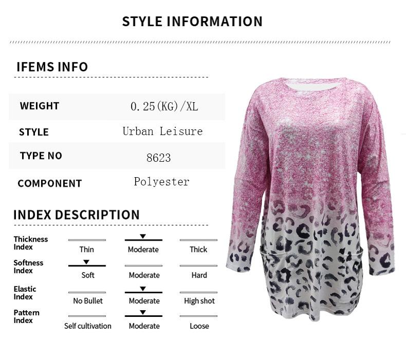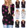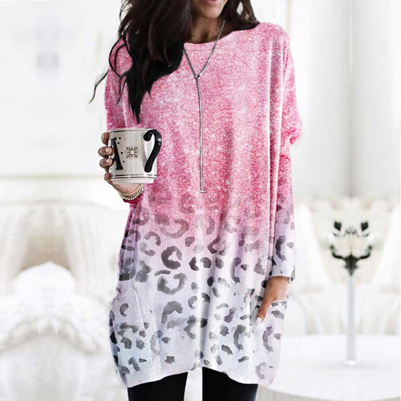 Camiseta de manga larga informal nueva para mujer de Amazon, ropa de comercio exterior transfronterizo europeo y americano, top holgado estampado de moda con bolsillo