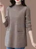 Suéter de cuello alto de color liso para mujer, 100% cachemira pura, holgado, combinable, grueso y con base de cachemira.